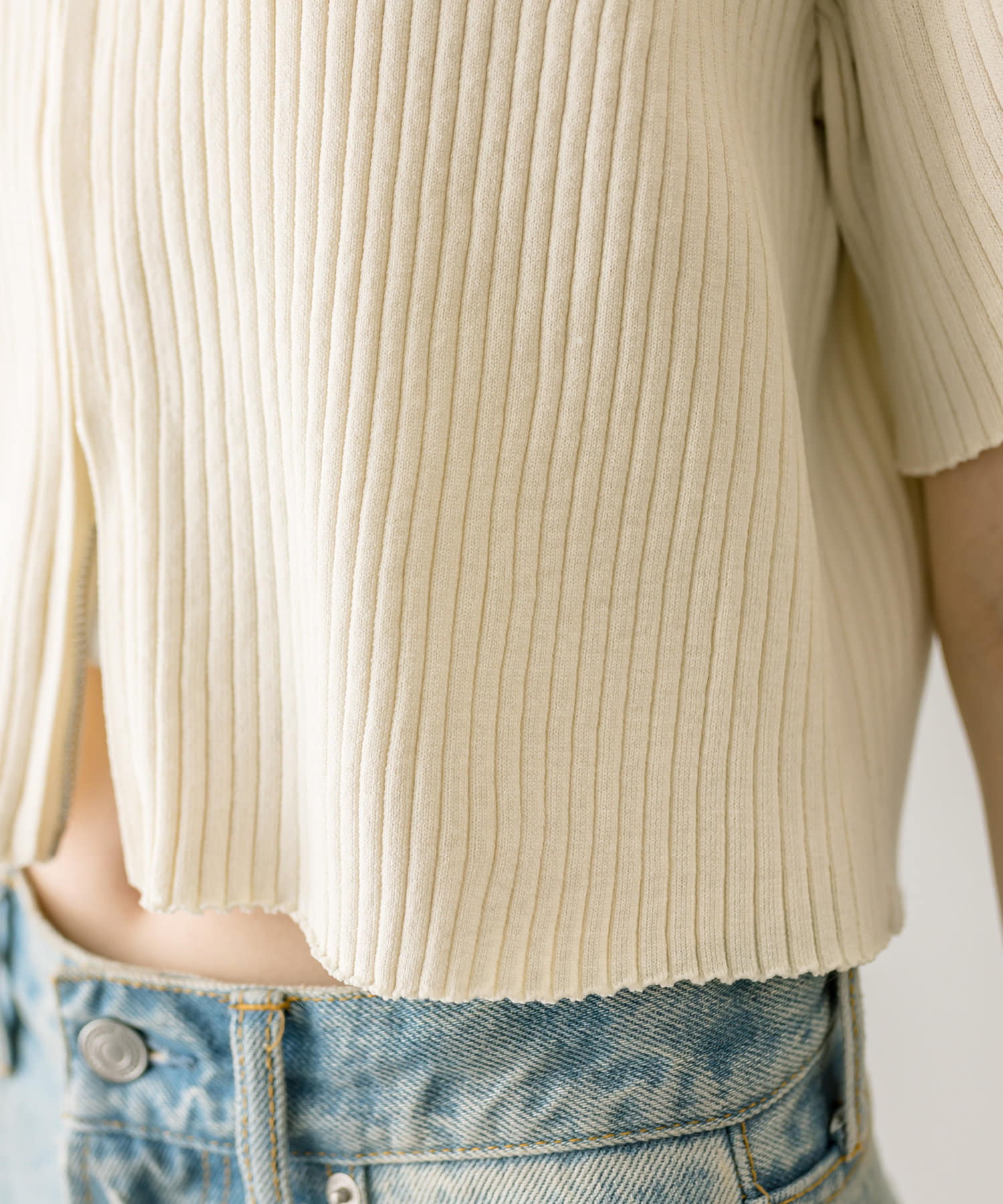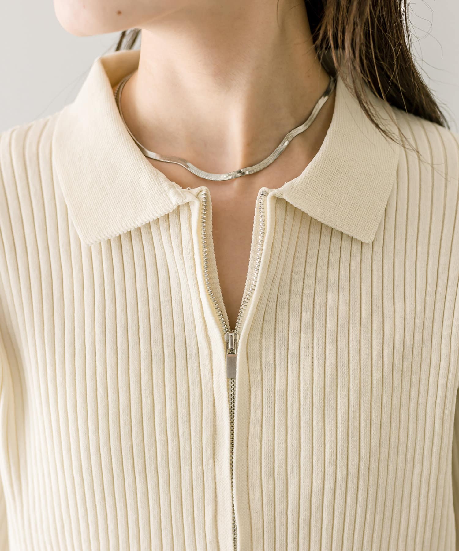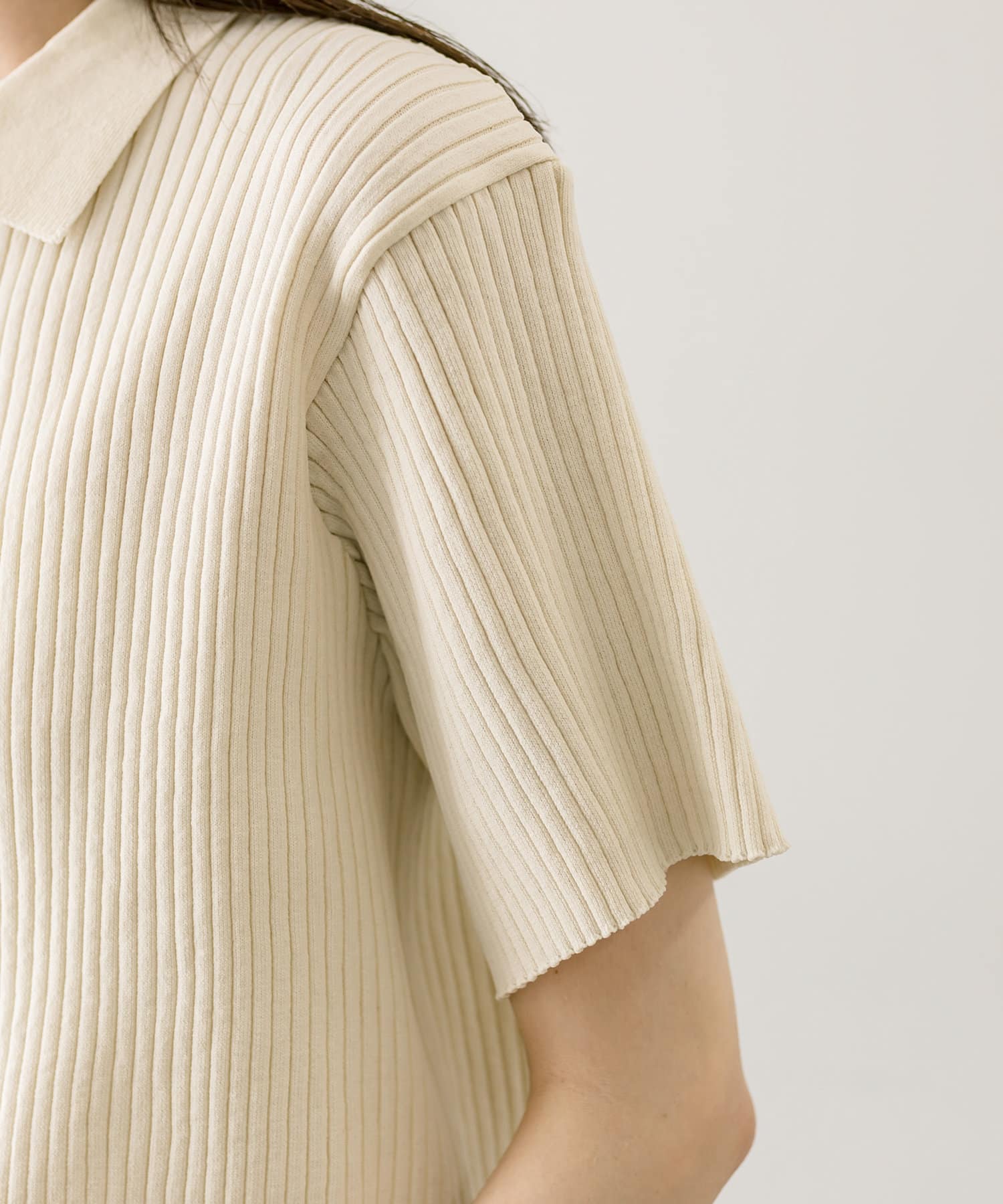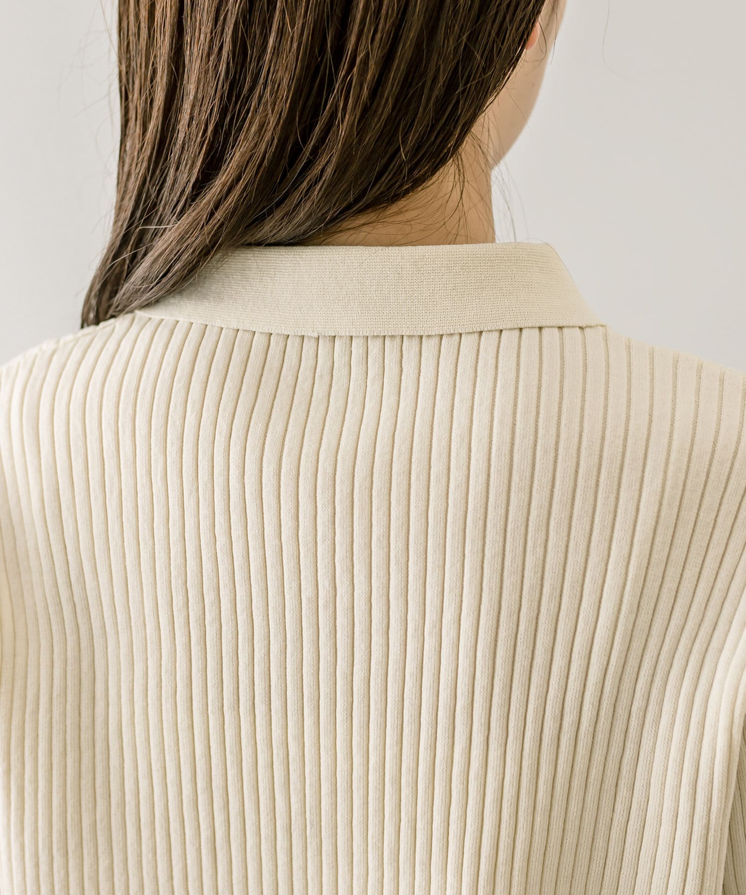 ・伸縮性のあるリブニット素材はボディラインに程よくフィットし華奢な印象に。