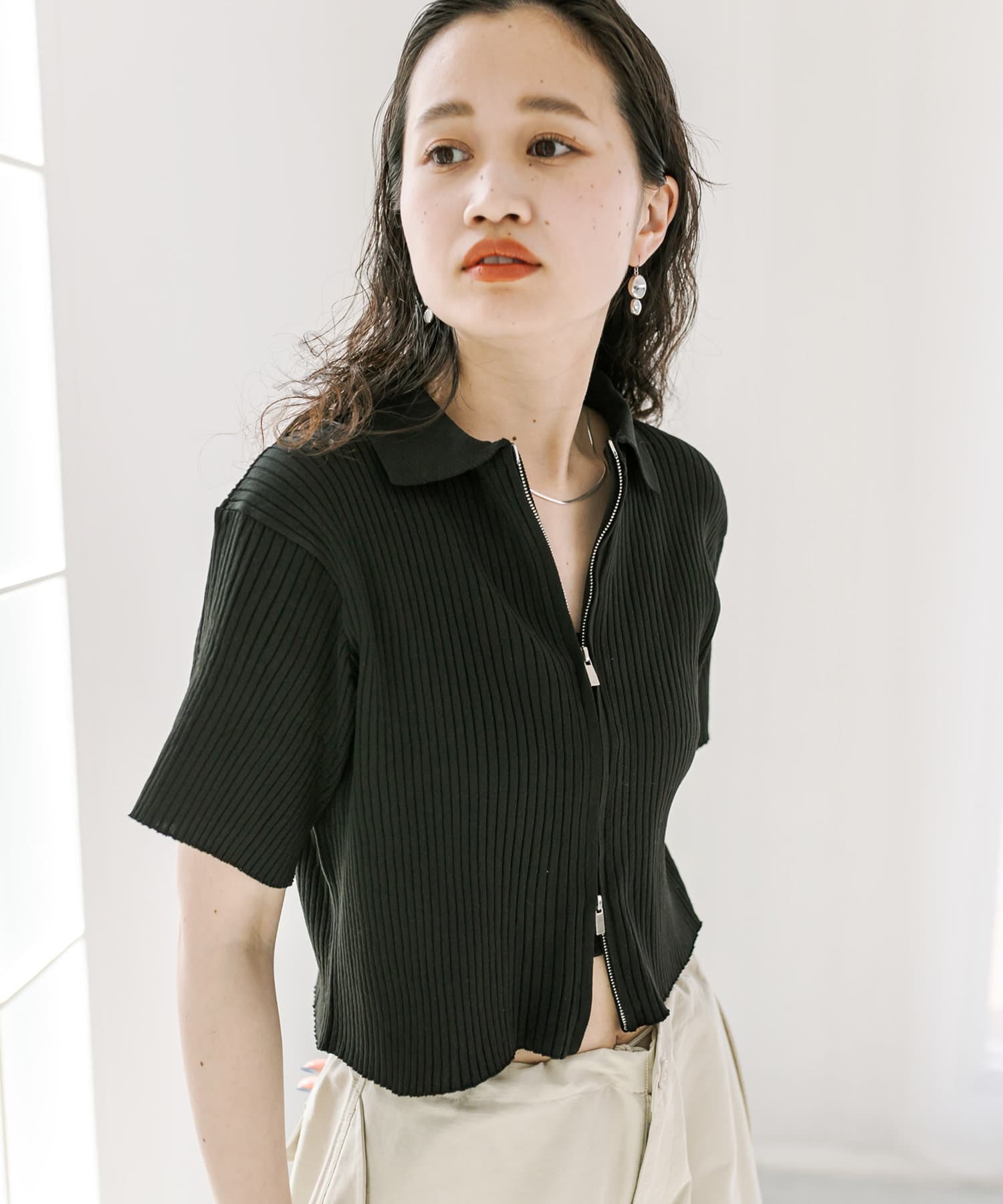 半袖仕様になって登場!トレンドのWZIPデザインがポイントのコンパクトトップス。