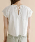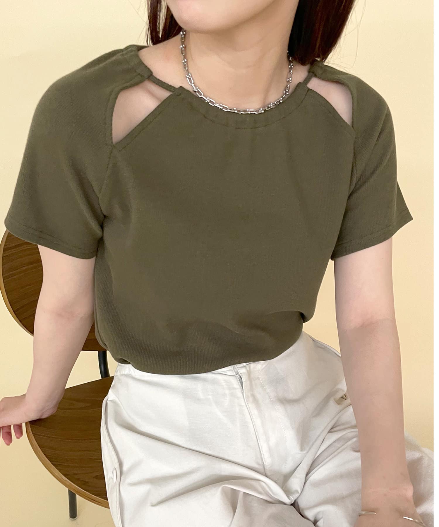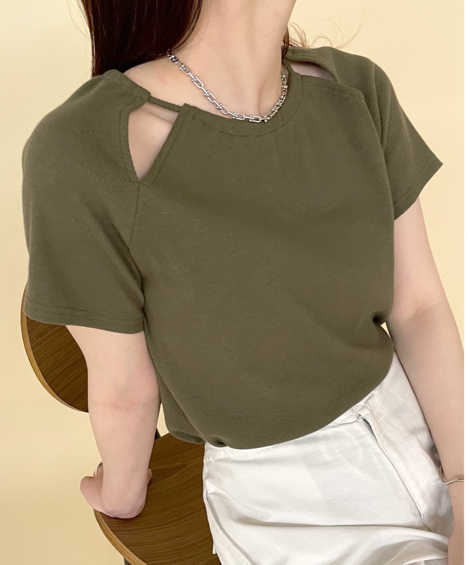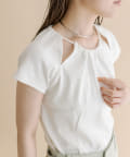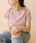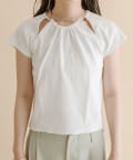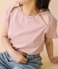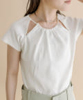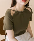 ・肩のスリットデザインが目を惹く半袖ニット。