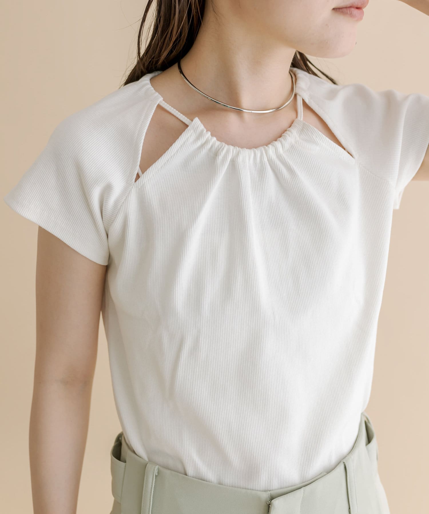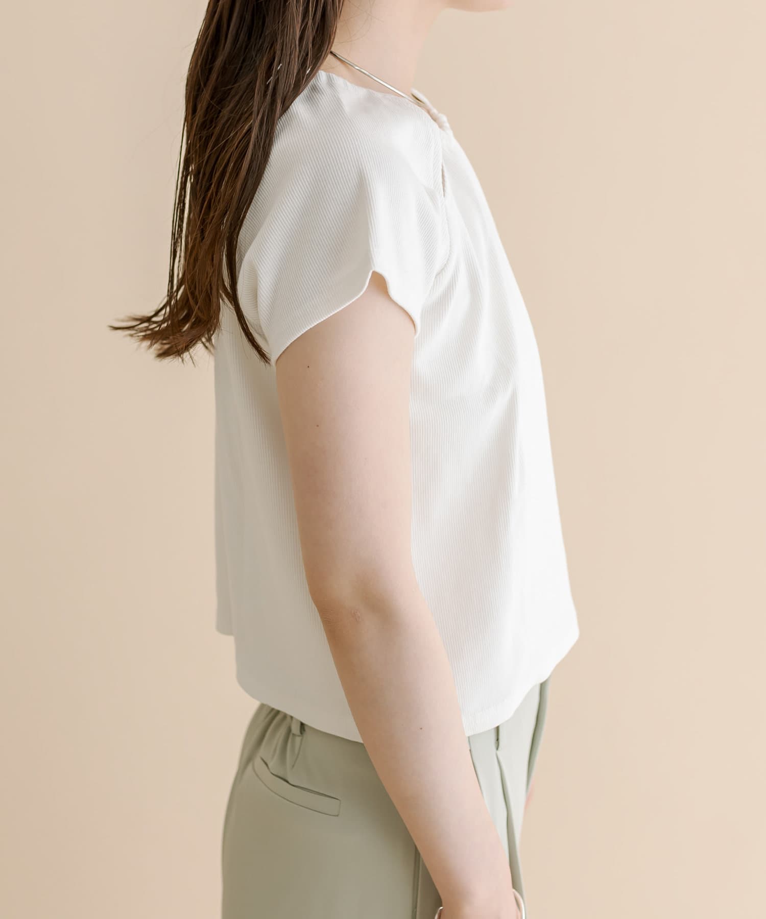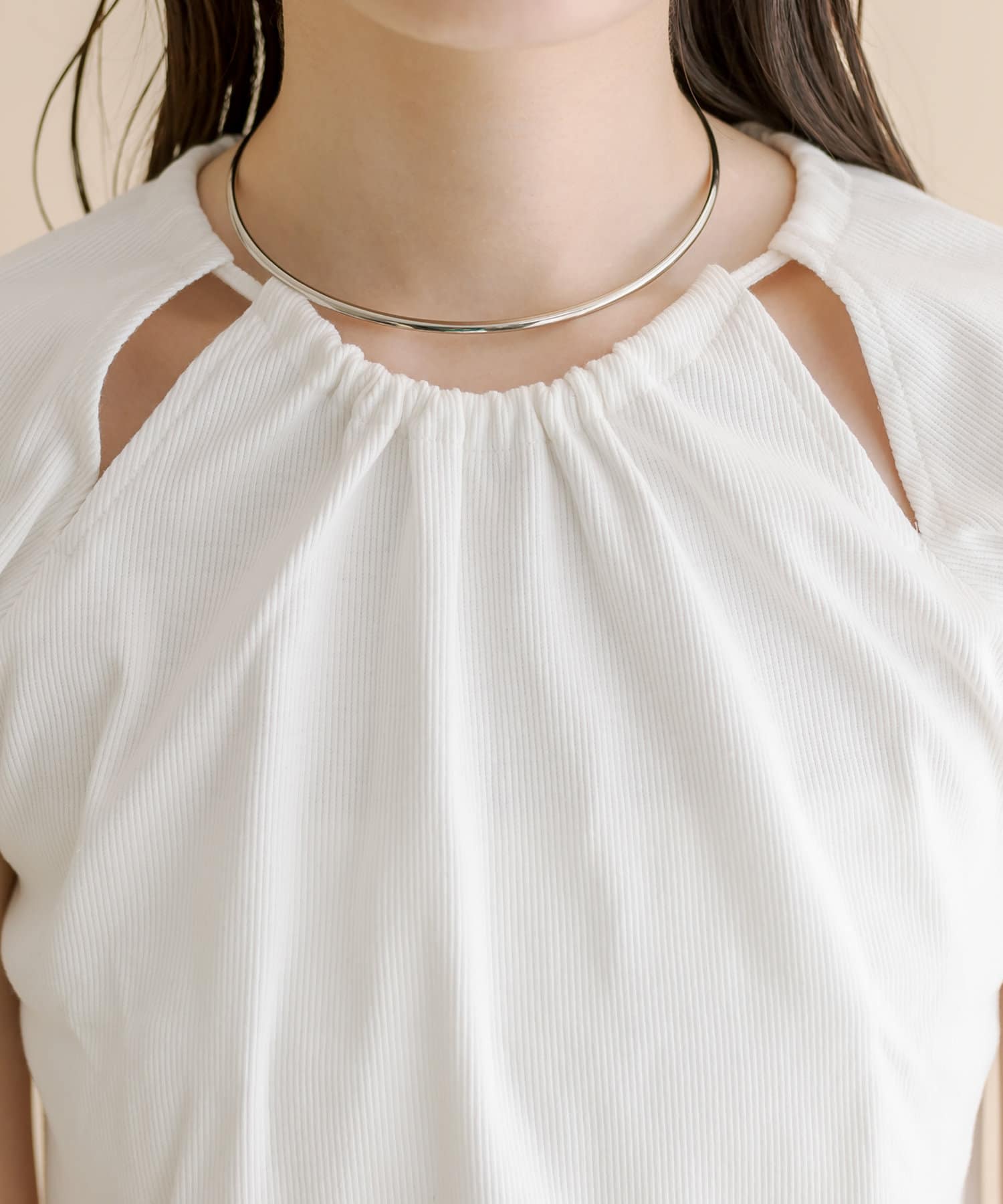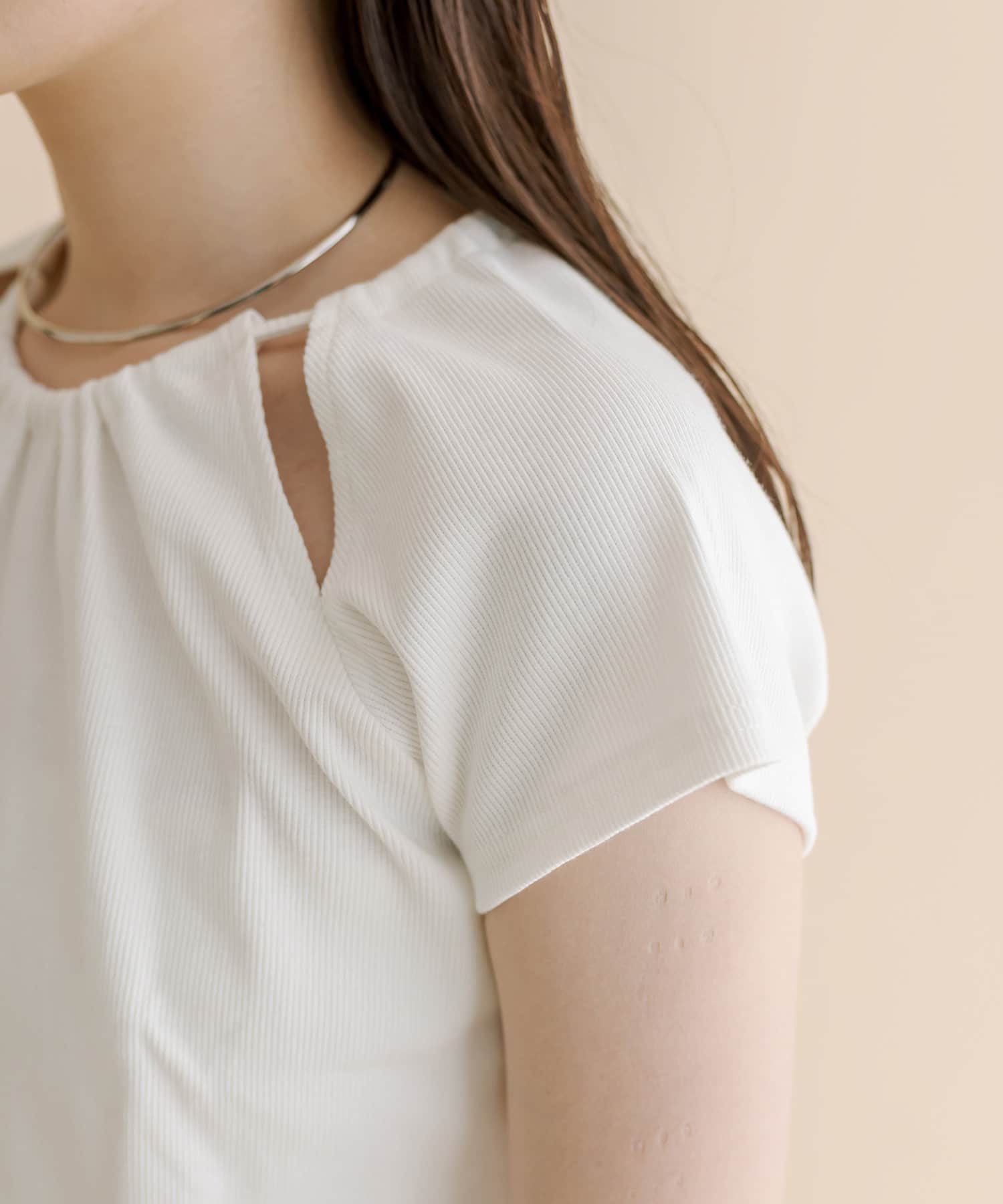 ・スリットデザインが肩回りを華奢な印象に。