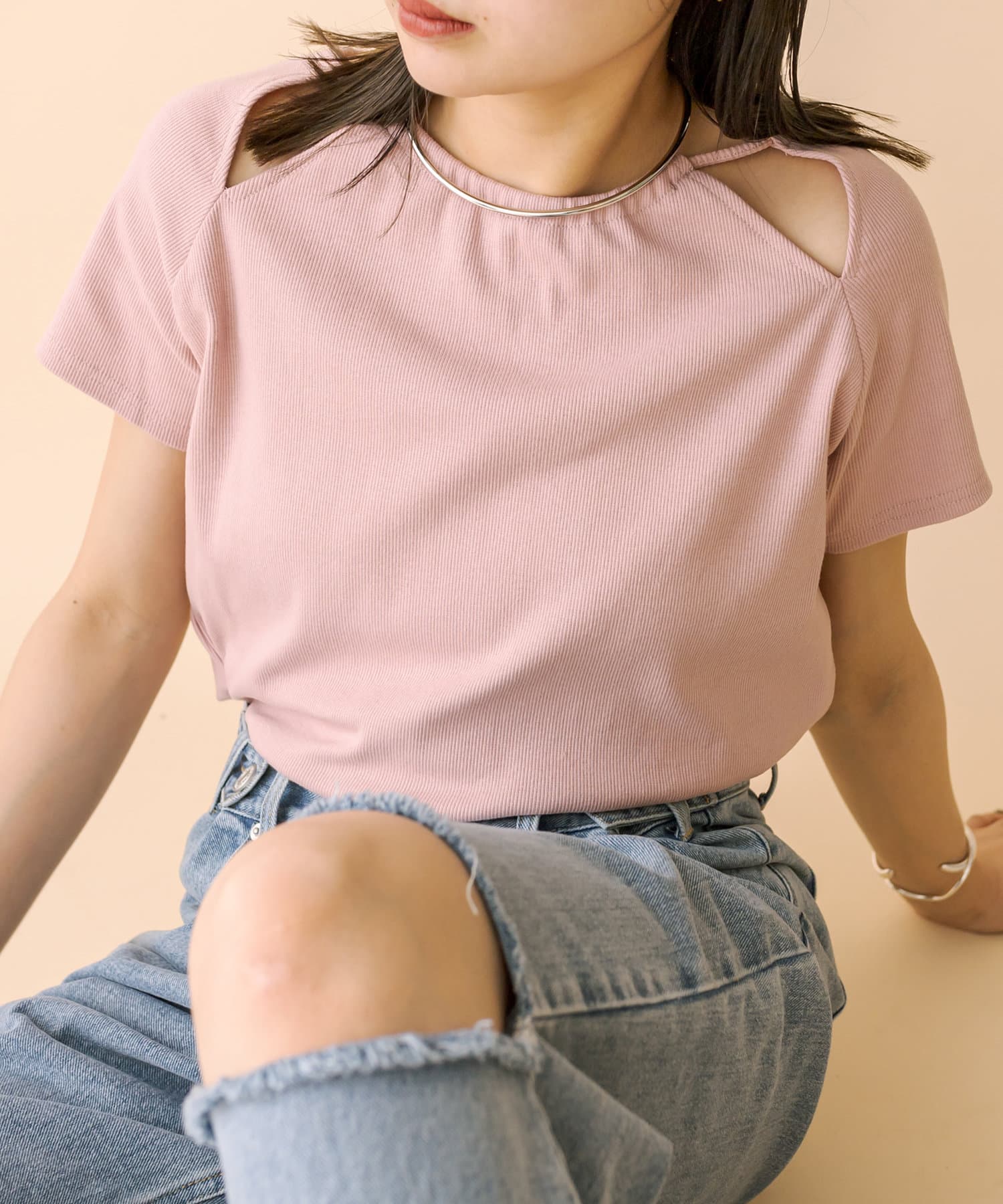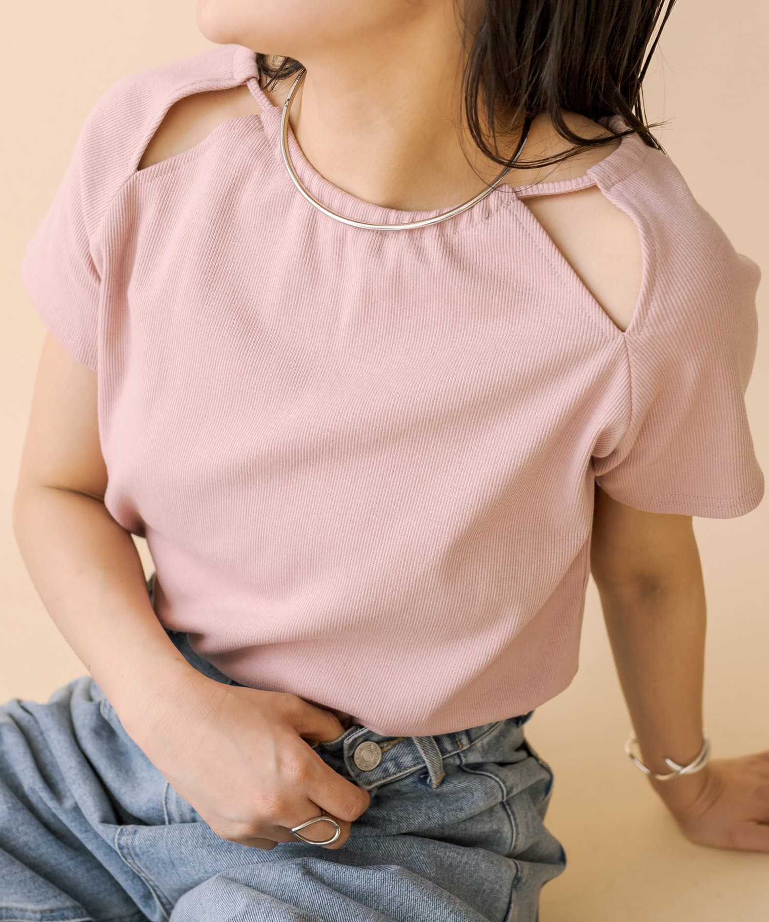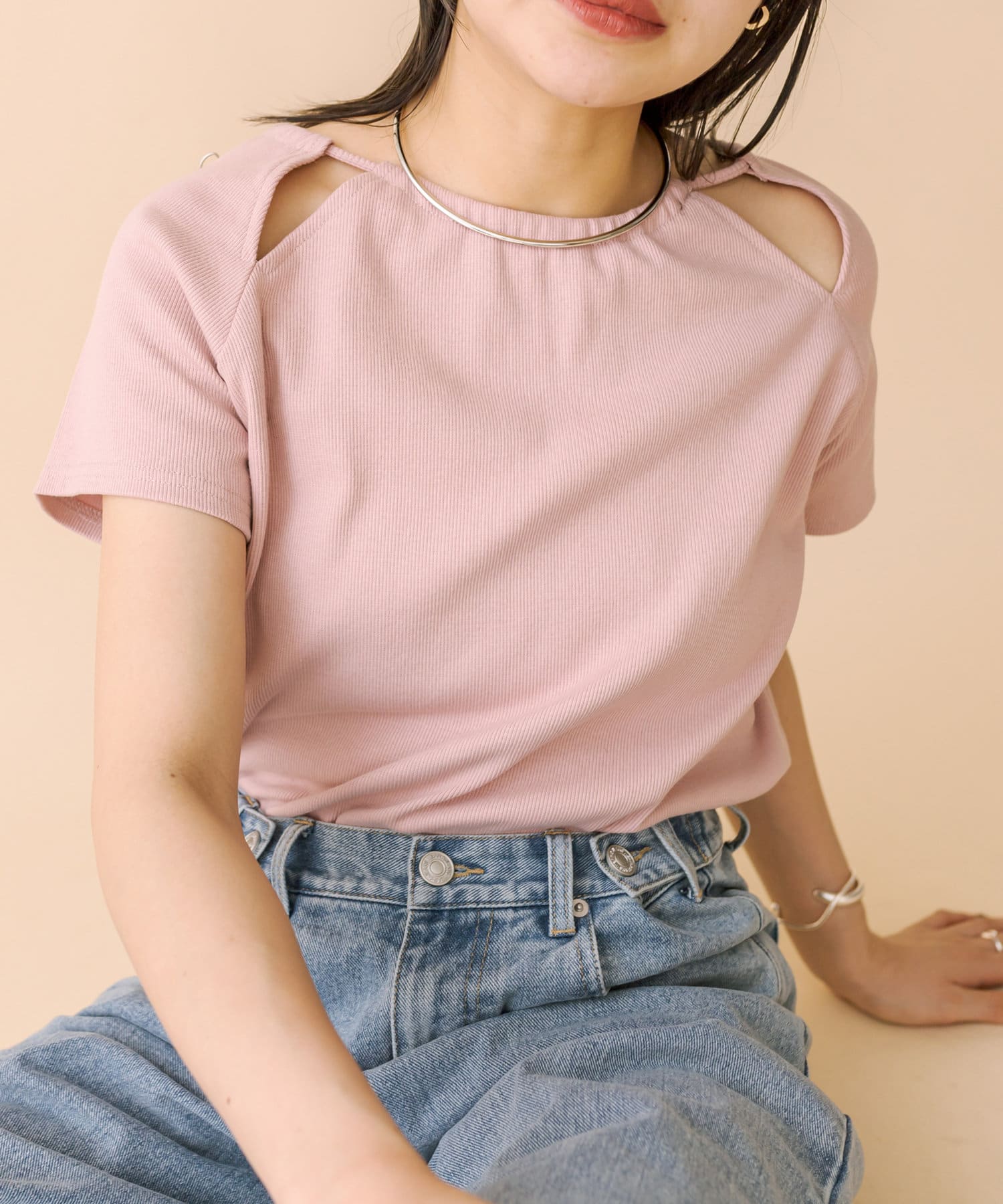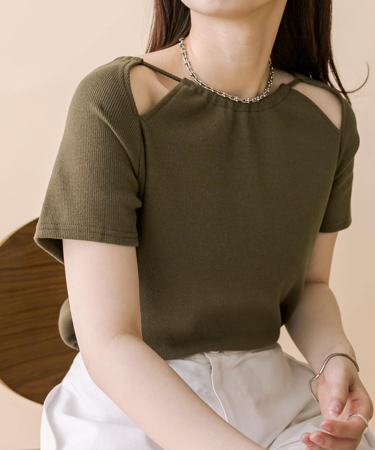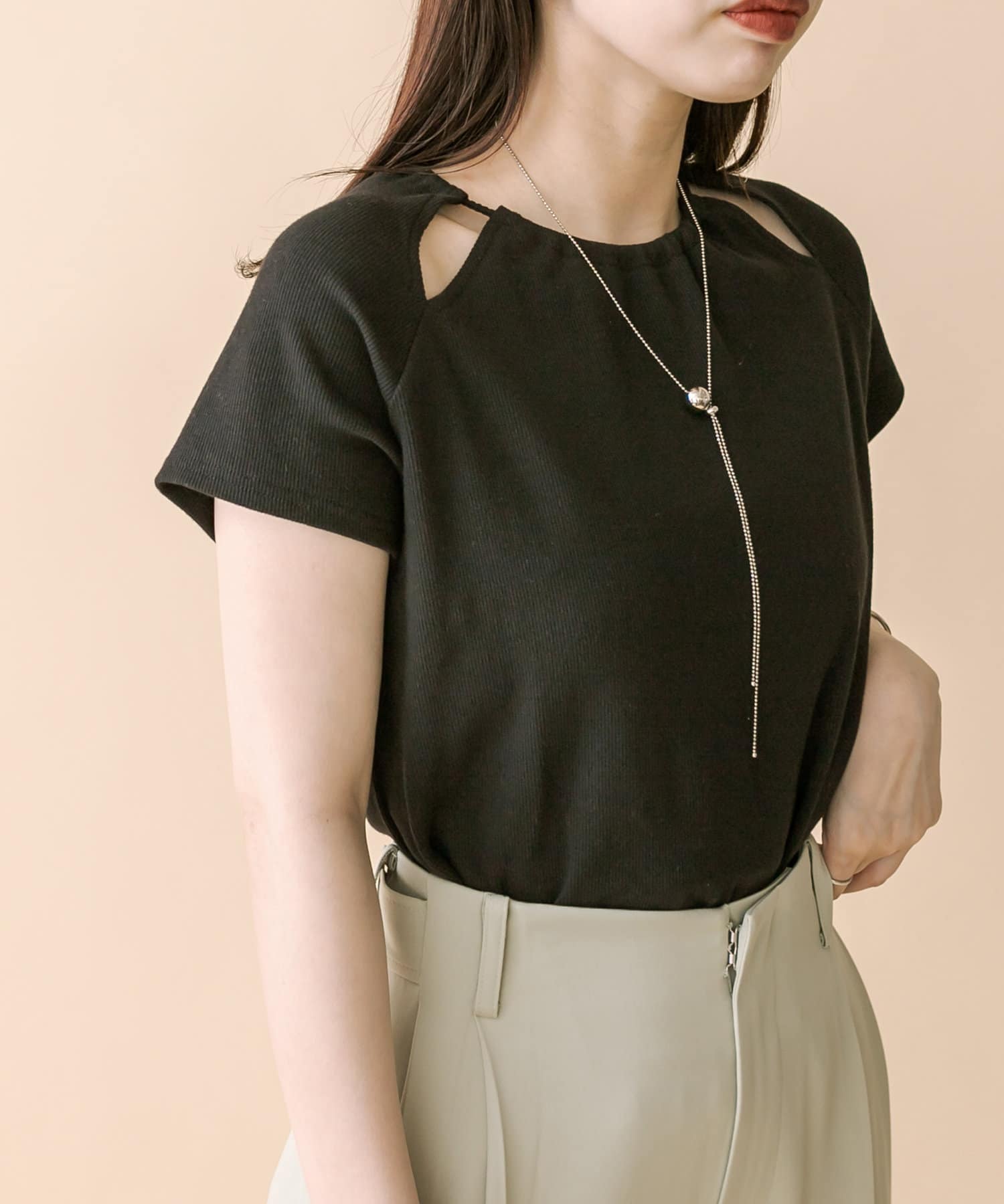 ・スリットデザインが肩回りを華奢な印象に。