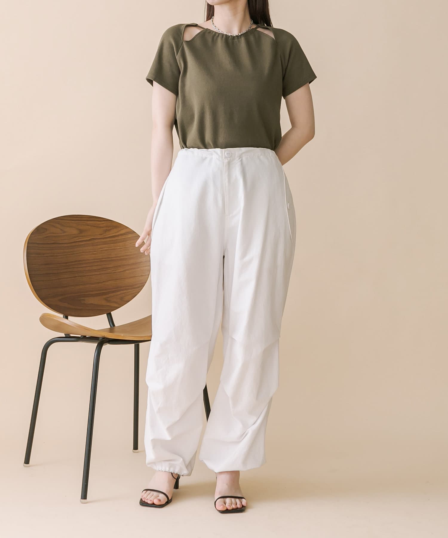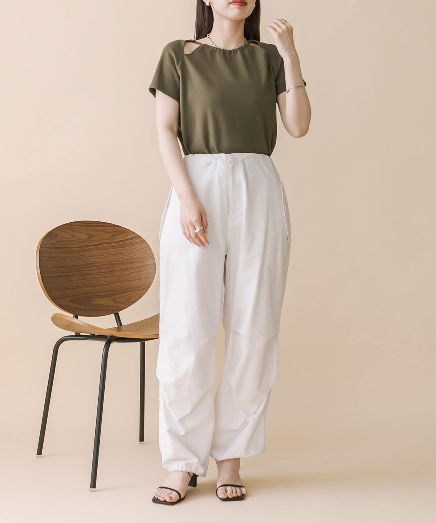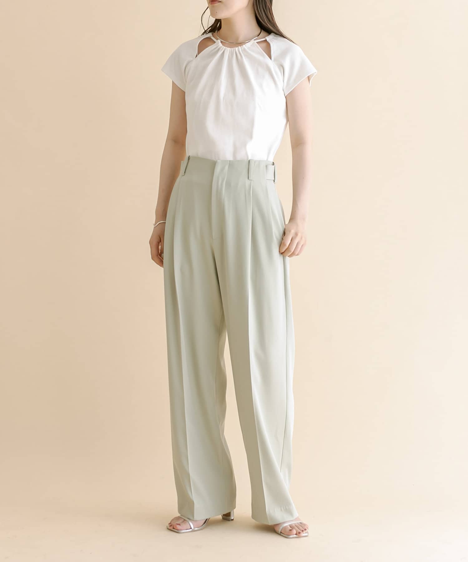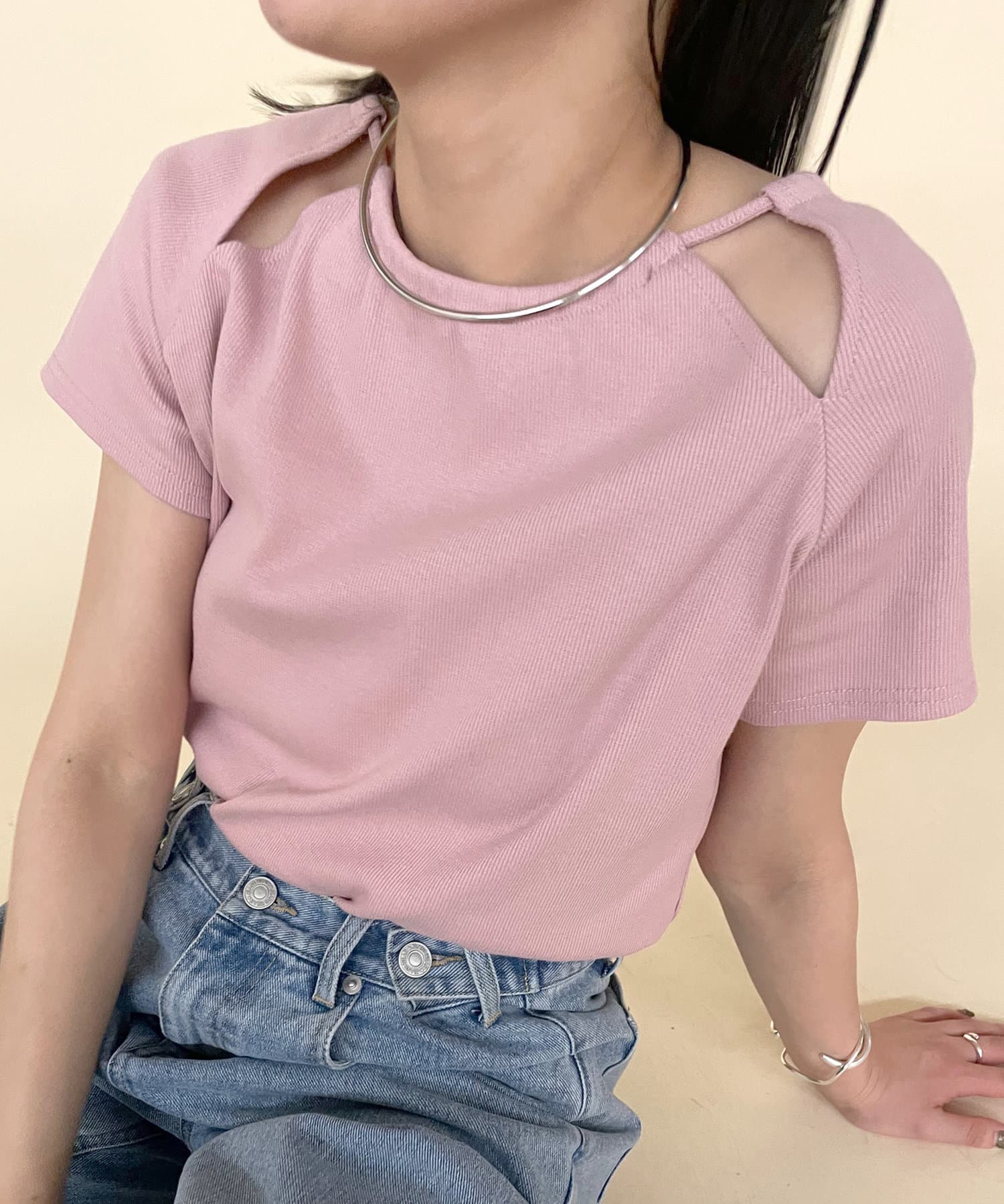 ・スリットデザインが肩回りを華奢な印象に。