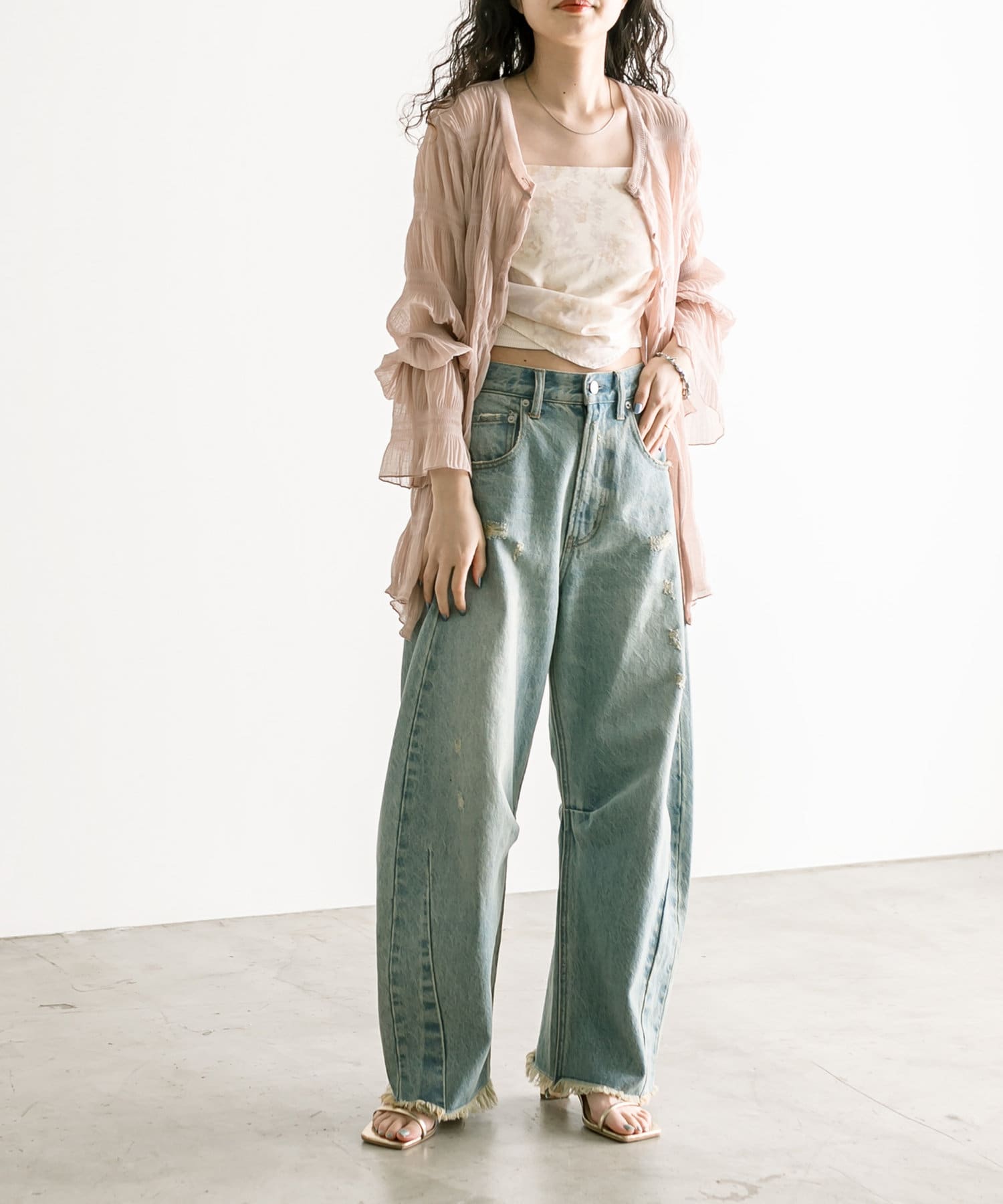 ・存在感のある花柄プリントがスタイリングの主役に決まります。