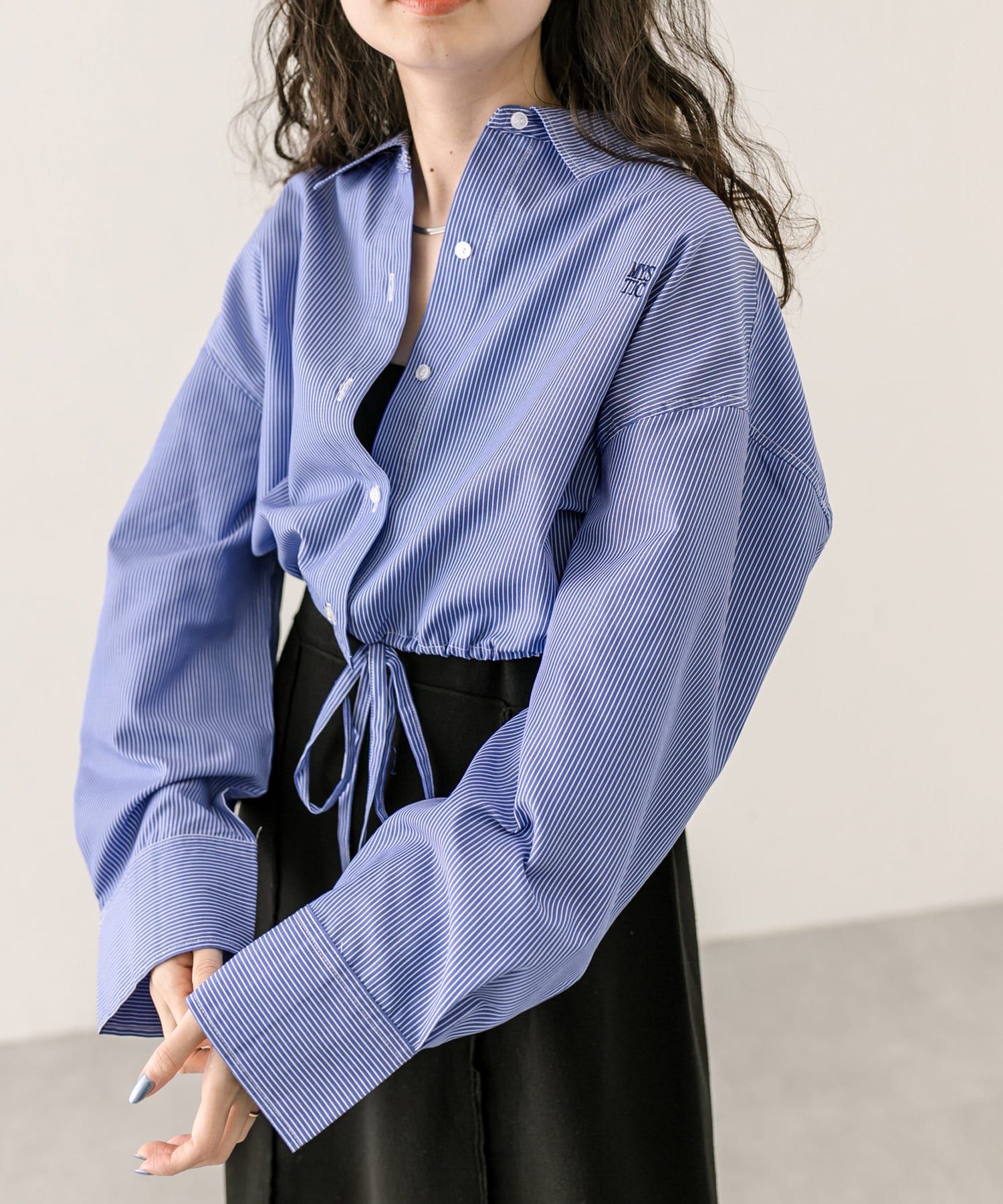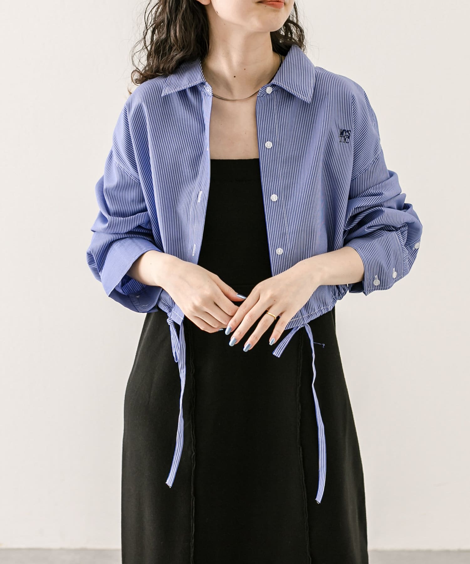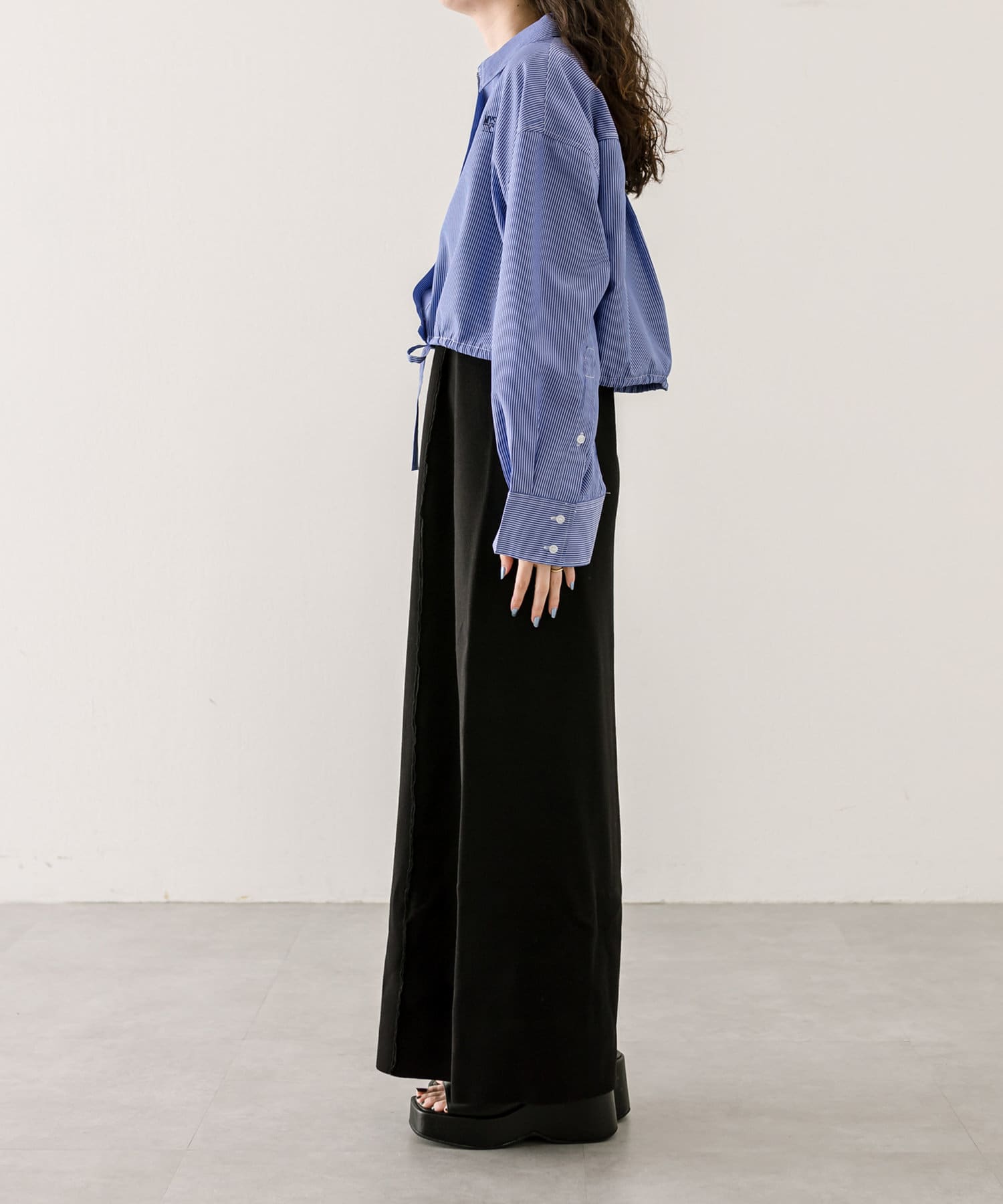 ・ショート丈のシャツは裾を絞れるデザインですっきりした印象に見せてくれます。