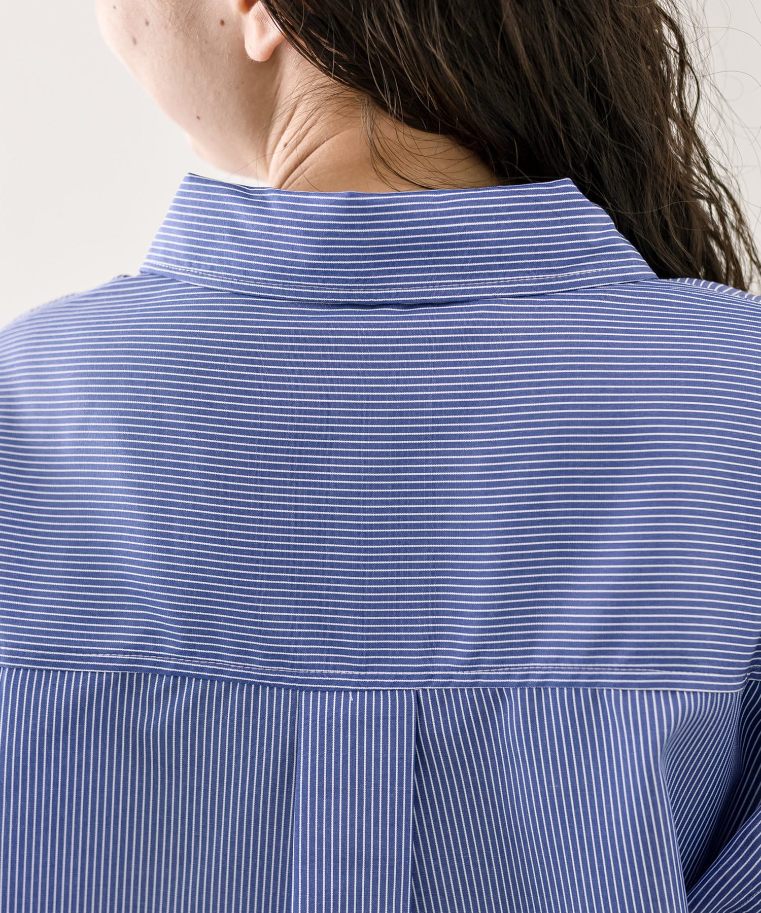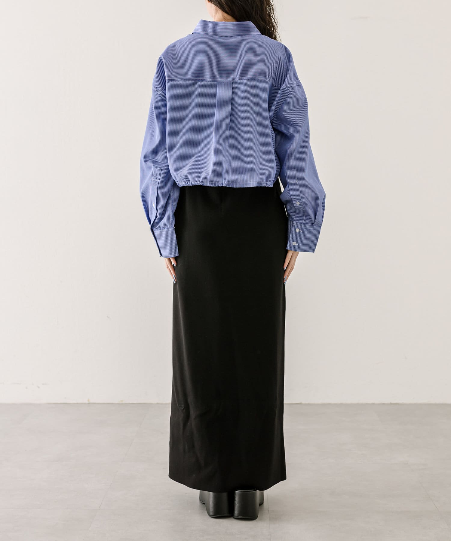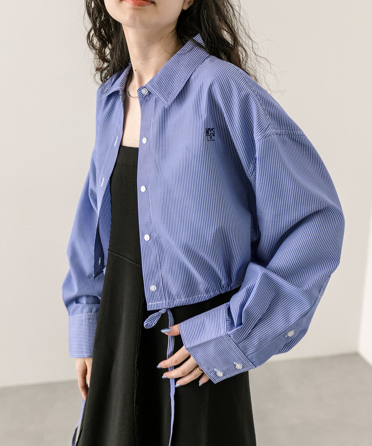・ショート丈のシャツは裾を絞れるデザインですっきりした印象に見せてくれます。