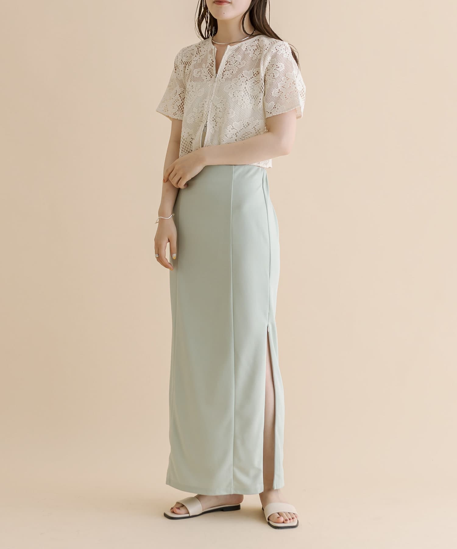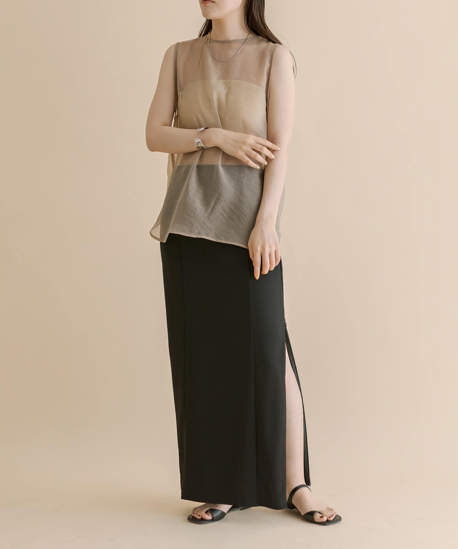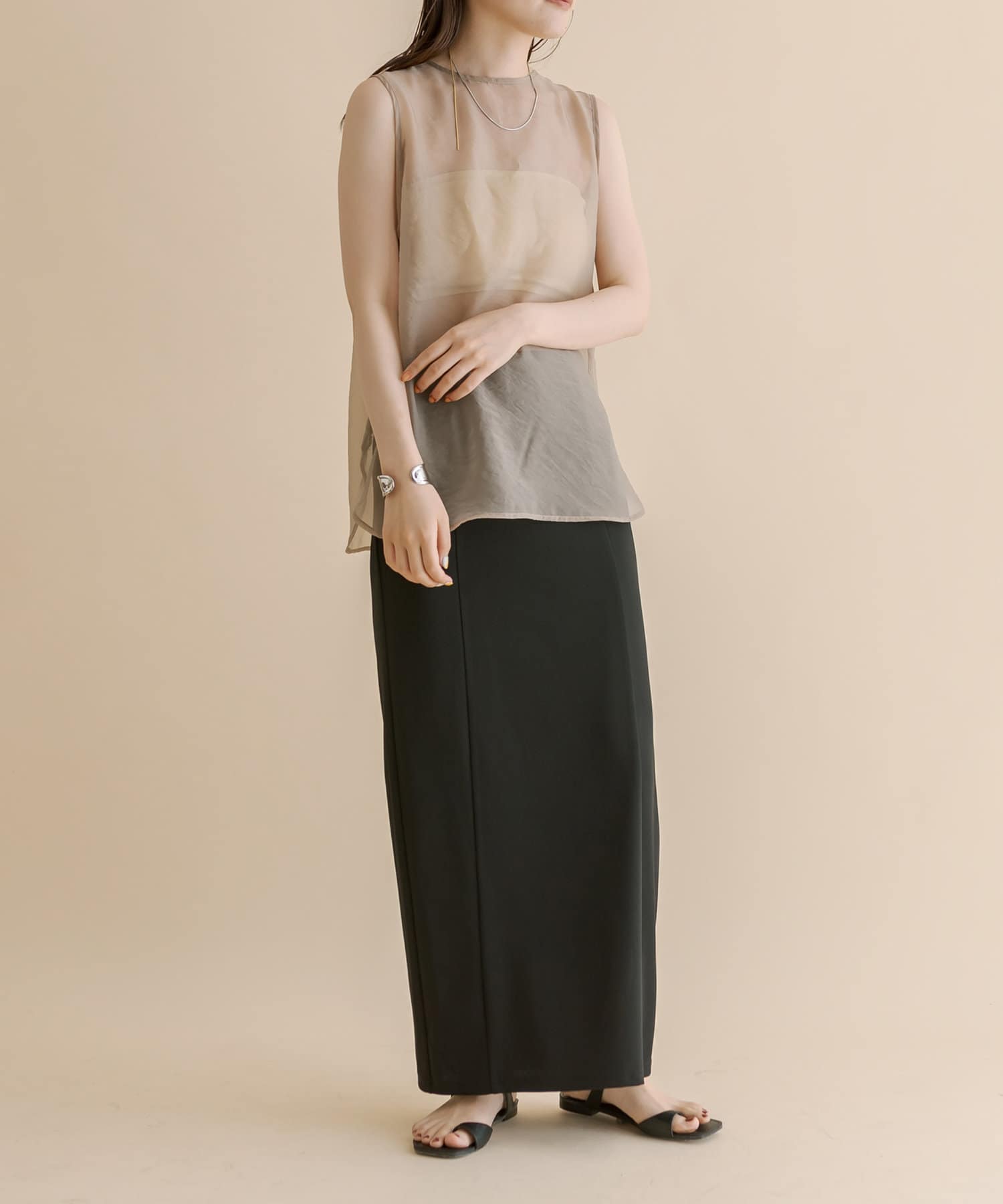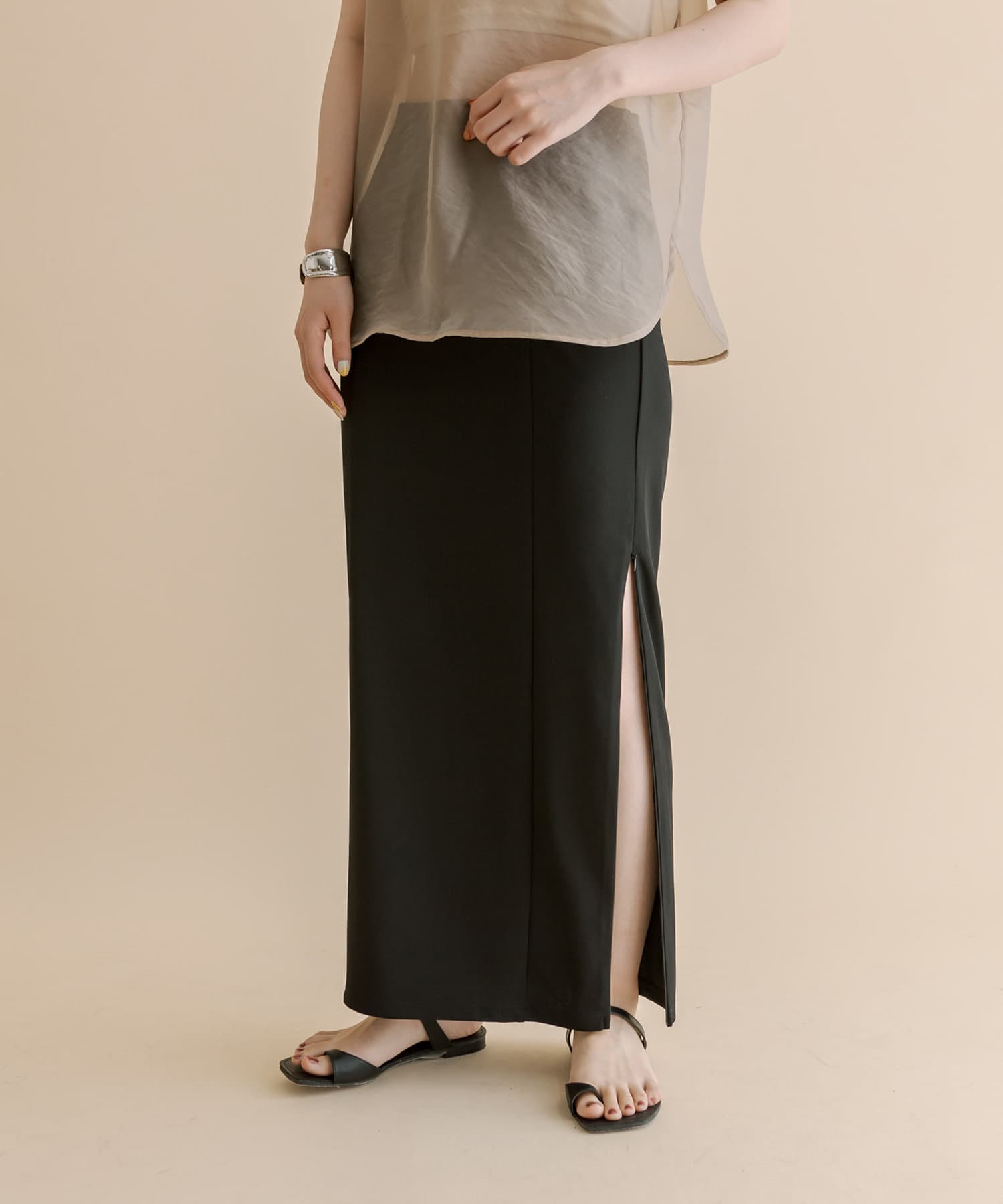 ・ロング丈なのでサンダル合わせで肌見せすればバランス感のあるスタイリングに◎