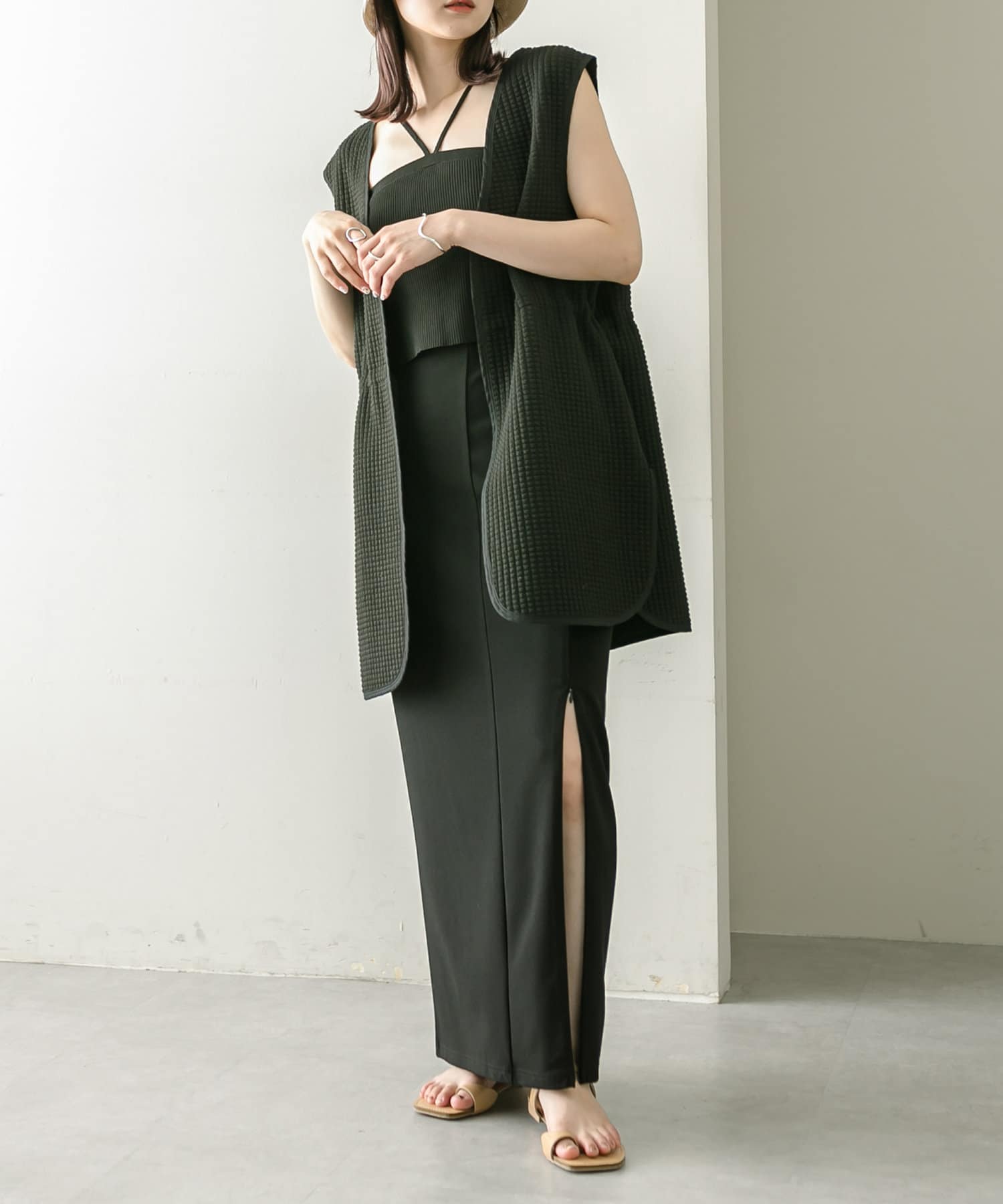 ・ロング丈なのでサンダル合わせで肌見せすればバランス感のあるスタイリングに◎