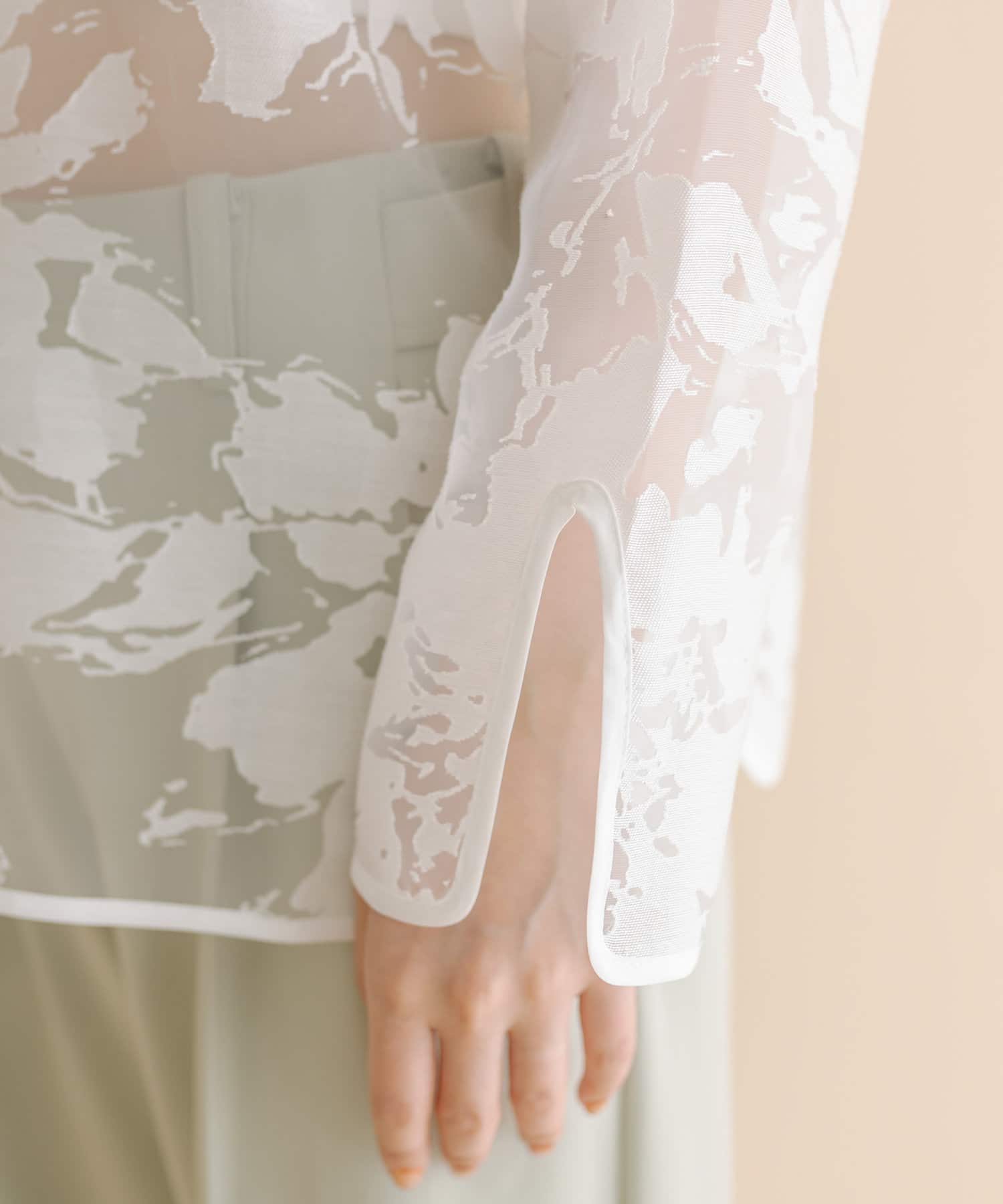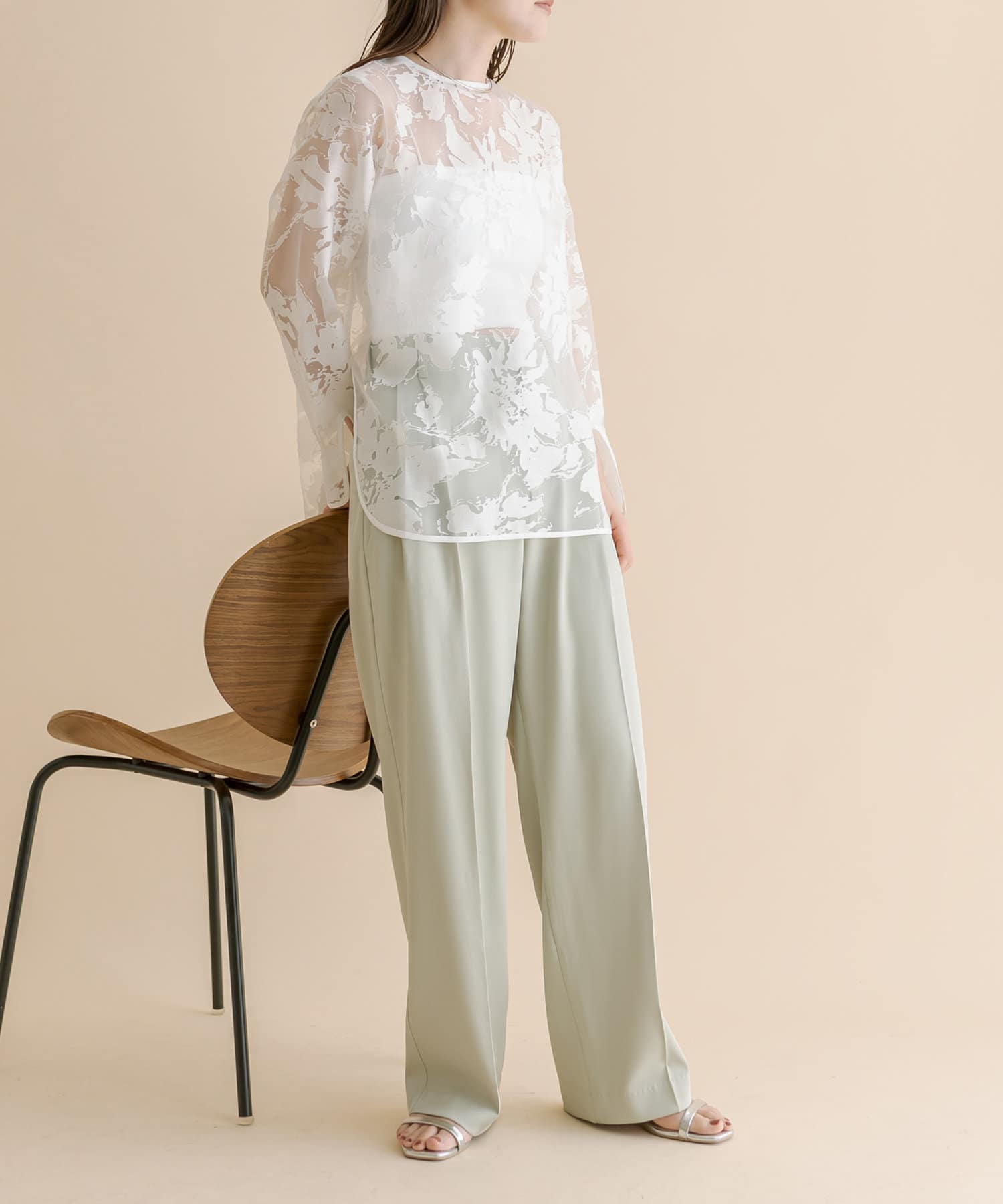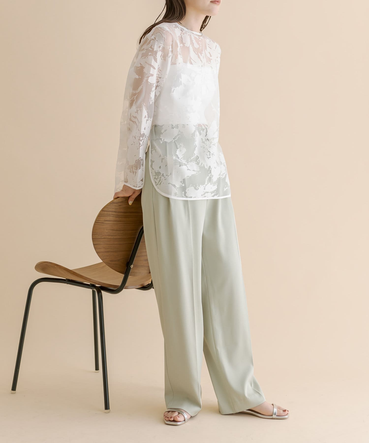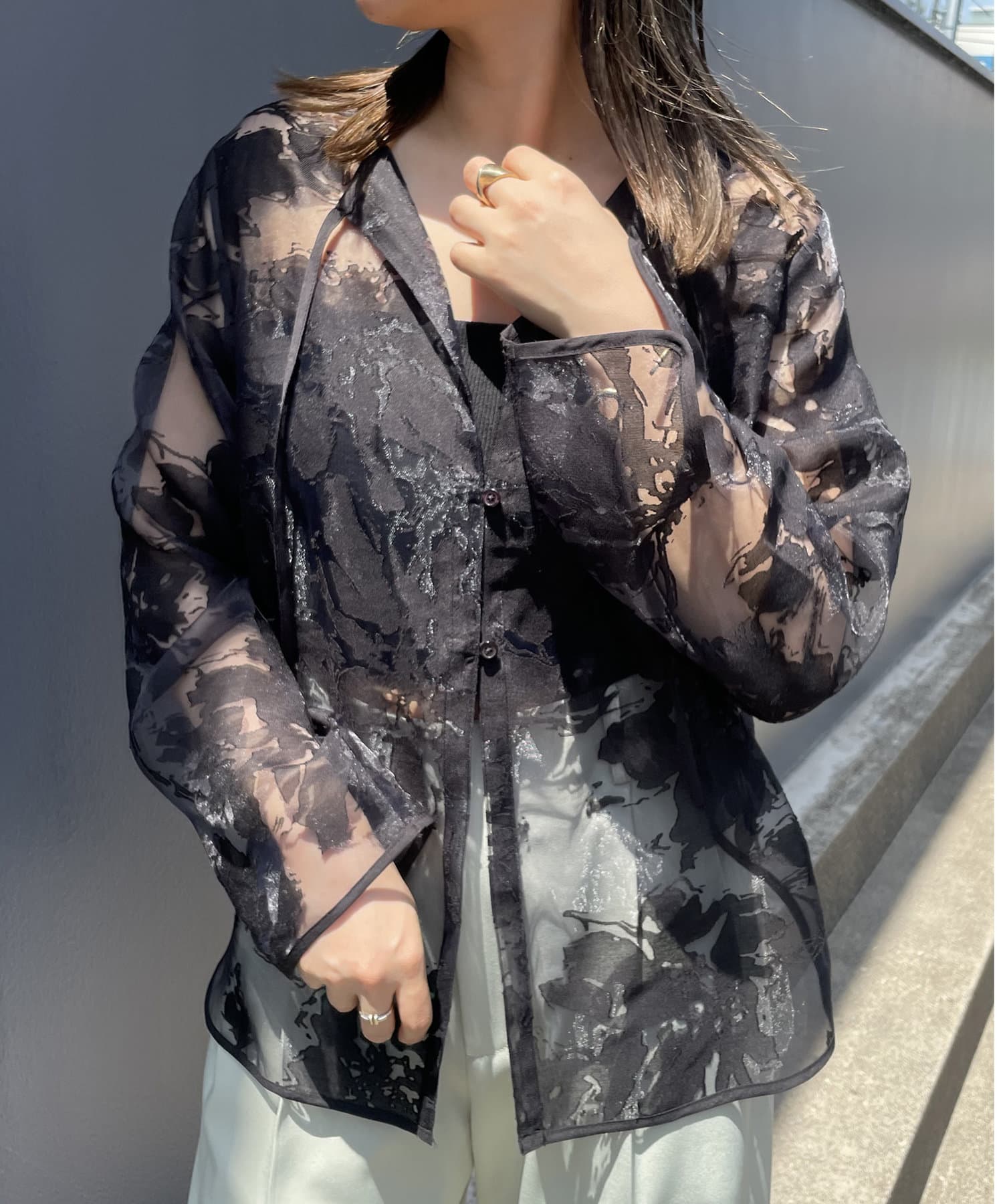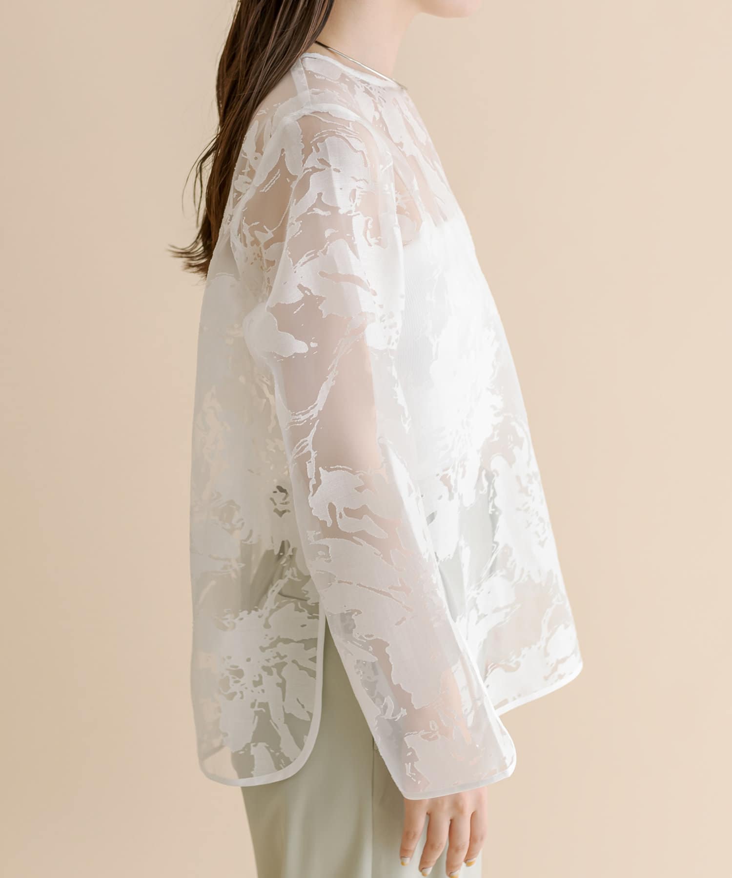 ・ややハリ感のあるオーガンジー素材が女性らしい印象に見せてくれるブラウス。