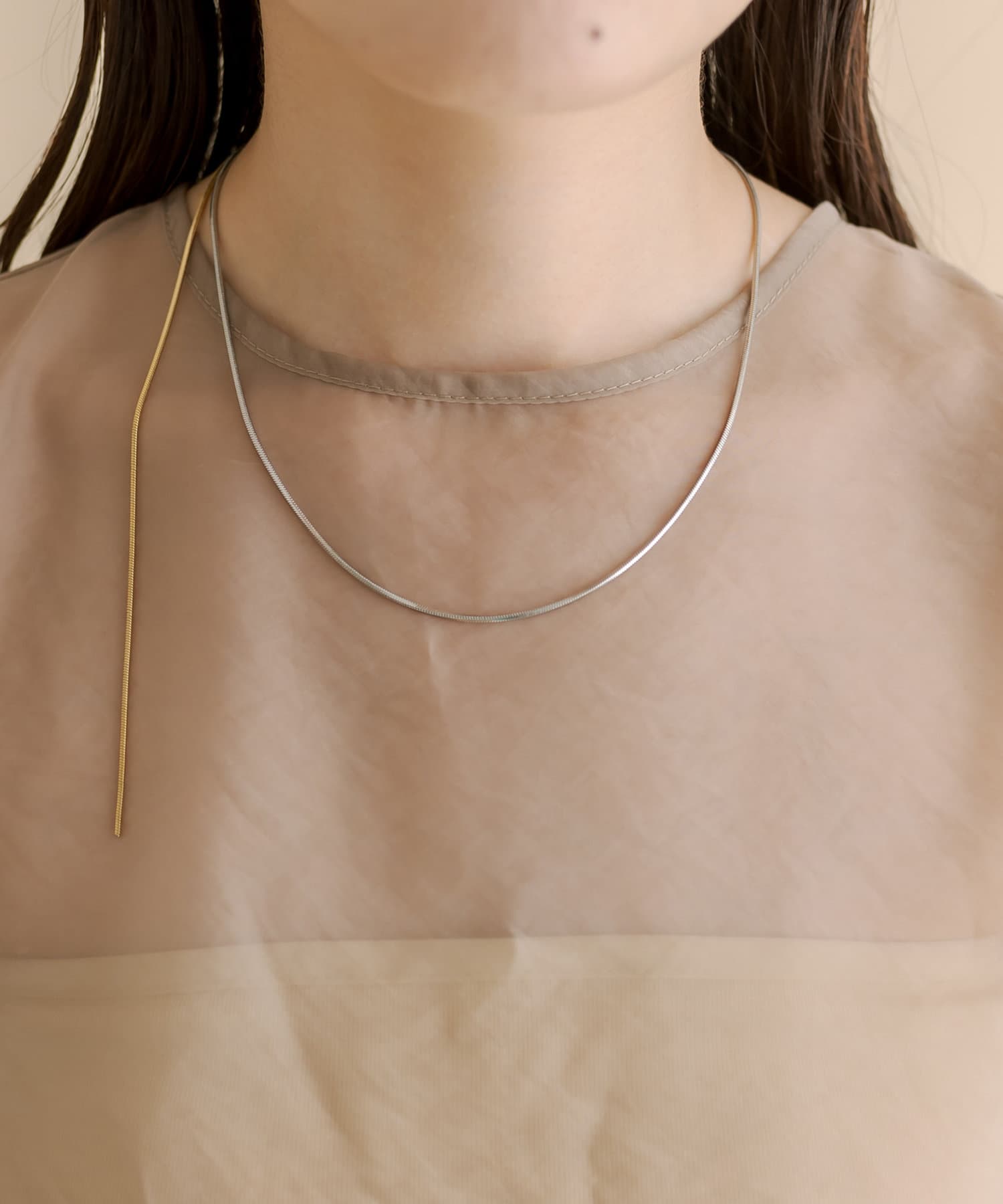 ・ネックレスなど小物と合わせることで上品な着こなしに。