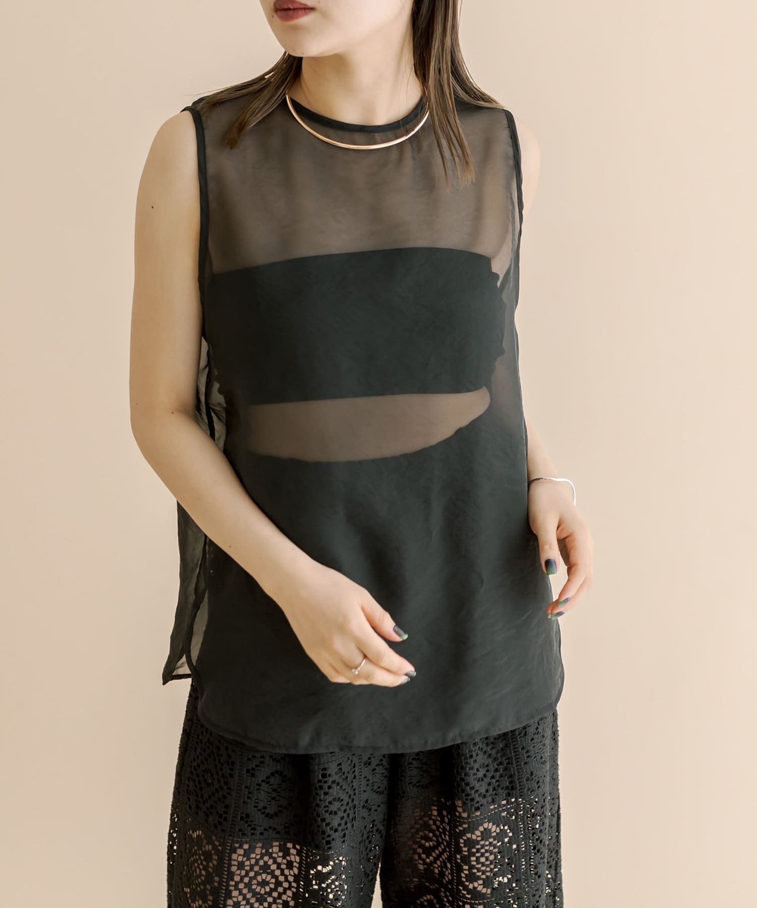 夏の定番ノースリーブに、シアー生地のプルオーバーが登場!