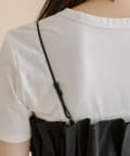 ・細めの肩ストラップが上品な印象に見せてくれます。