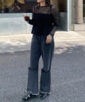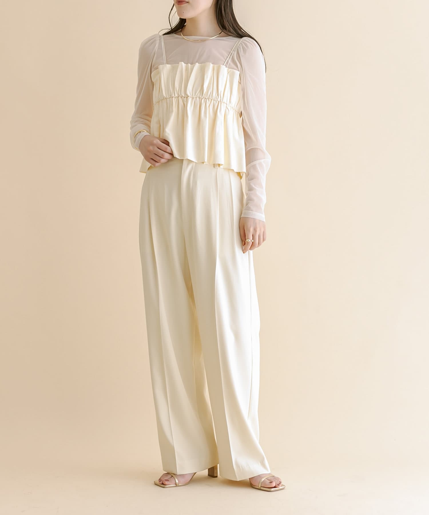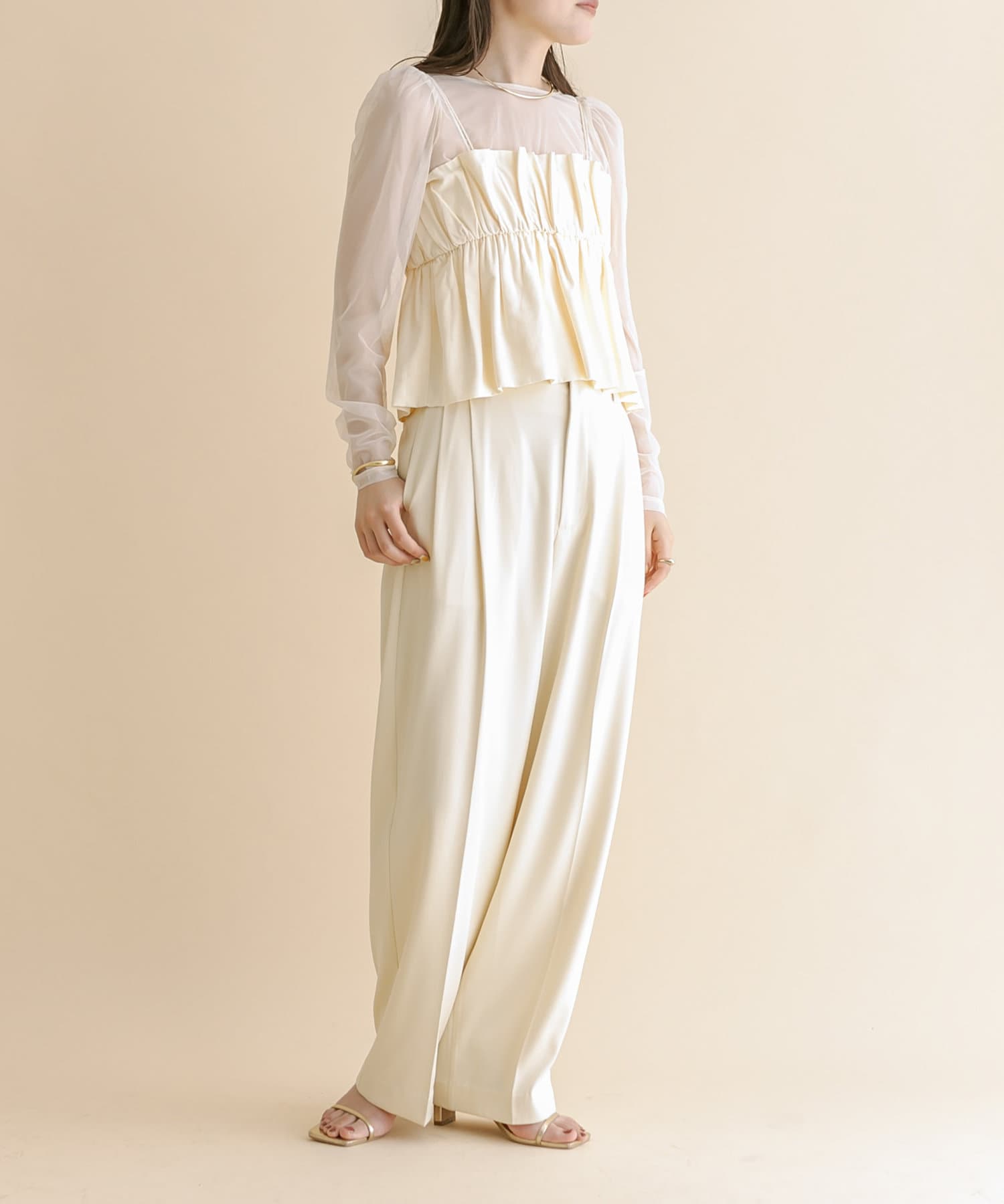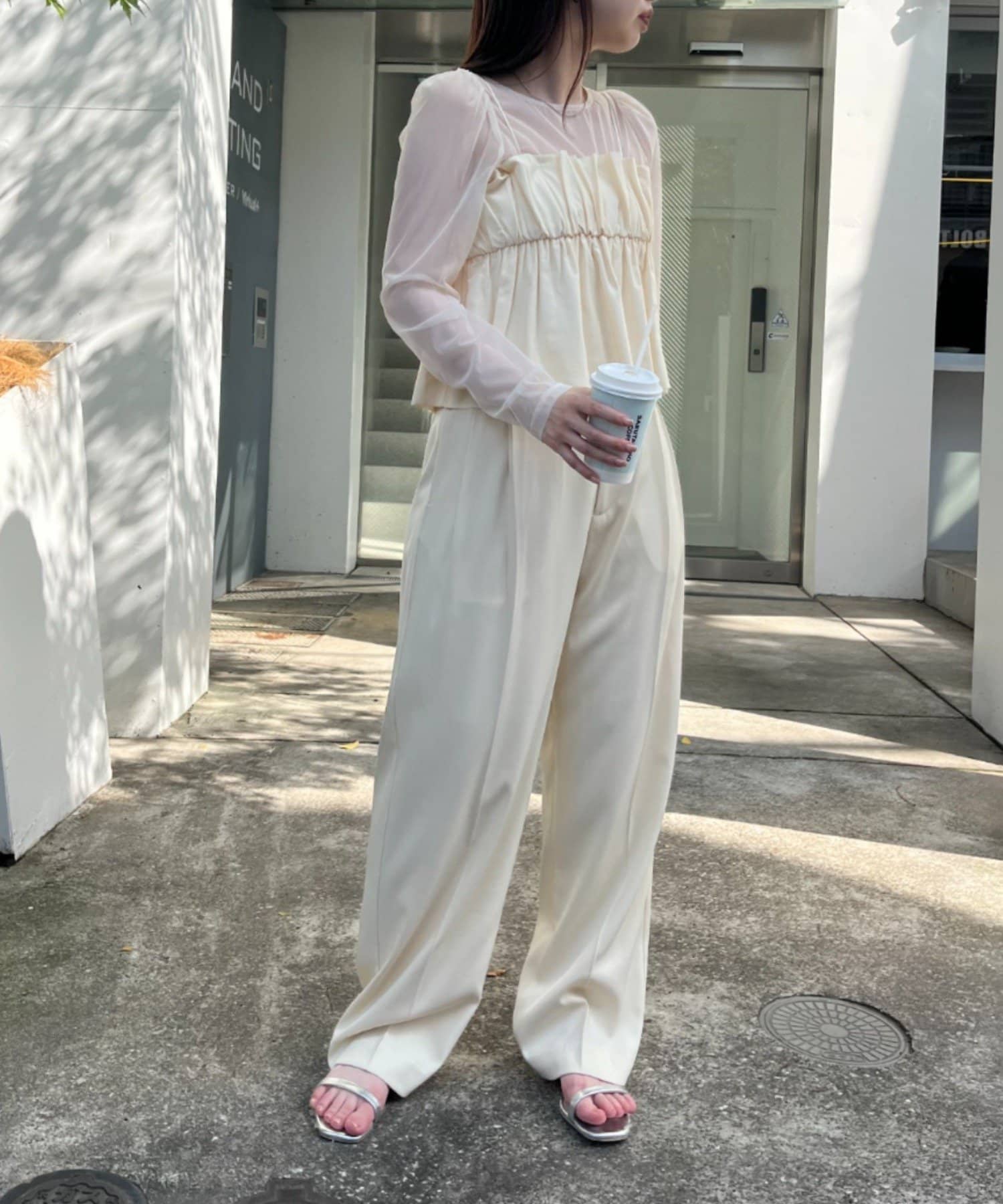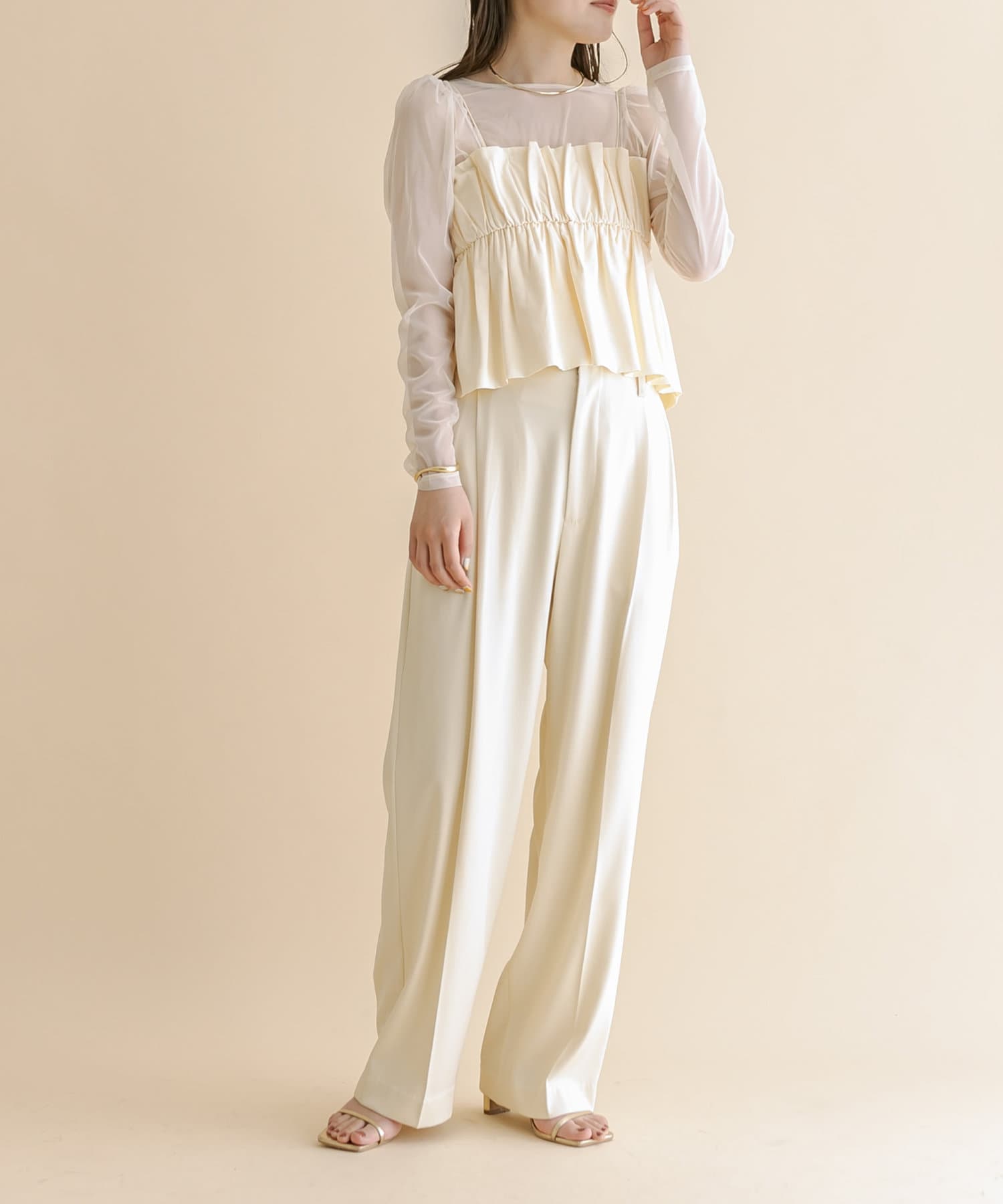 ・シアー素材のブラウスと合わせることで華やかな印象に。