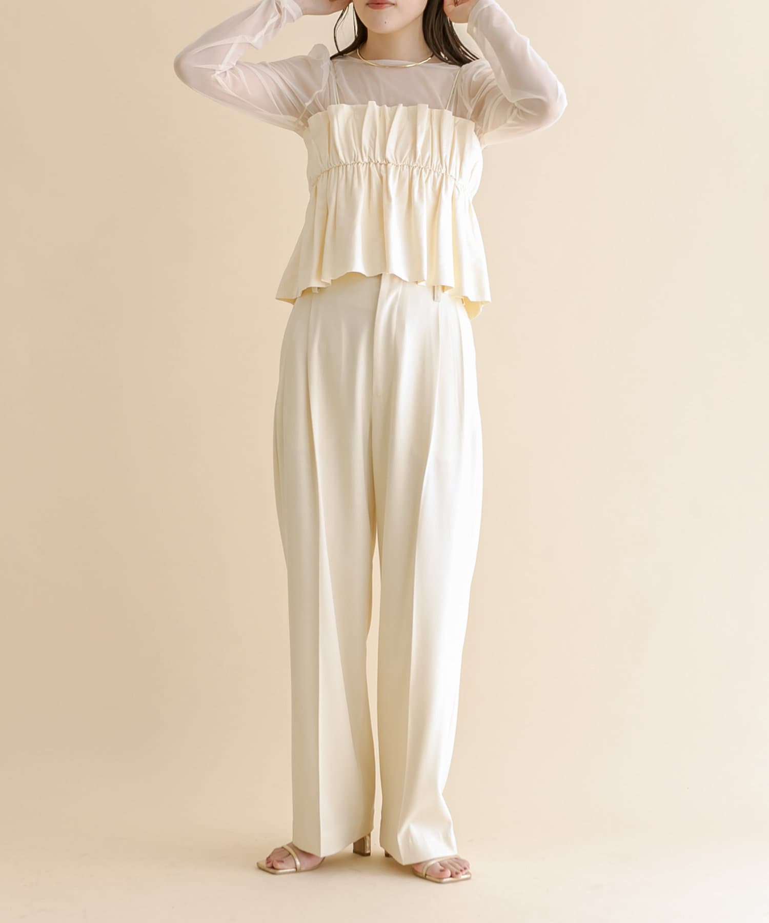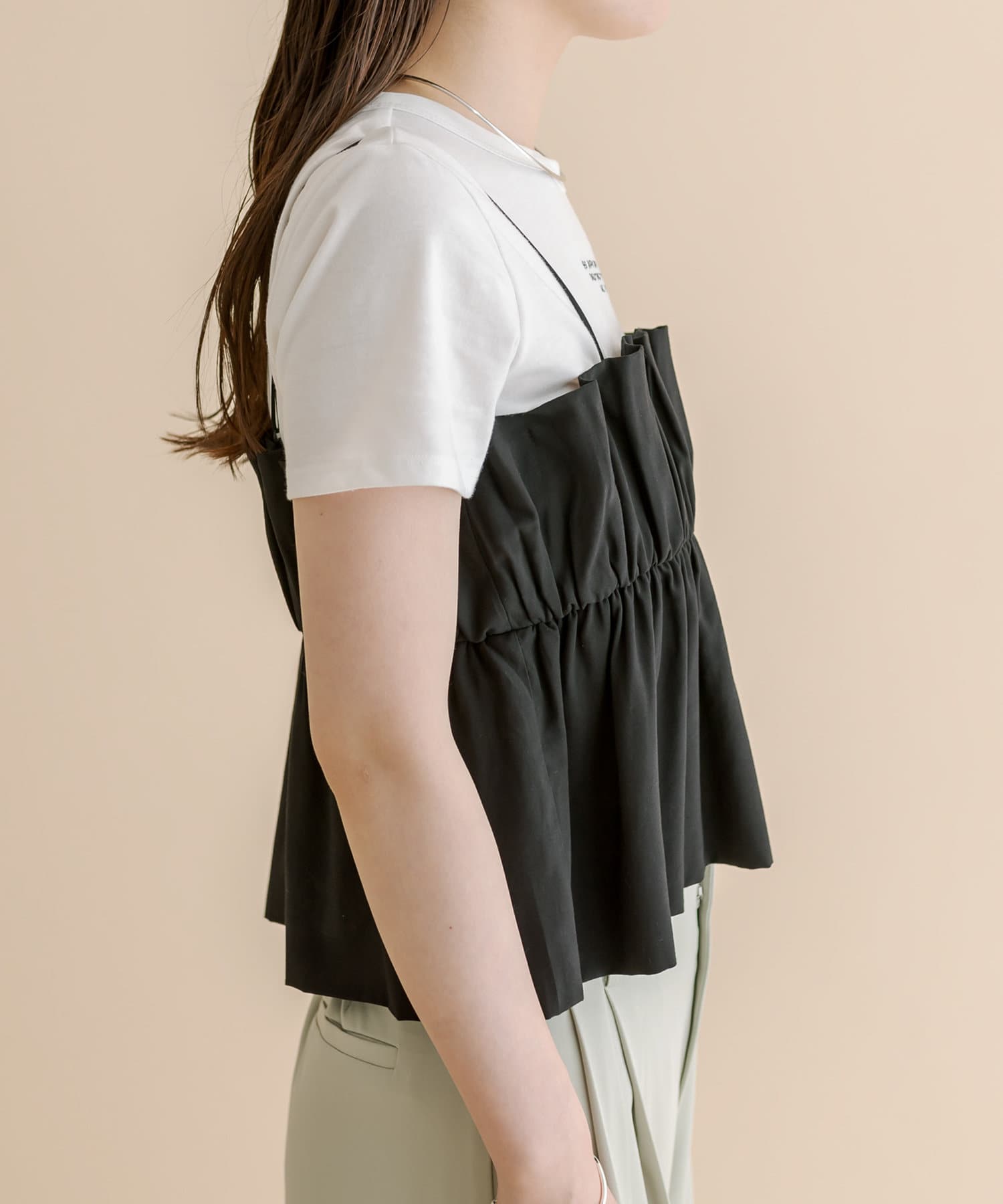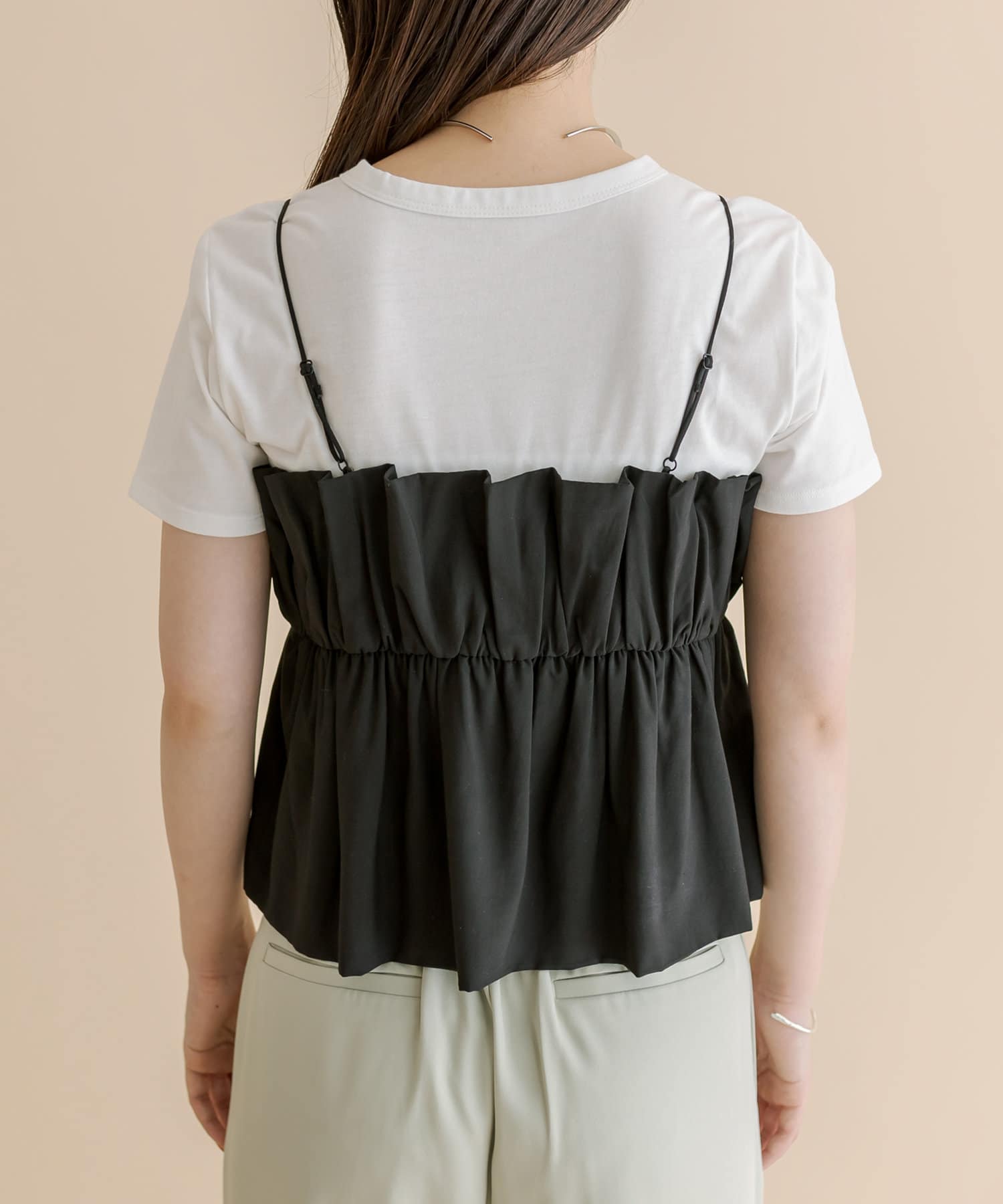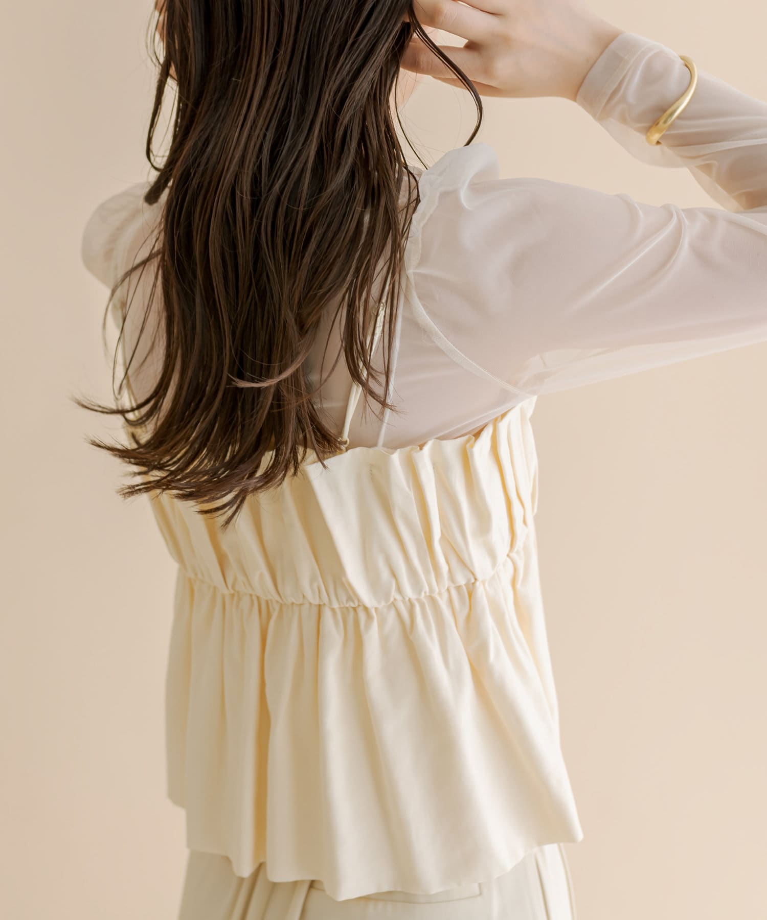 ・切り替え部分のギャザーがポイントになるキャミソール。