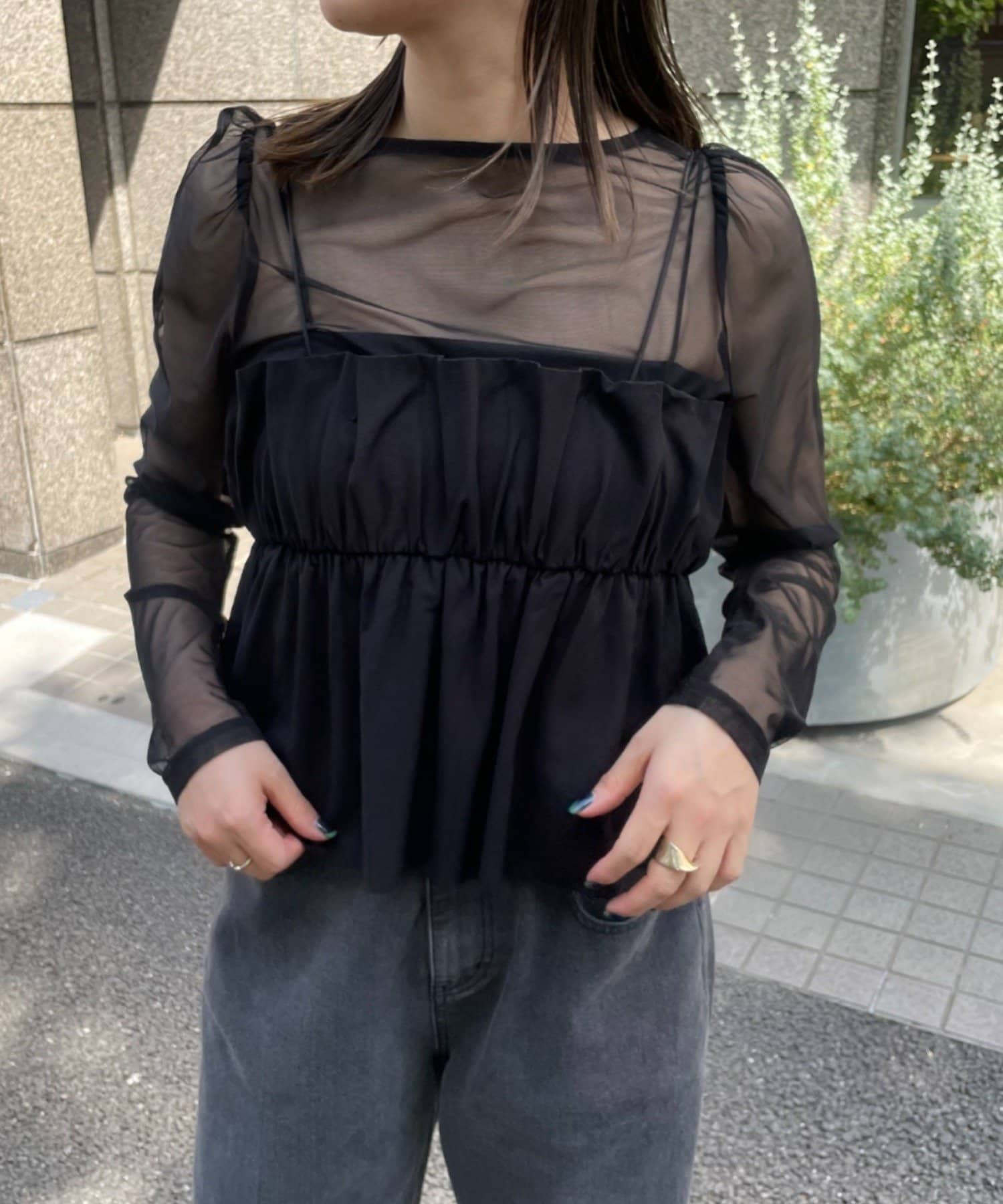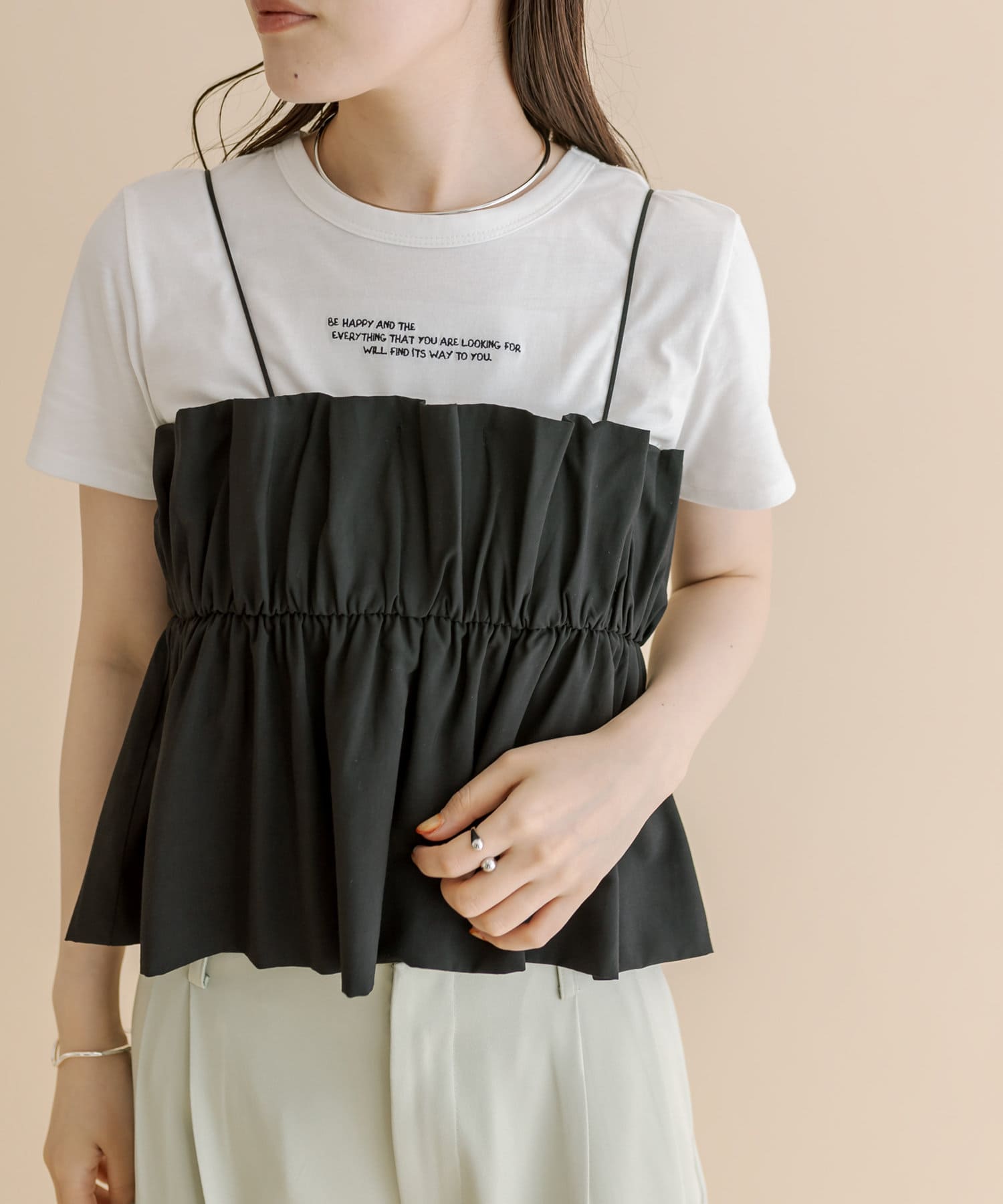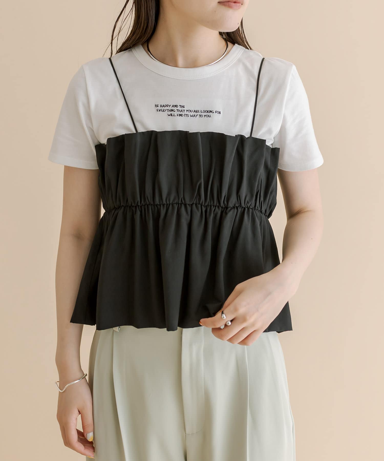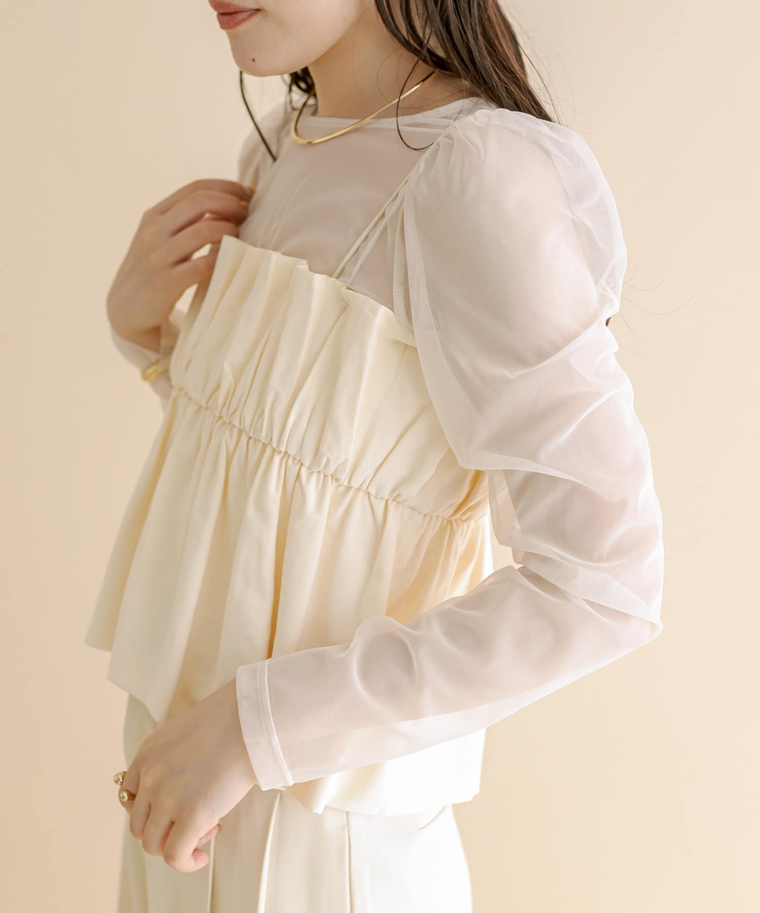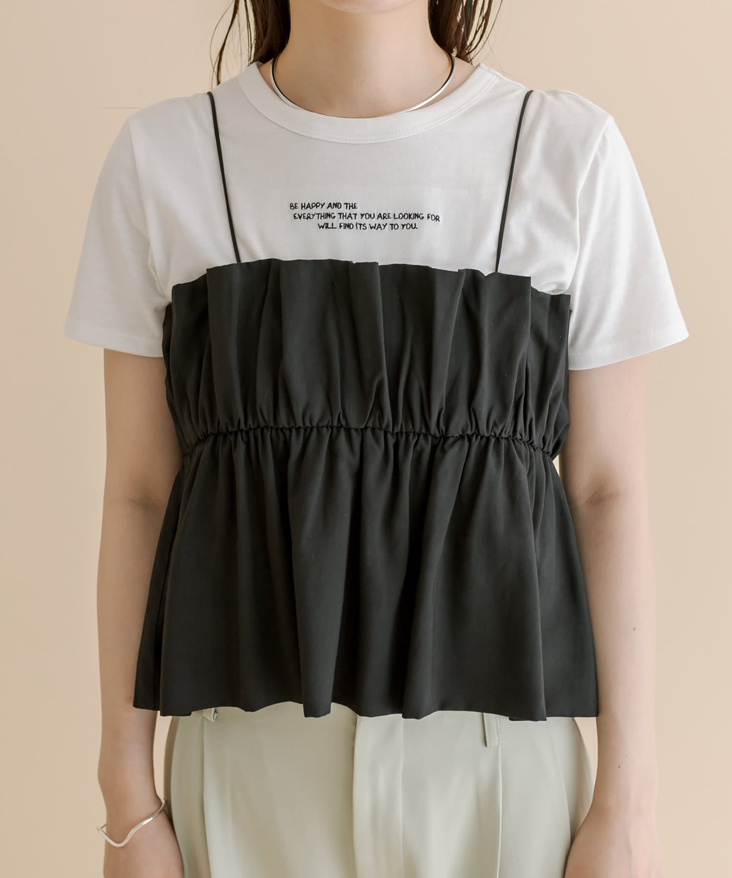 ・切り替え部分のギャザーがポイントになるキャミソール。