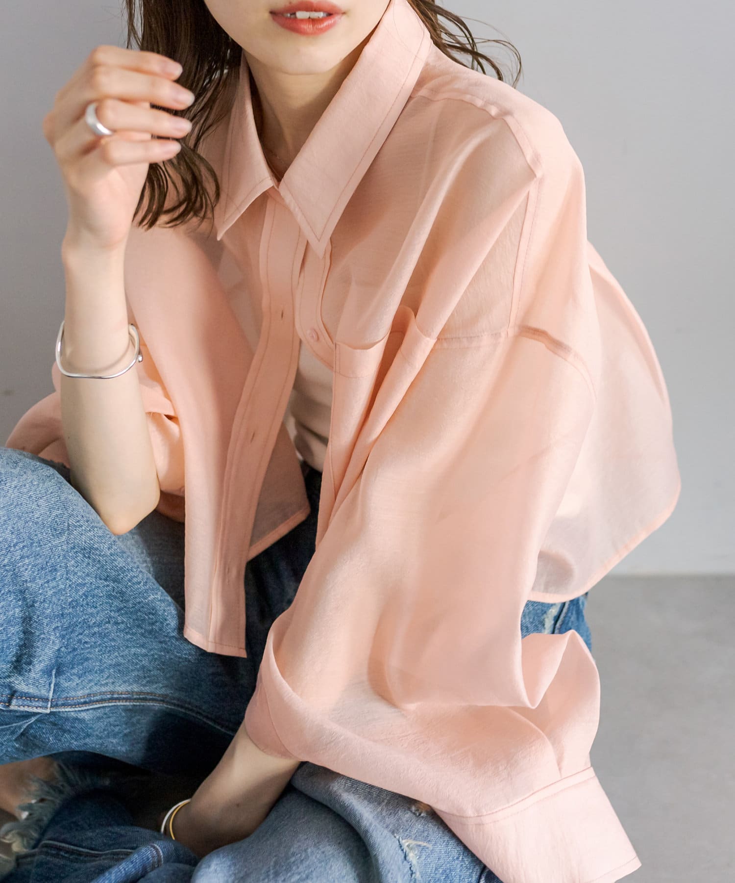 トレンド感のある生地がポイントの着回し抜群シアーシャツが登場!