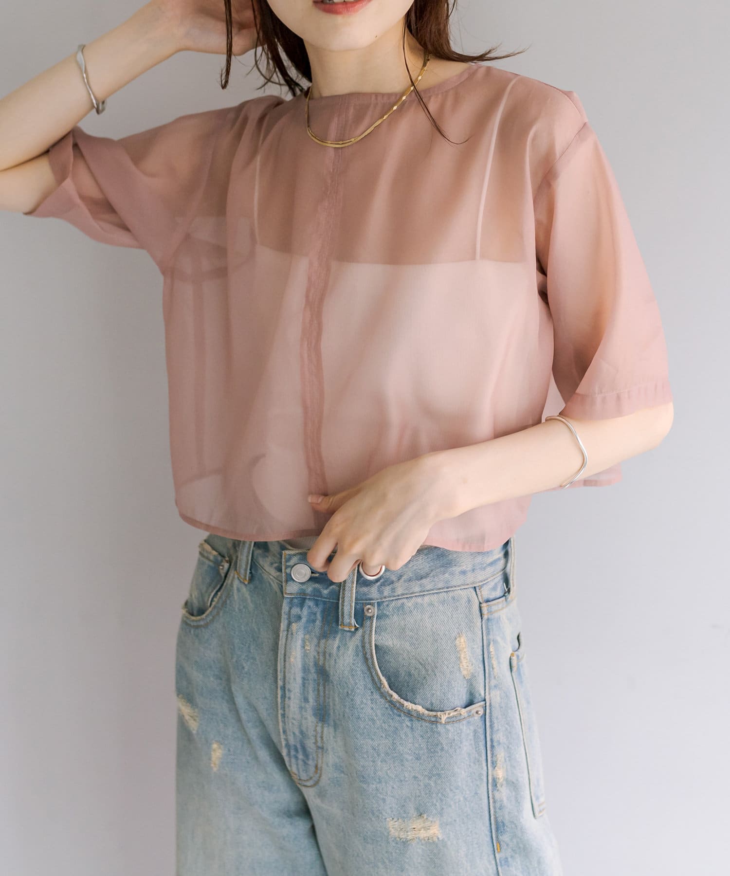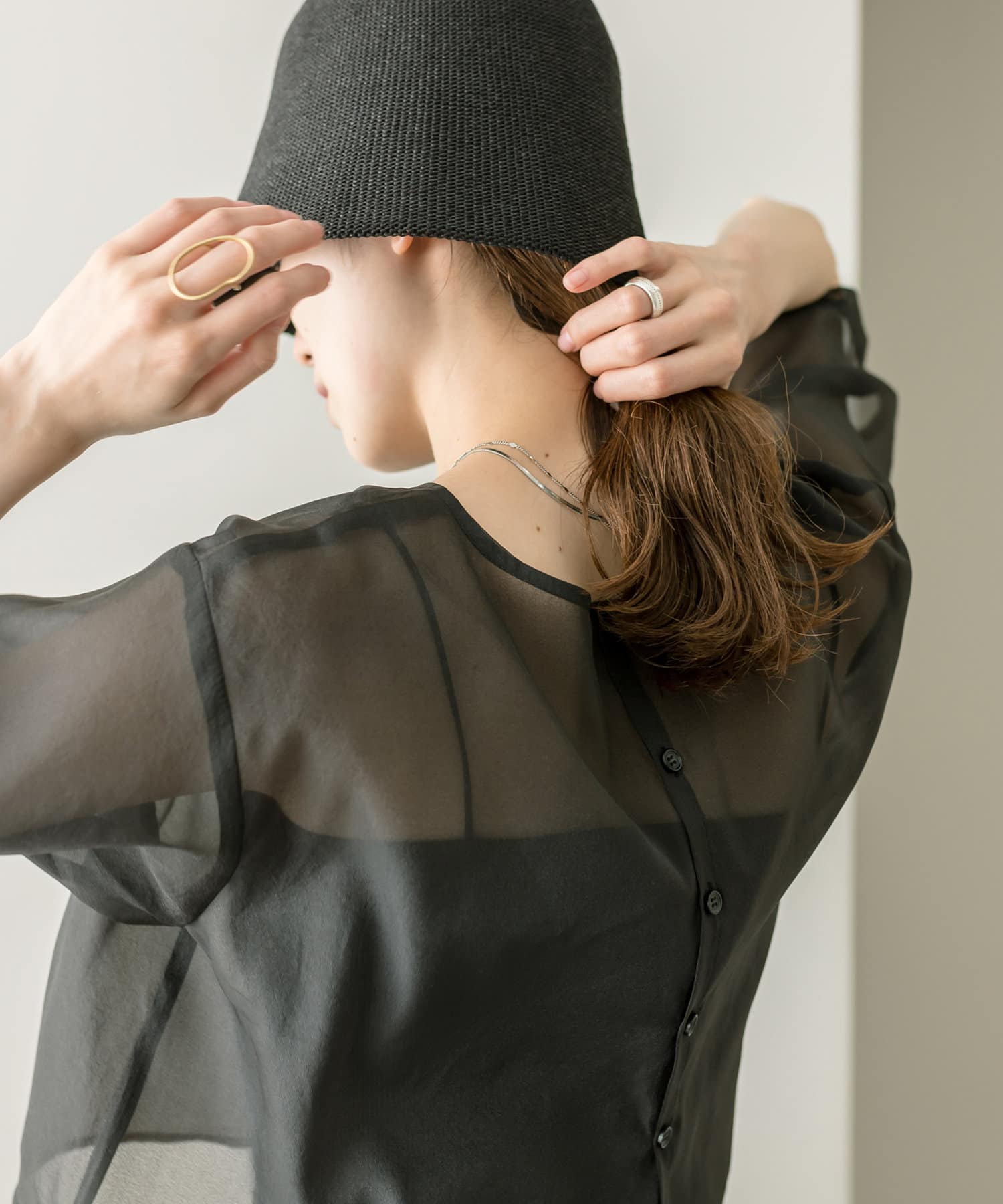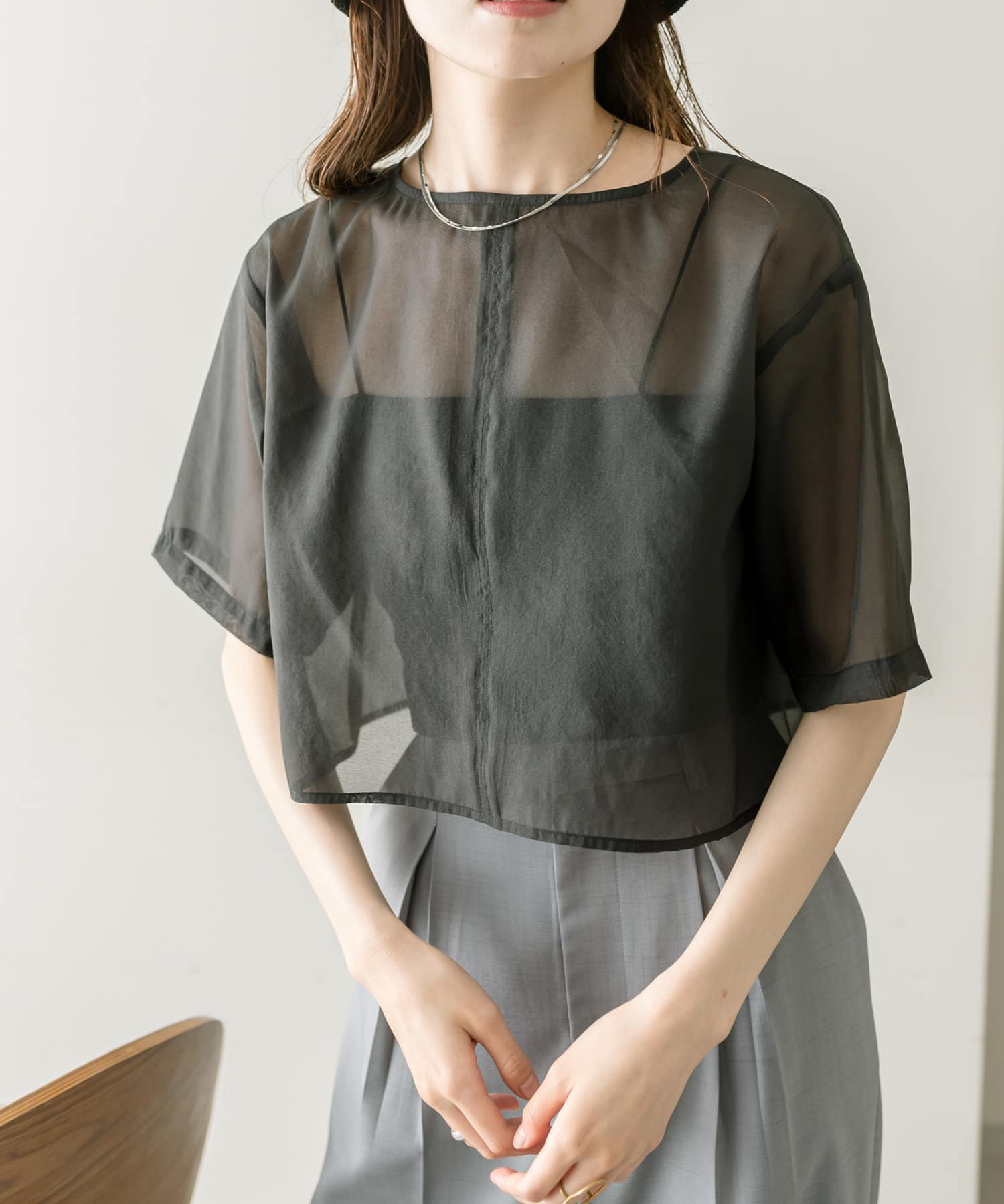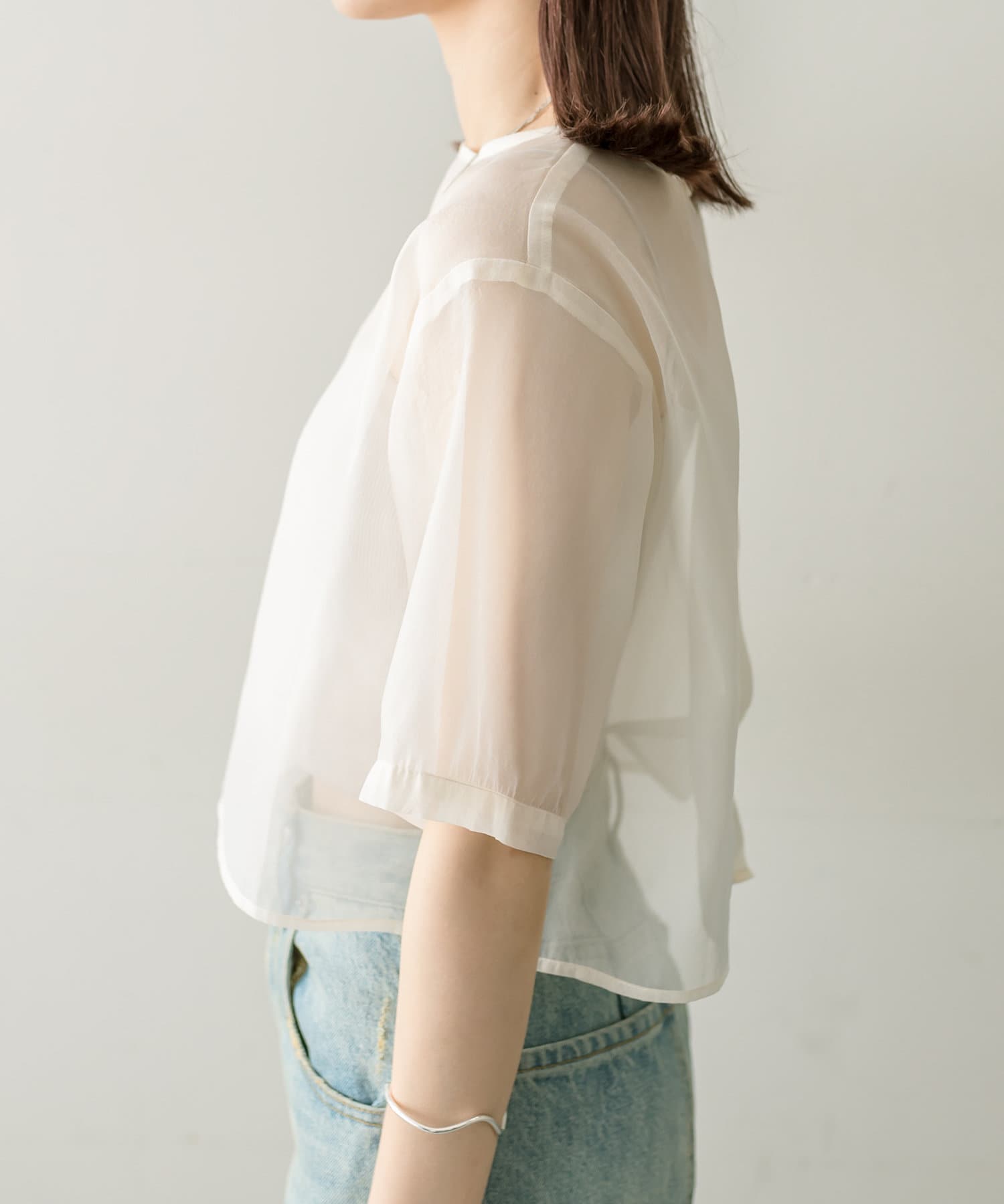 ・シアー感のあるオーガンジー素材が爽やかな雰囲気にしてくれるブラウス。
