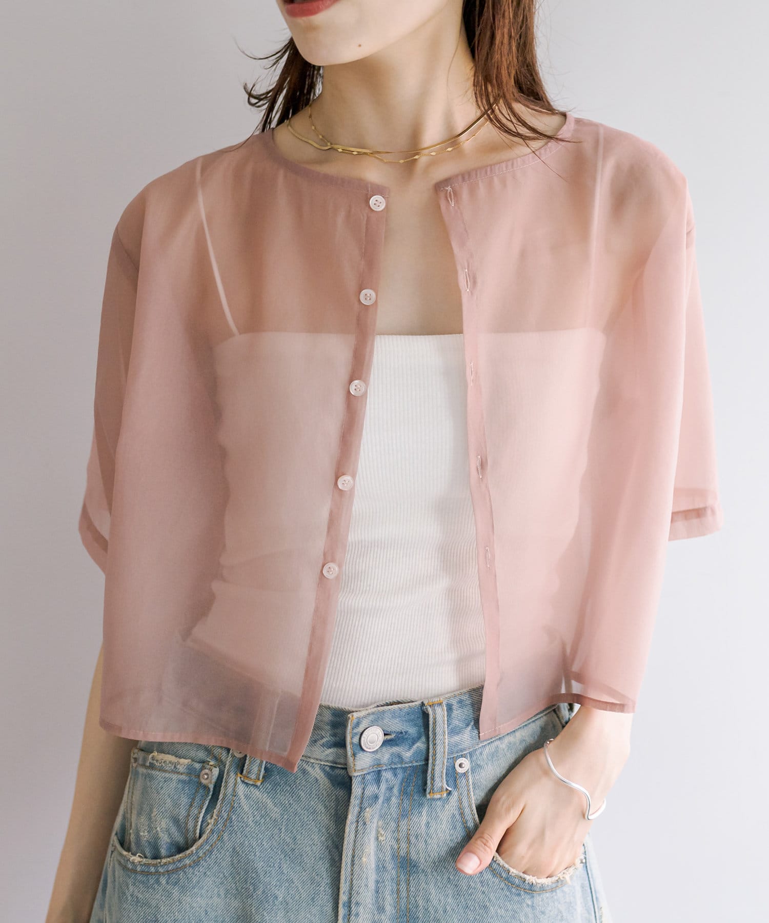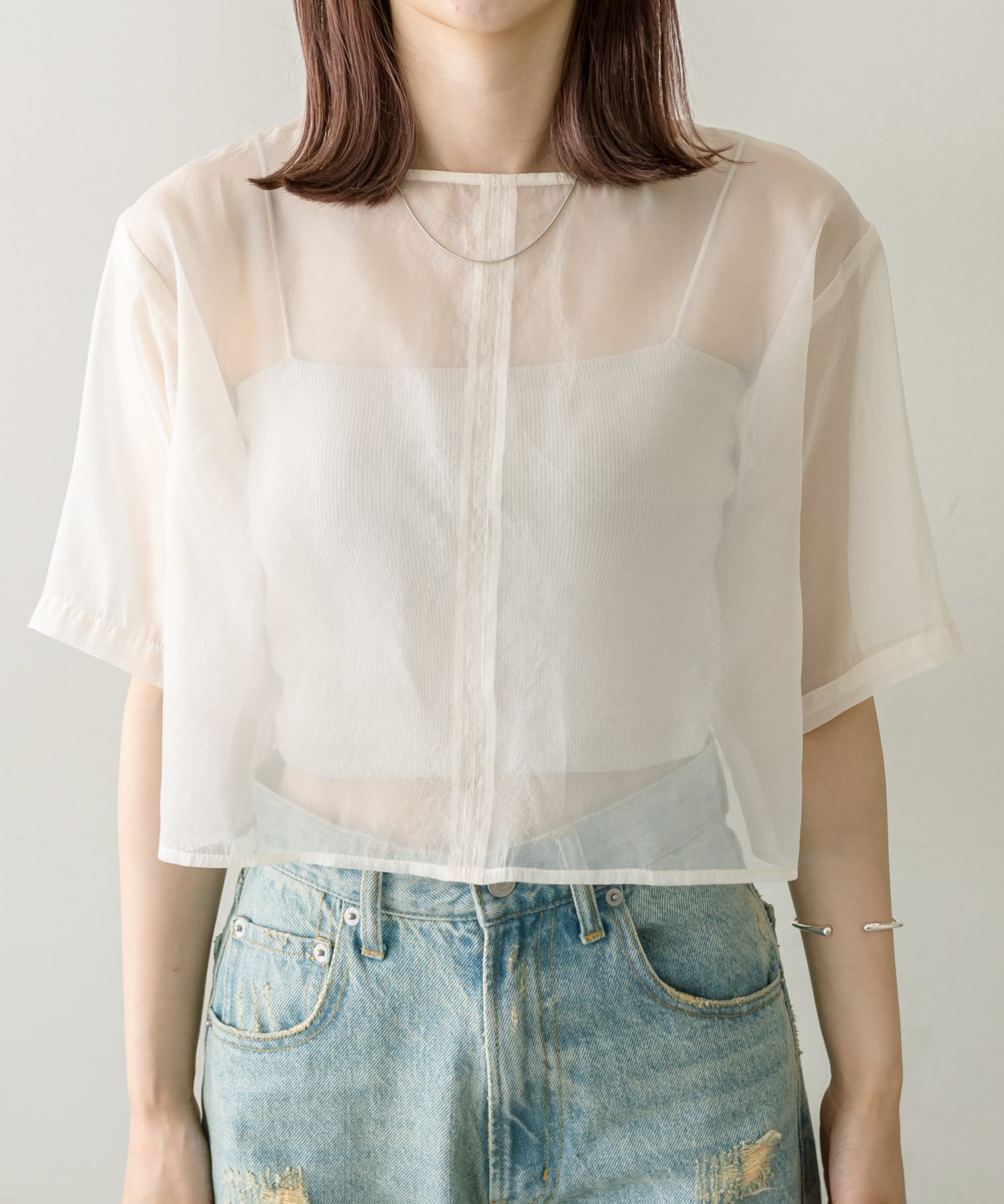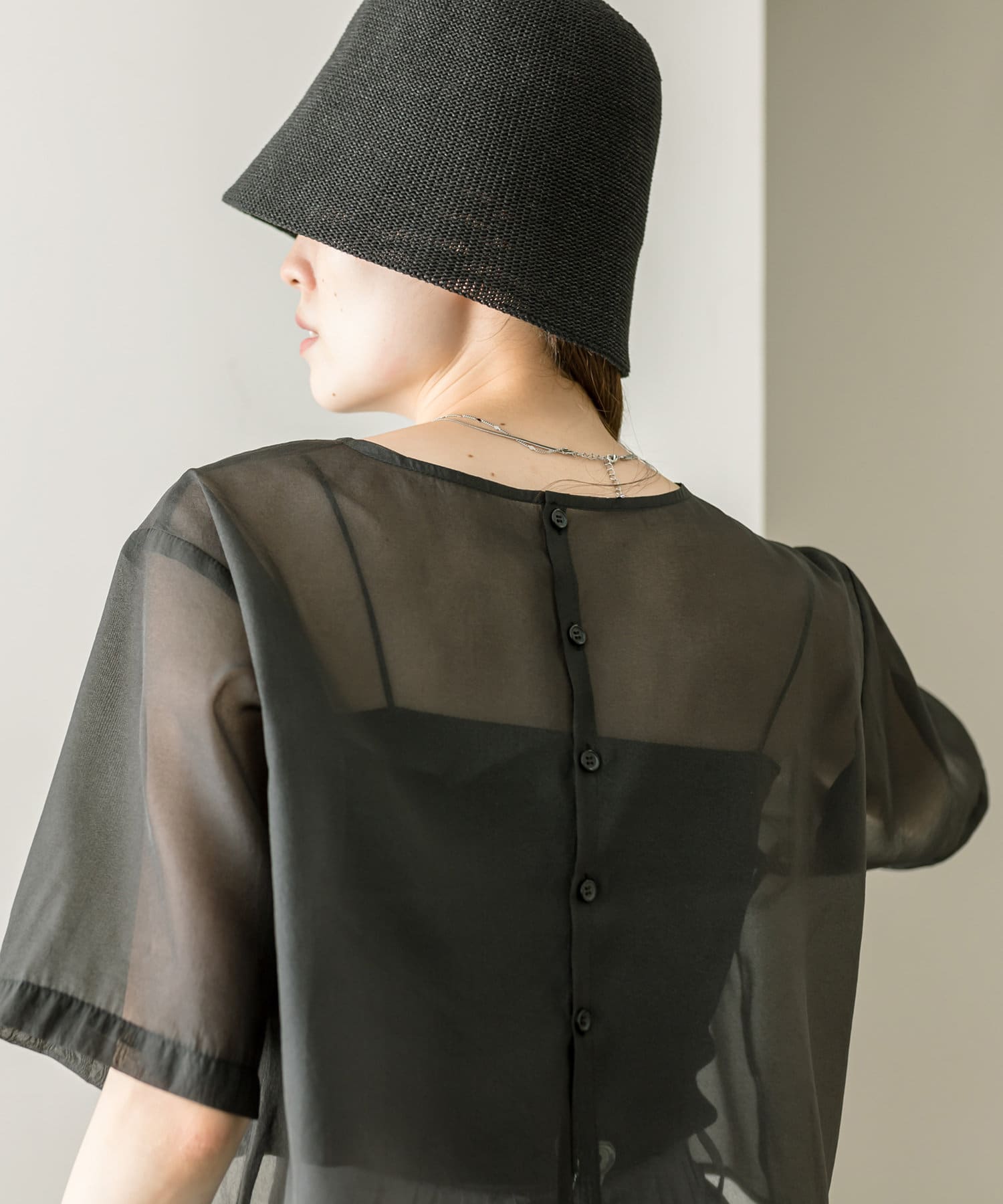 ・シアー感のあるオーガンジー素材が爽やかな雰囲気にしてくれるブラウス。