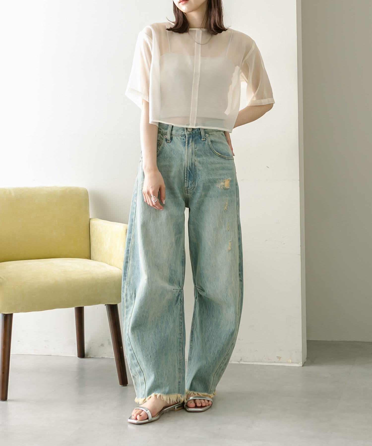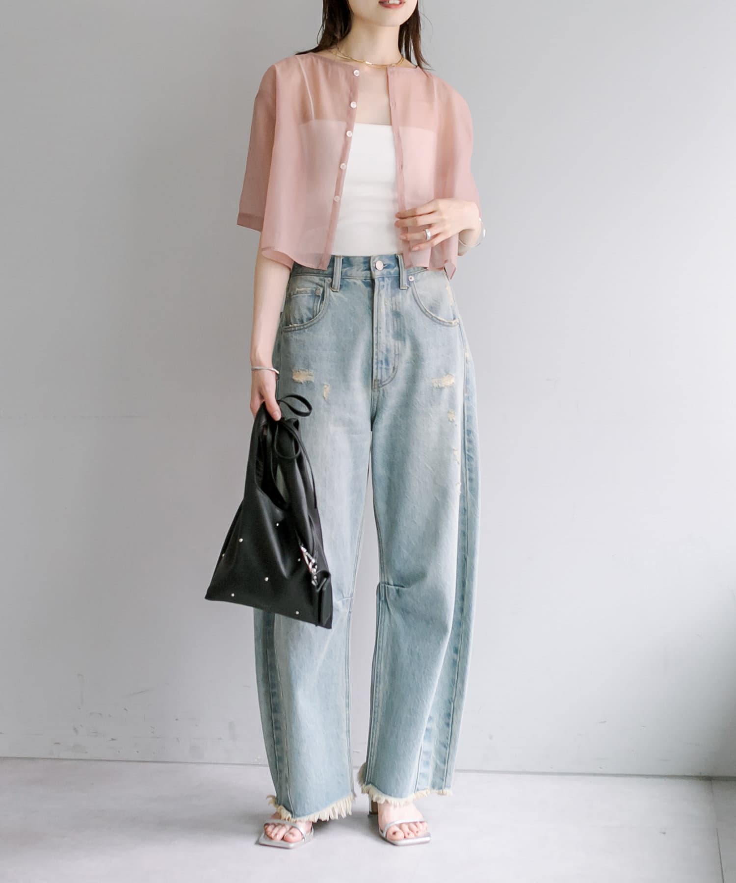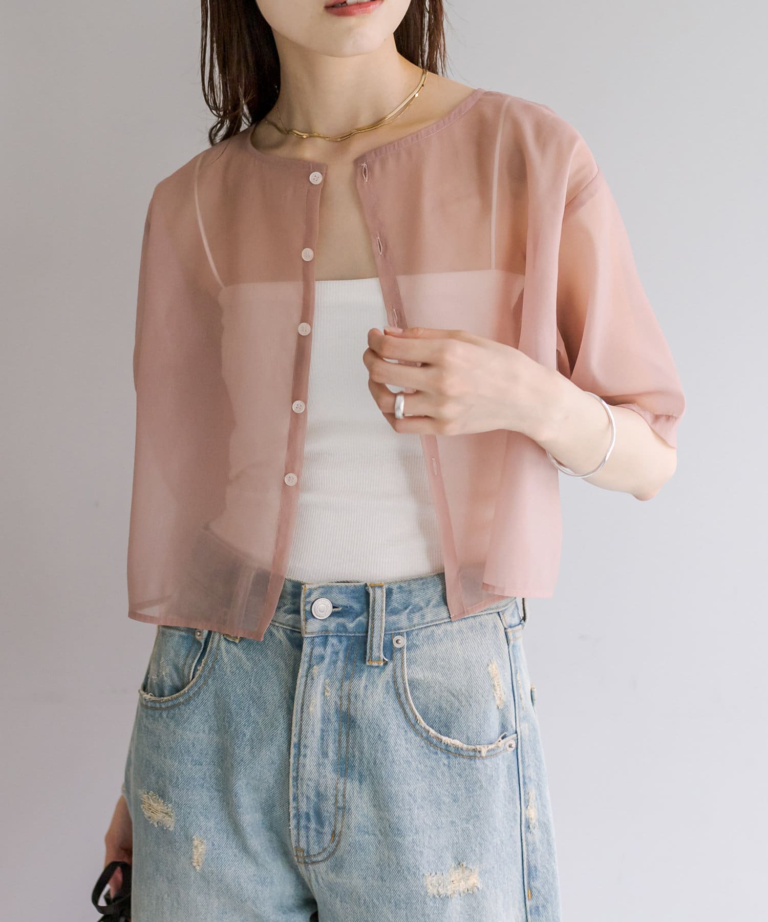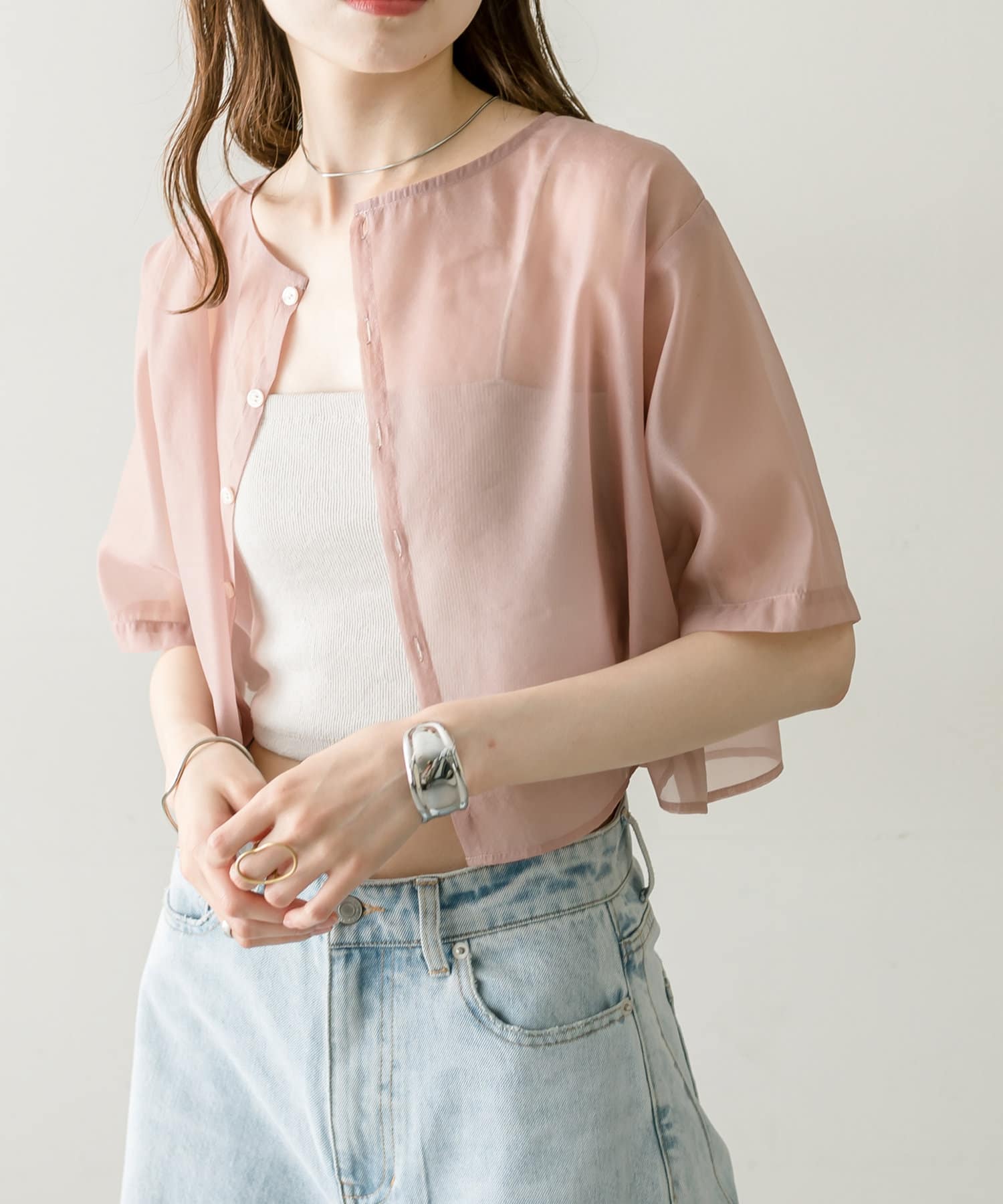 ・シアー感のあるオーガンジー素材が爽やかな雰囲気にしてくれるブラウス。