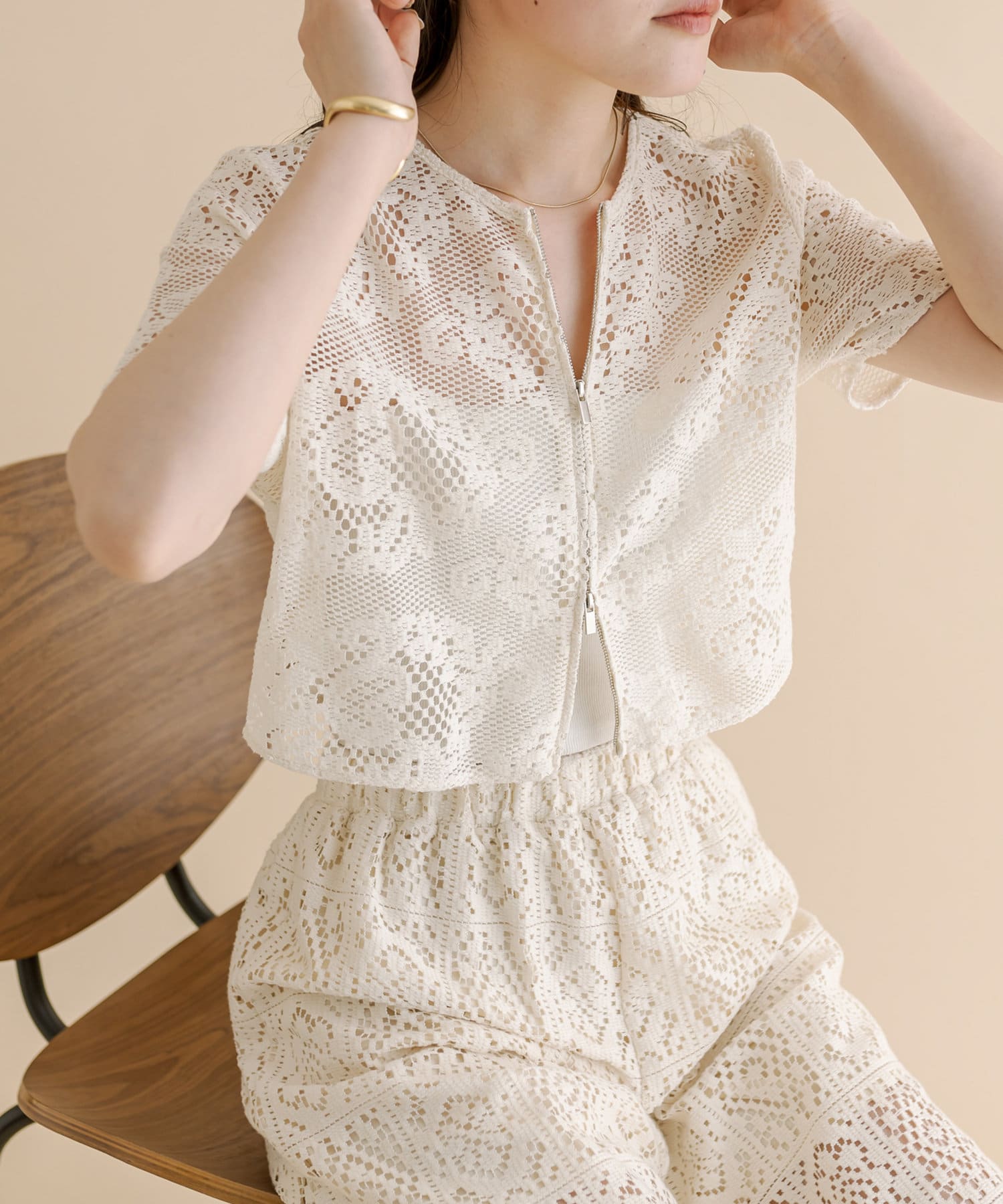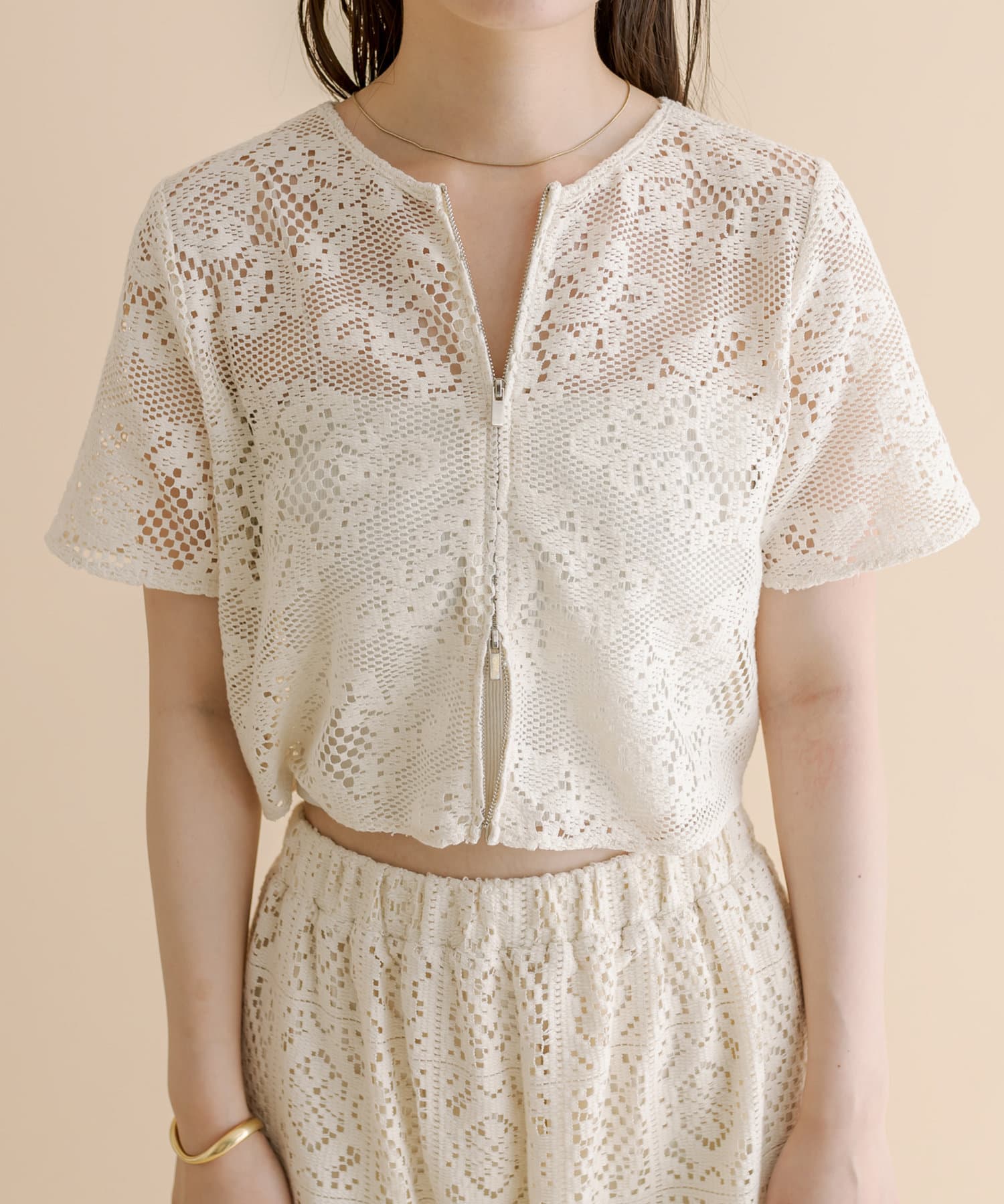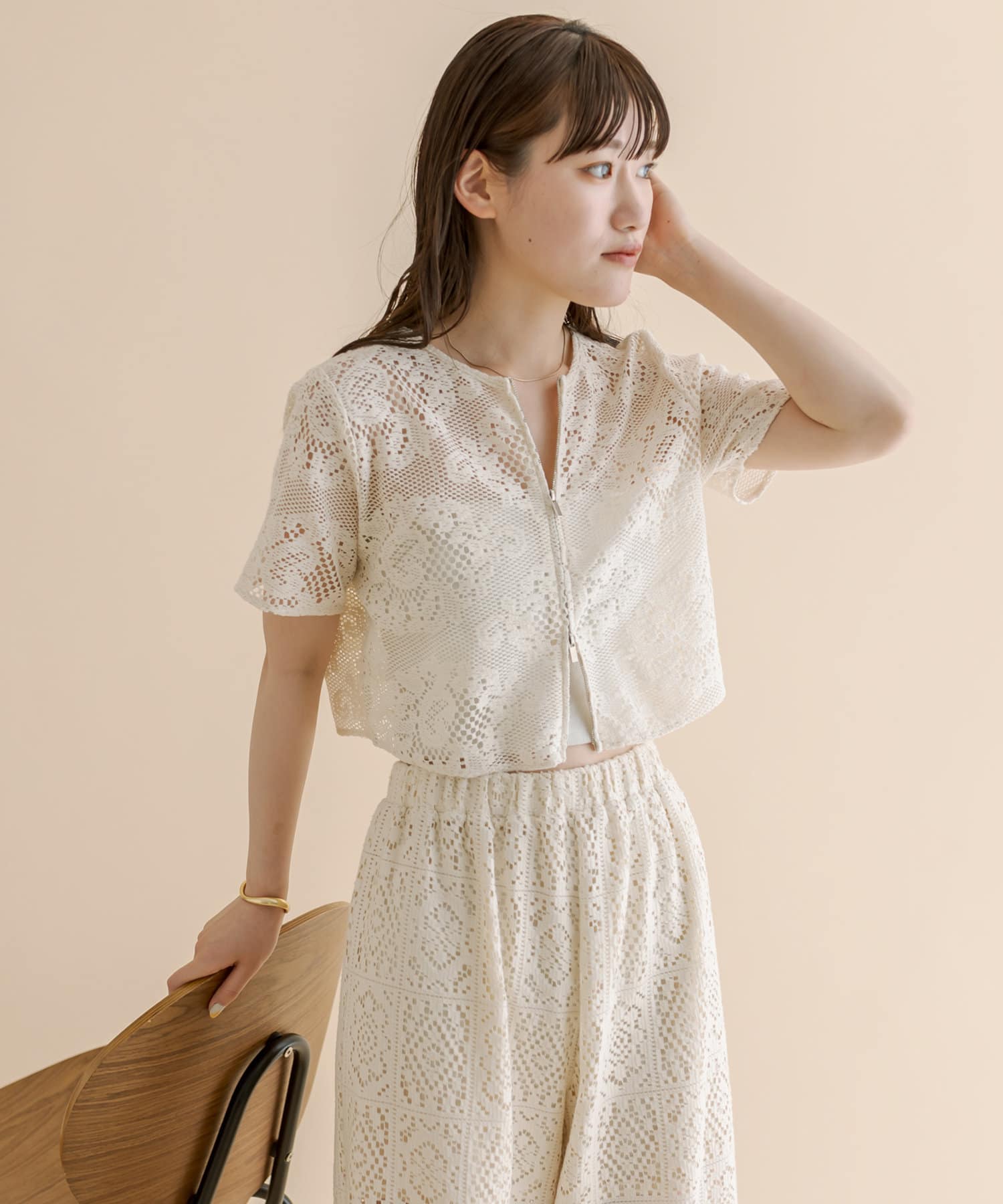 ・同じレース素材のボトムと合わせることでセットアップ風に着用していただけます。