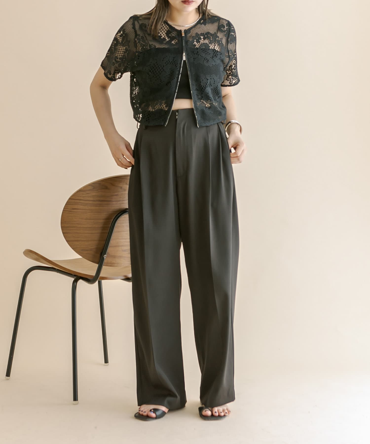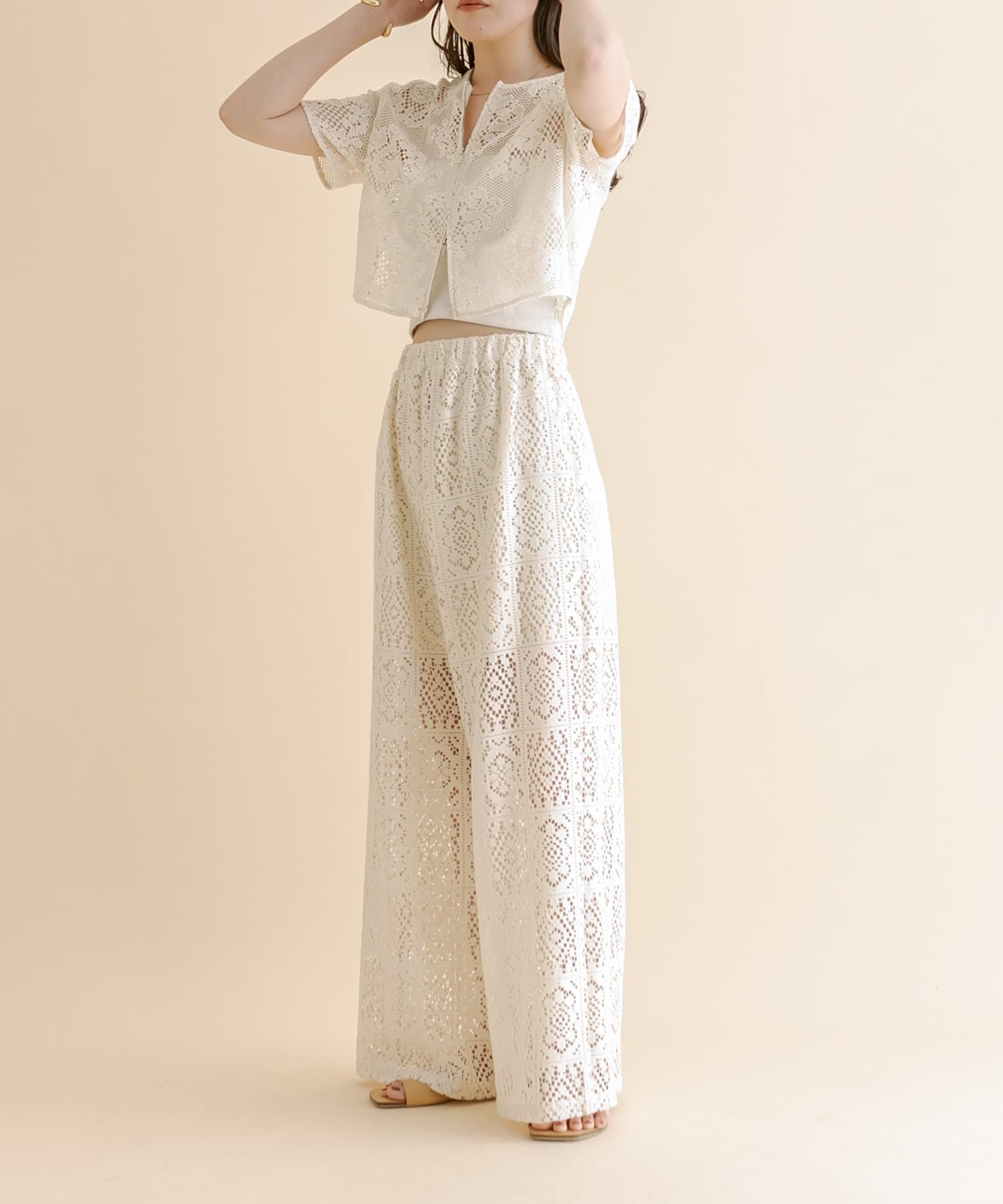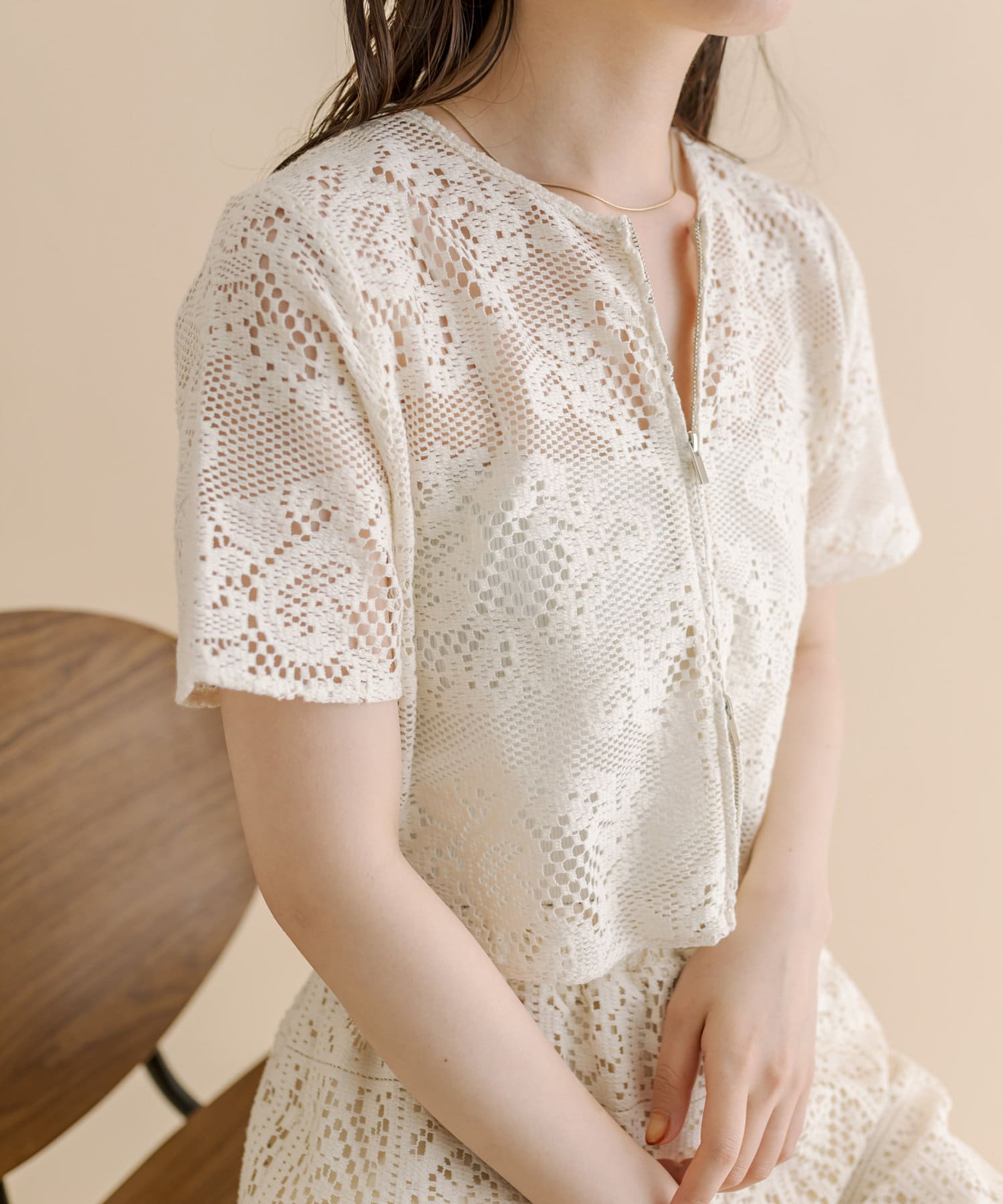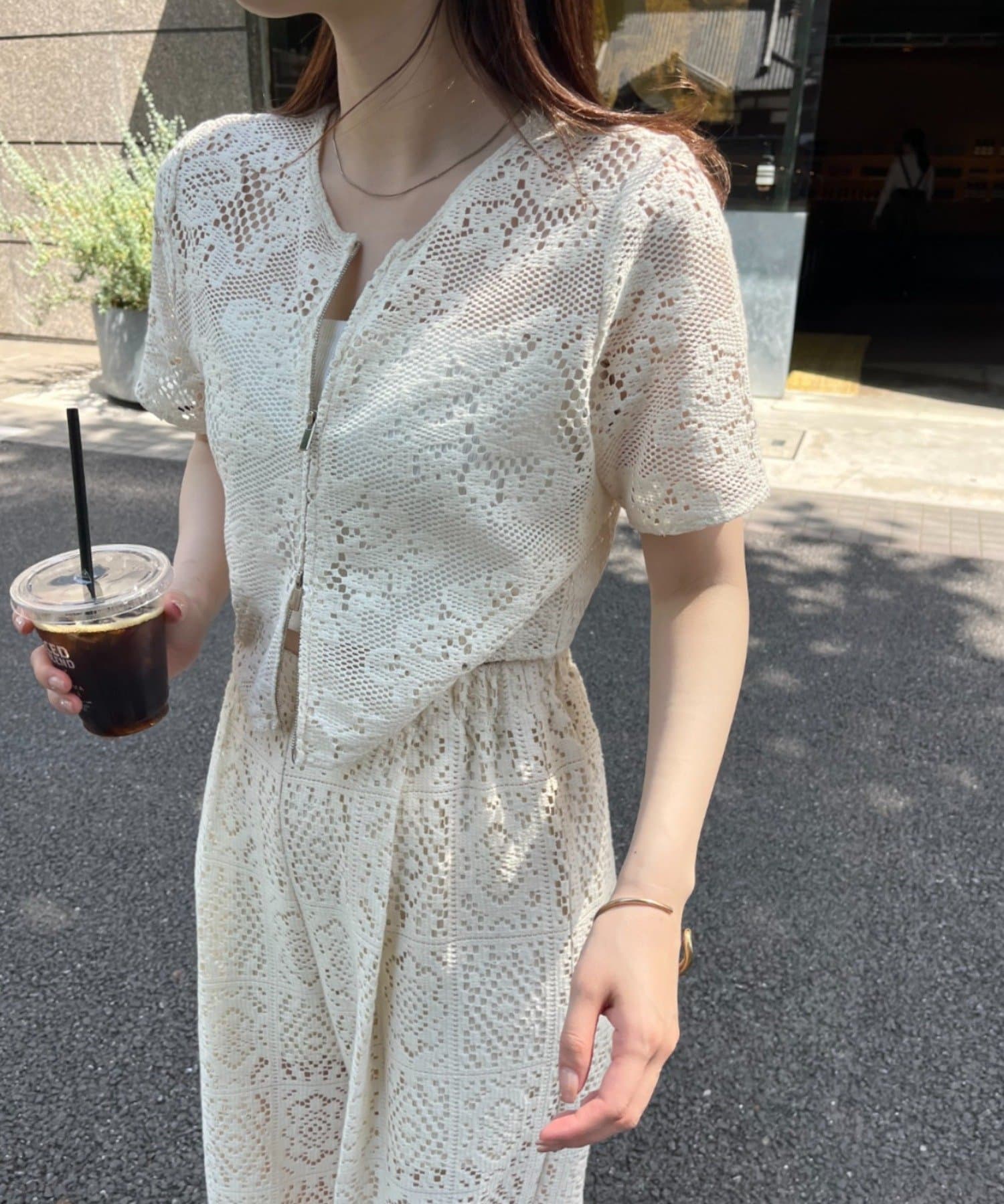 ・同じレース素材のボトムと合わせることでセットアップ風に着用していただけます。