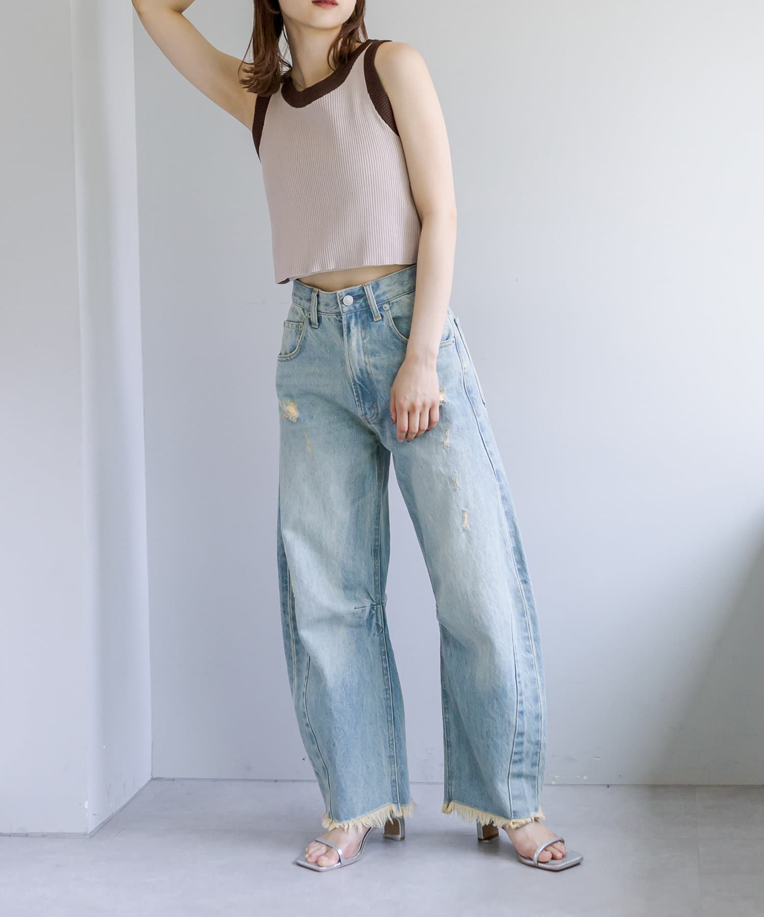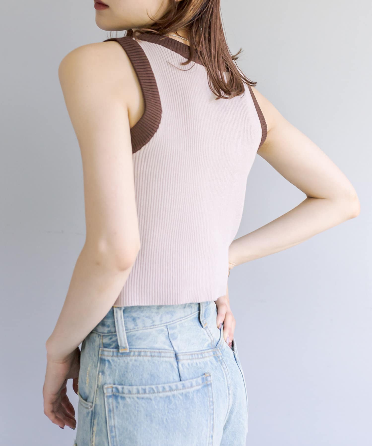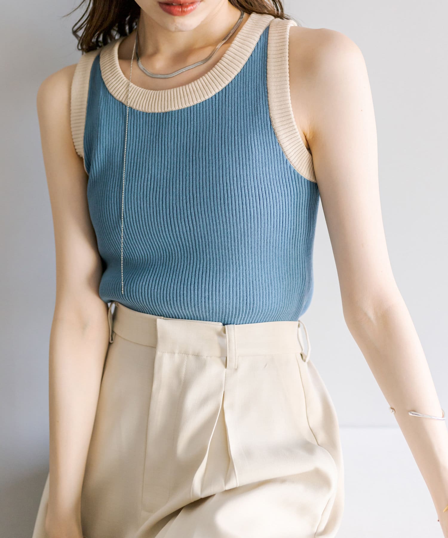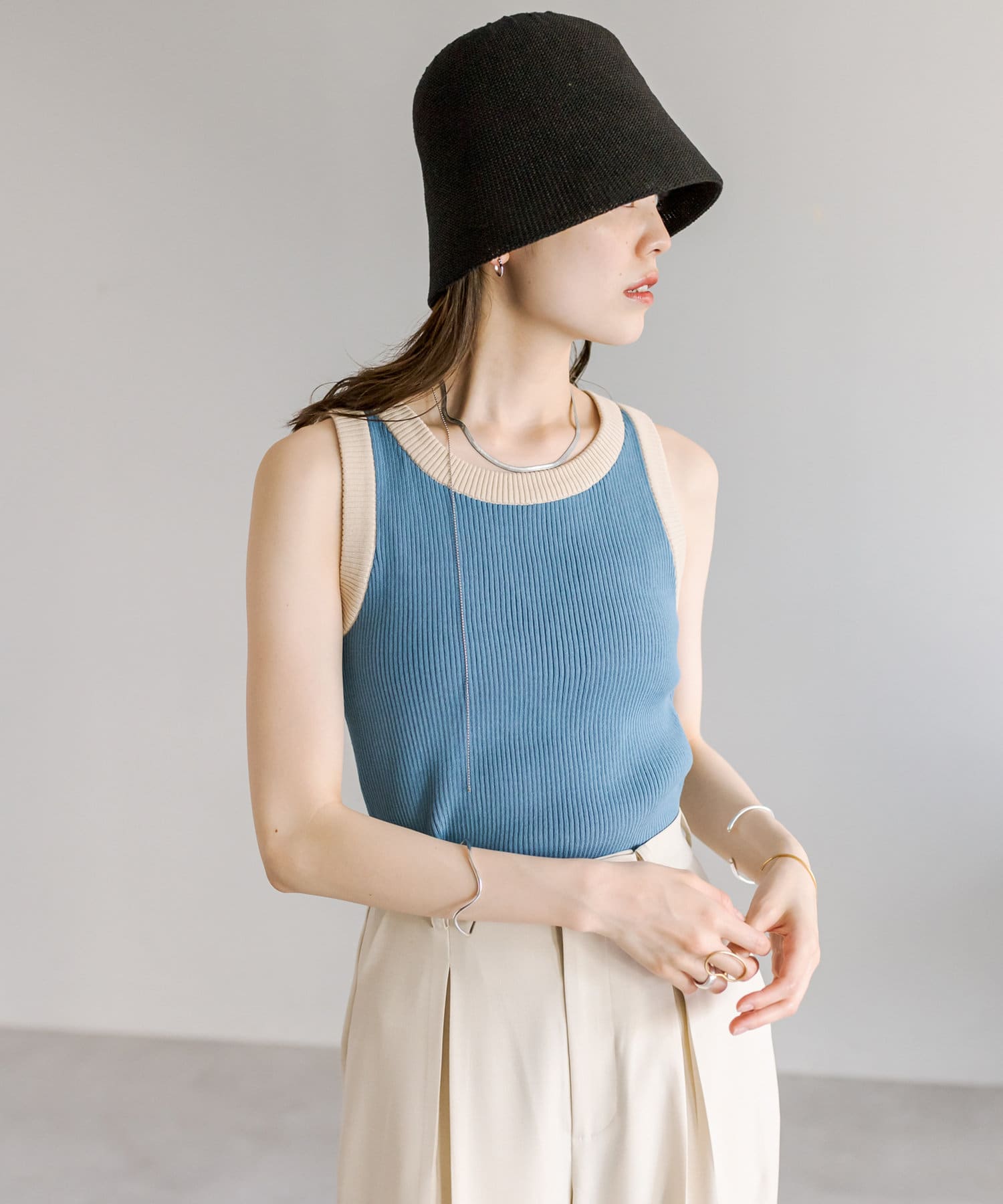 購入場所:店舗配色ニットタンクトップのブルーと色違いで購入しました。シンプルかつおしゃれなデザインでお気に入りです。