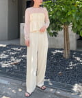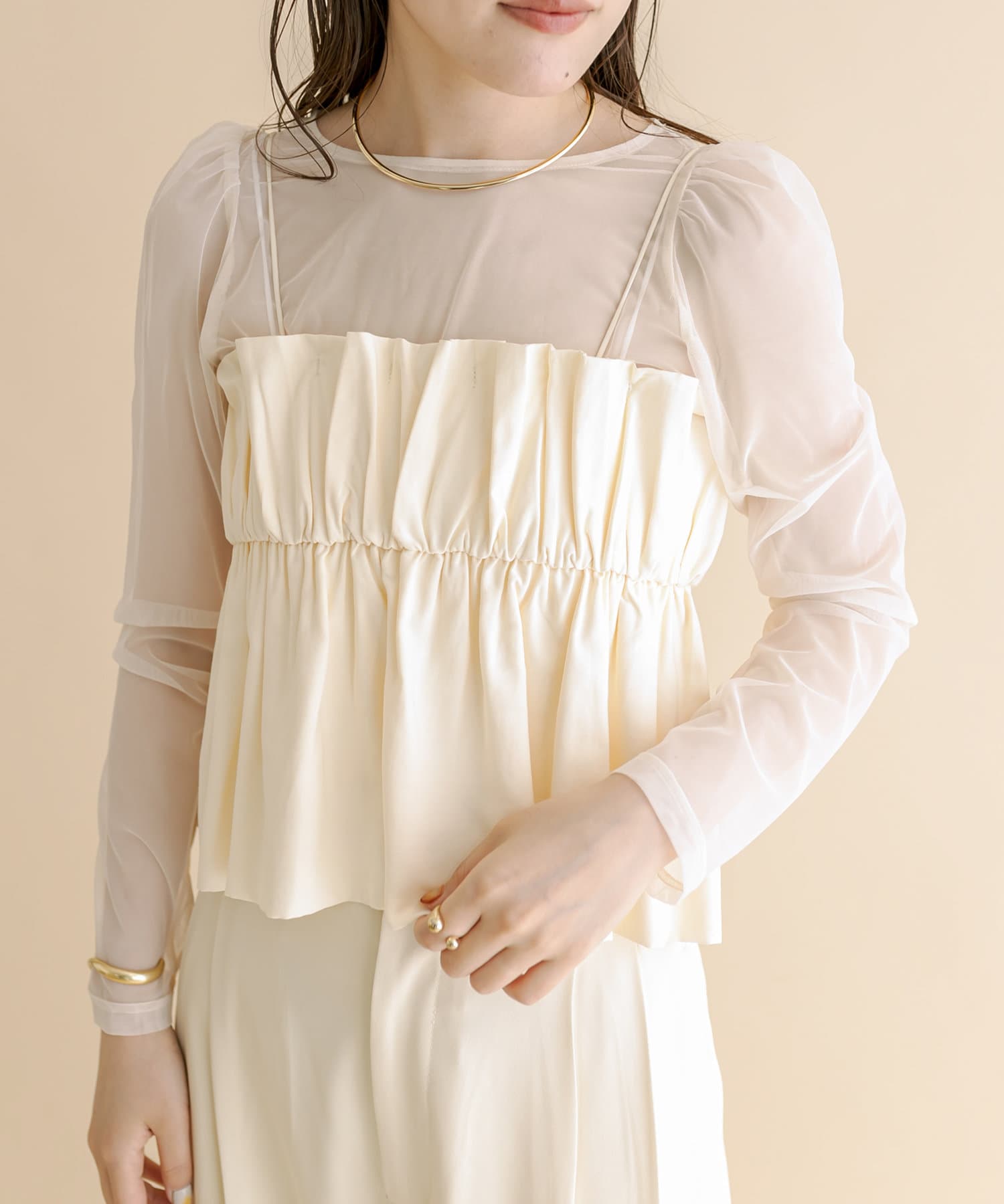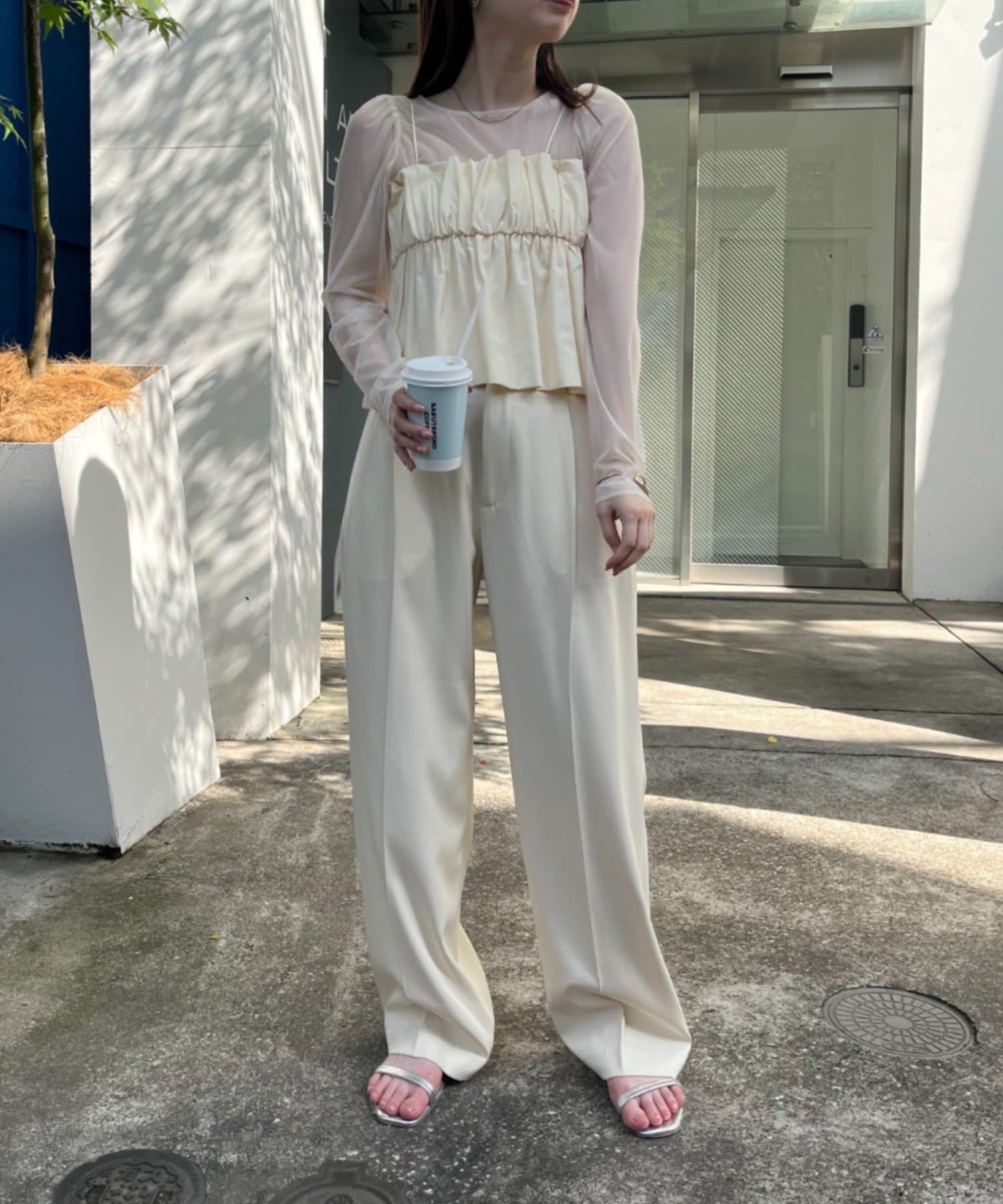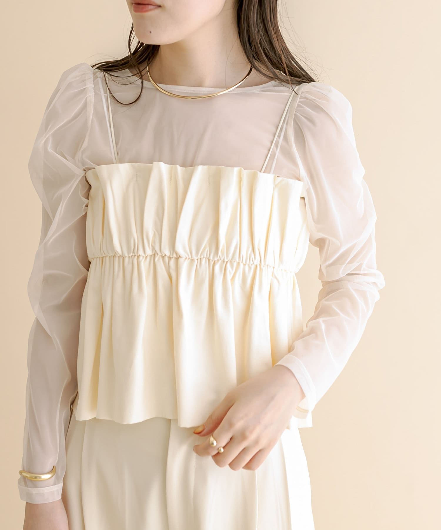 ・キャミソールやビスチェを重ねた綺麗めなスタイルがおすすめ。