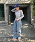 ・デニム生地のボトムと合わせればカジュアルな雰囲気でも◎