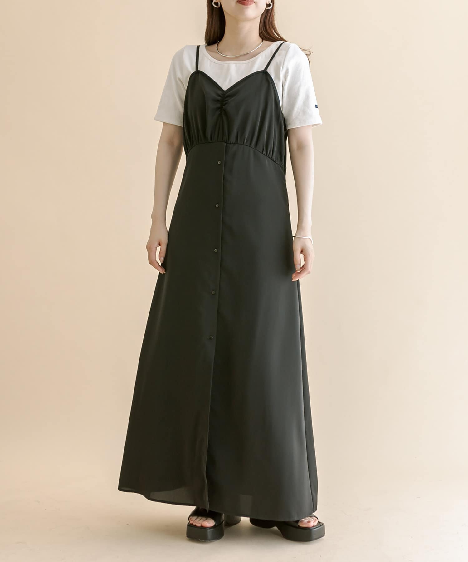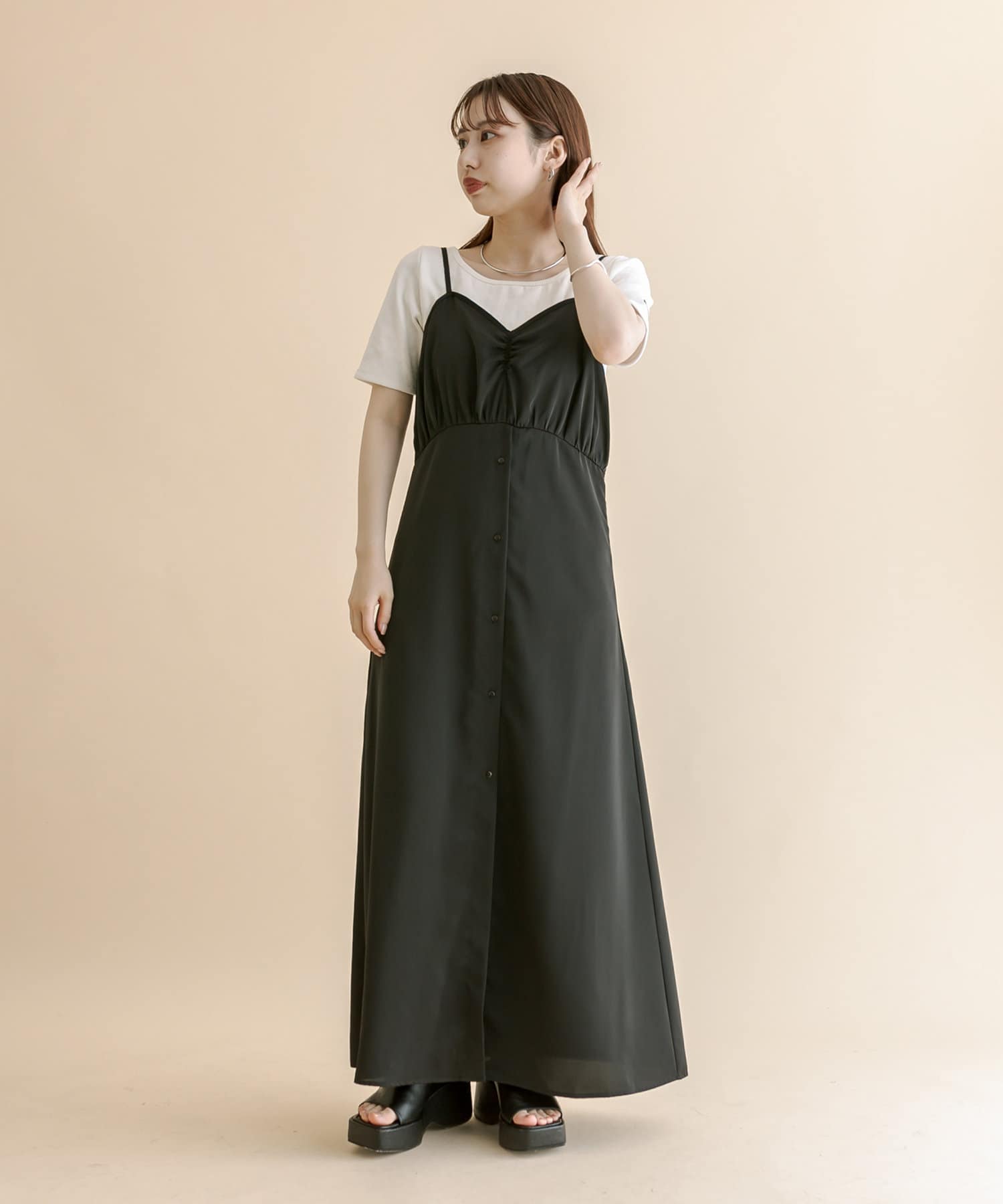 ・一枚でスタイリングを華やかに見せてくれるキャミワンピース。
