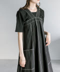 ・生地と異なるカラーのステッチがポイントのジャンパースカート。