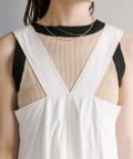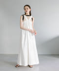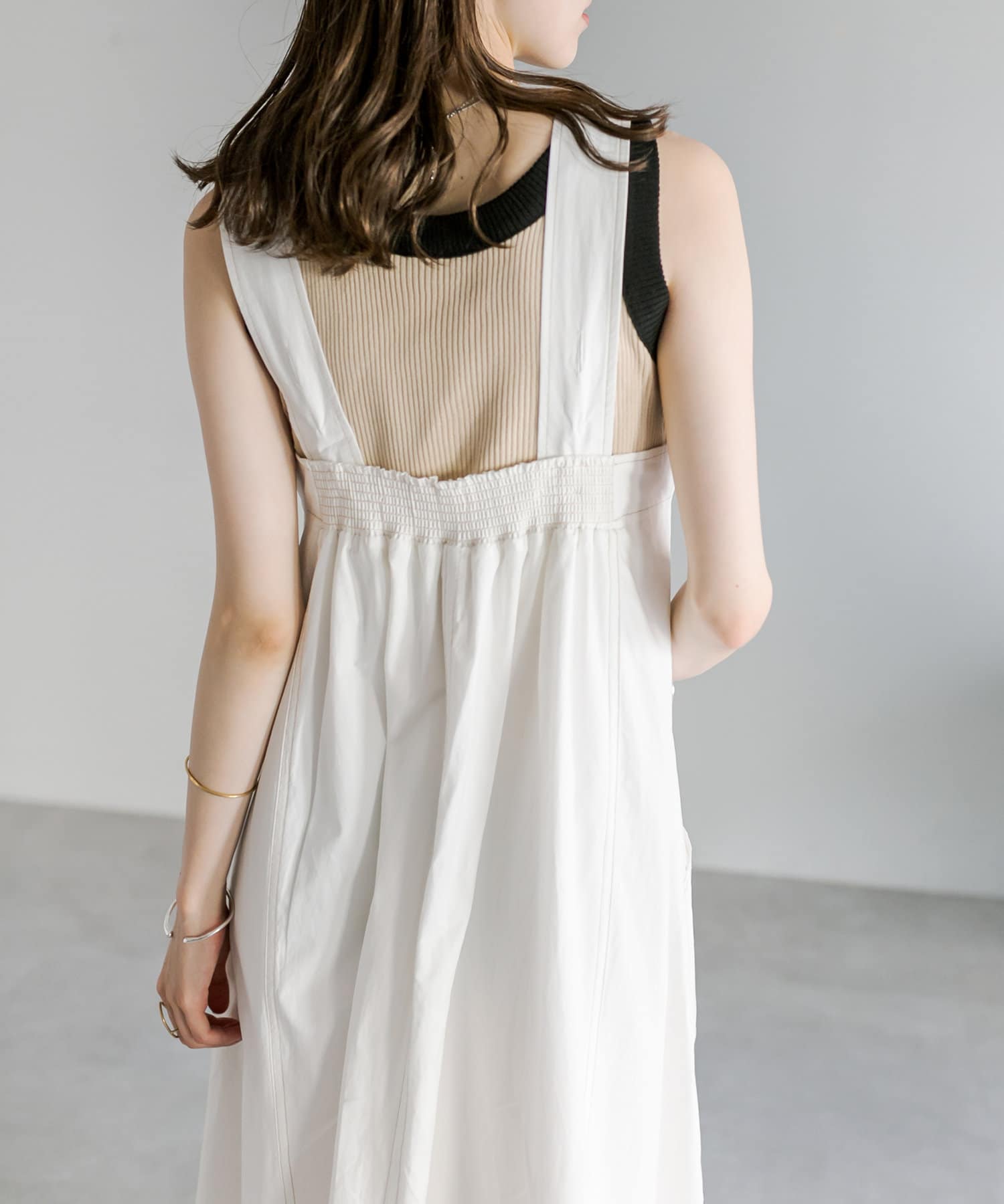 ・生地と異なるカラーのステッチがポイントのジャンパースカート。