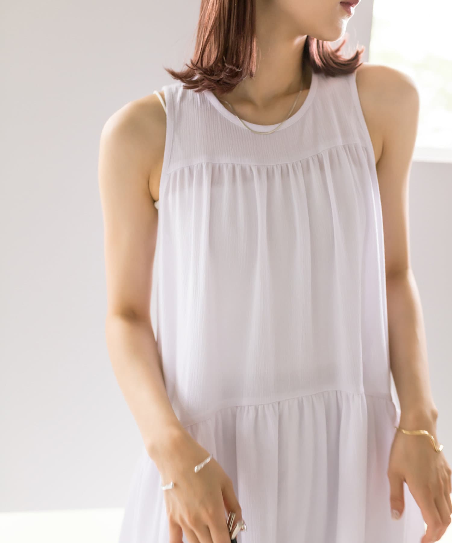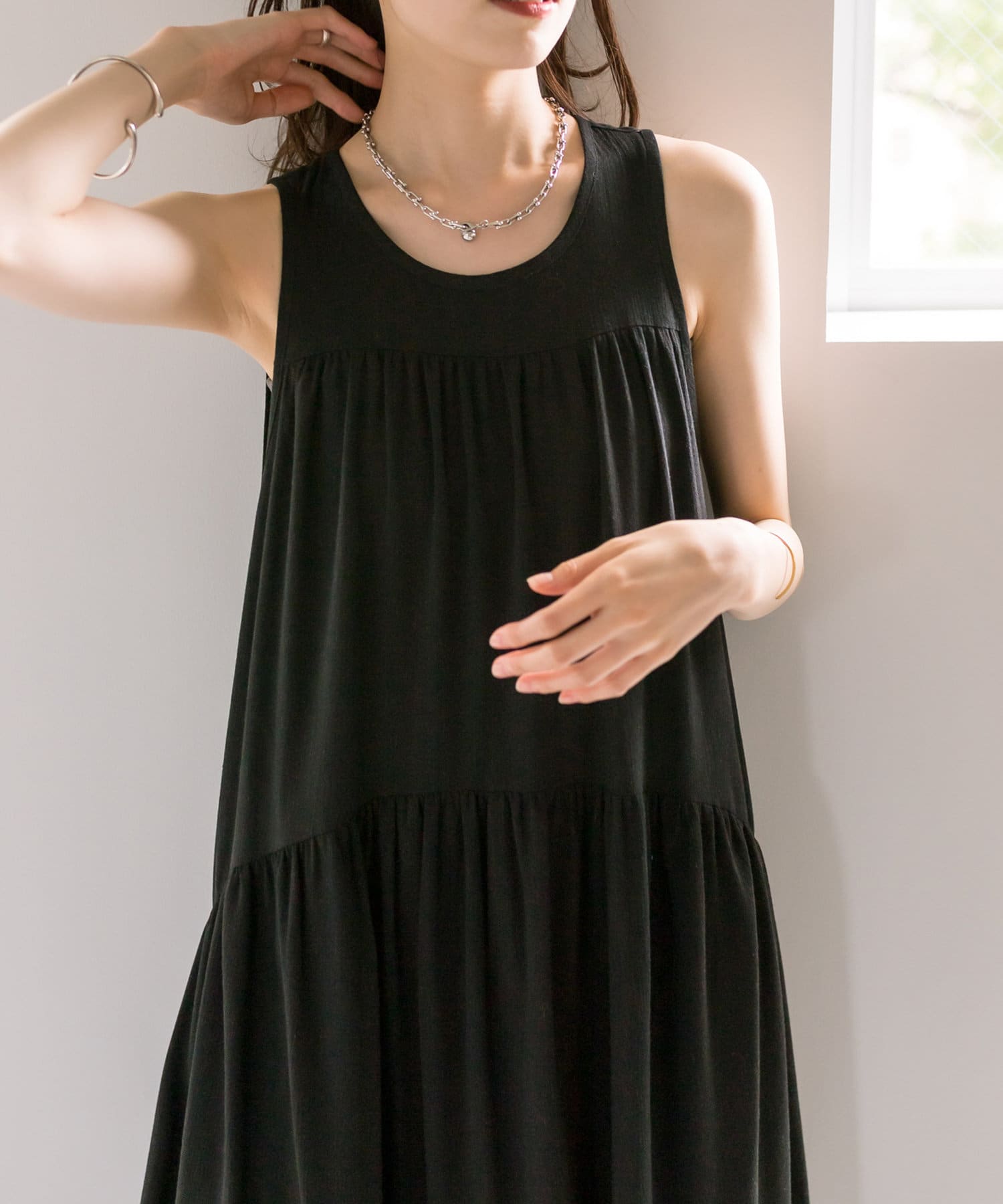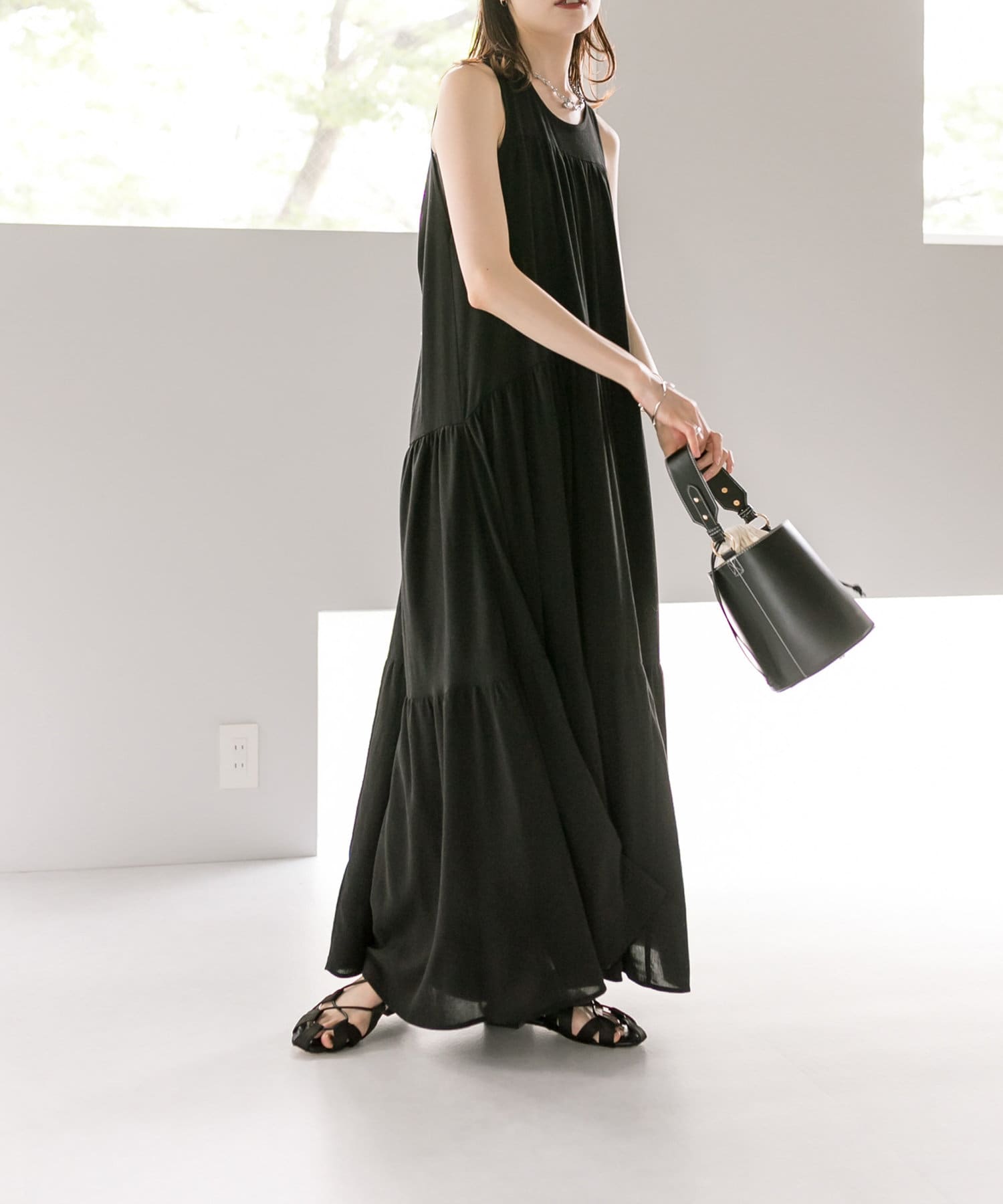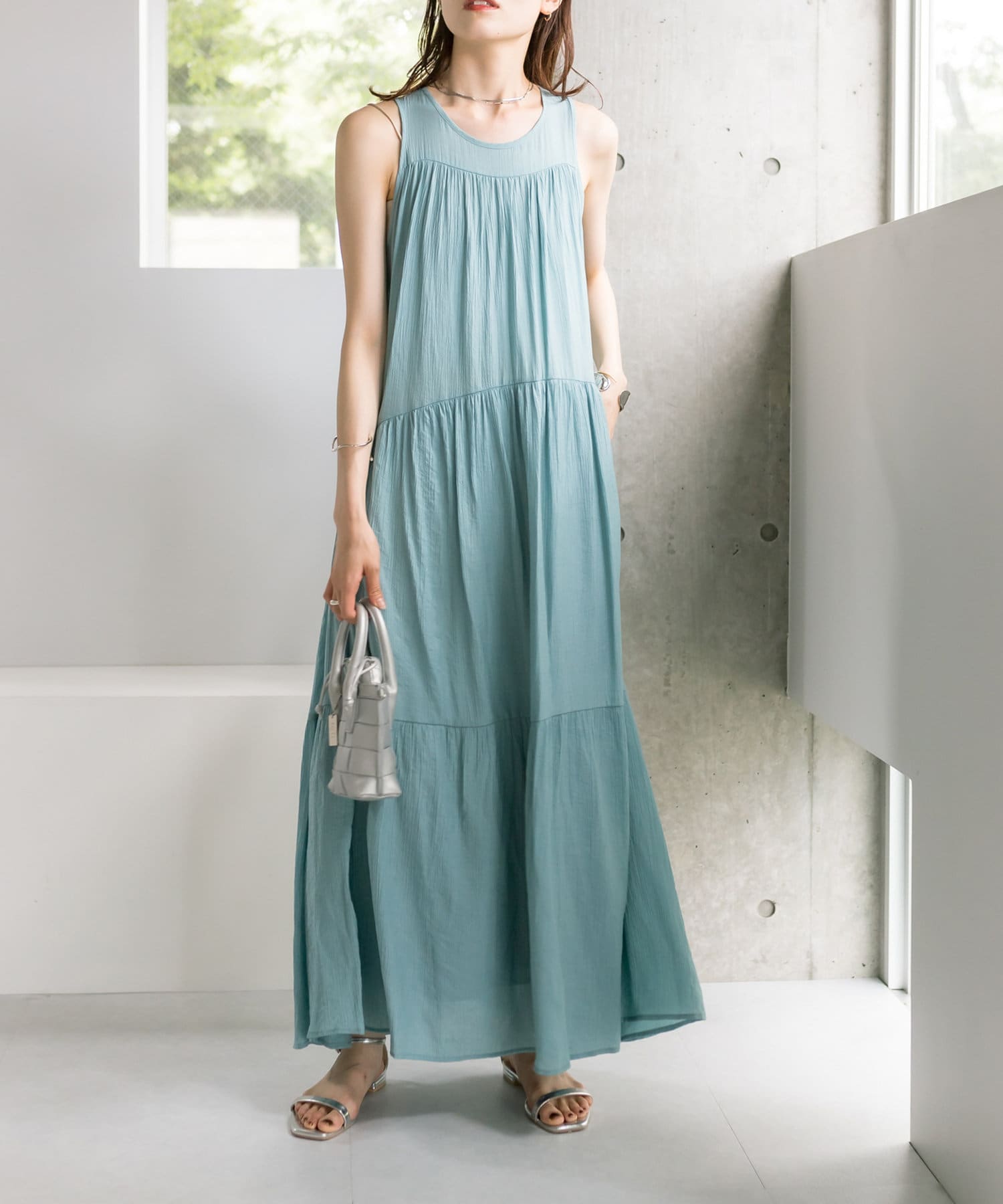 ・ティアードのふんわり感が女性らしい印象に見せてくれるキャミワンピース。