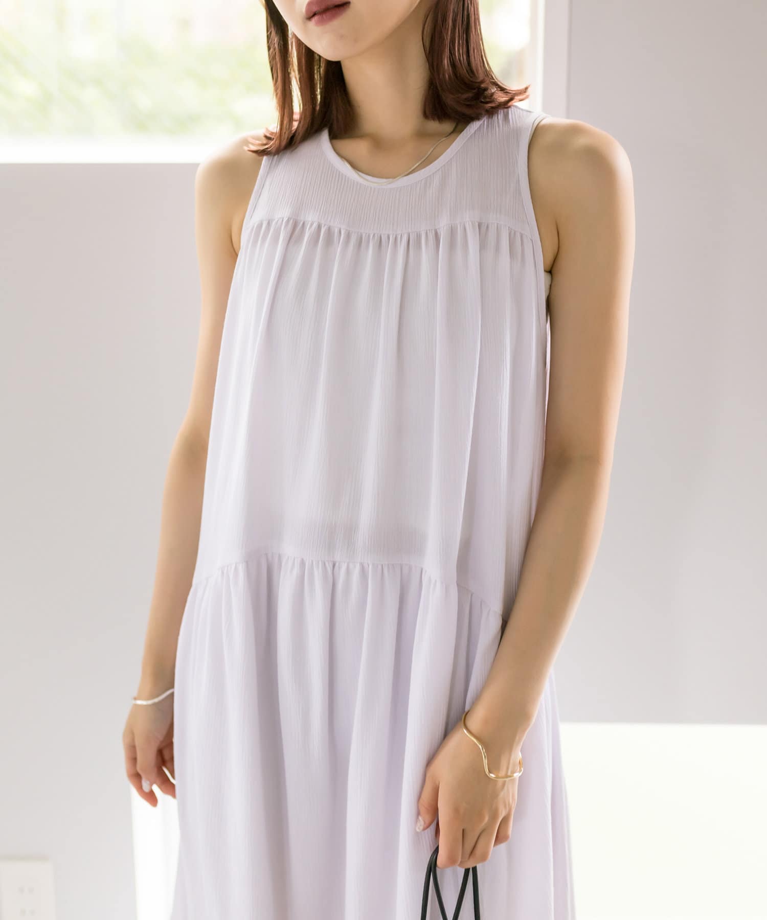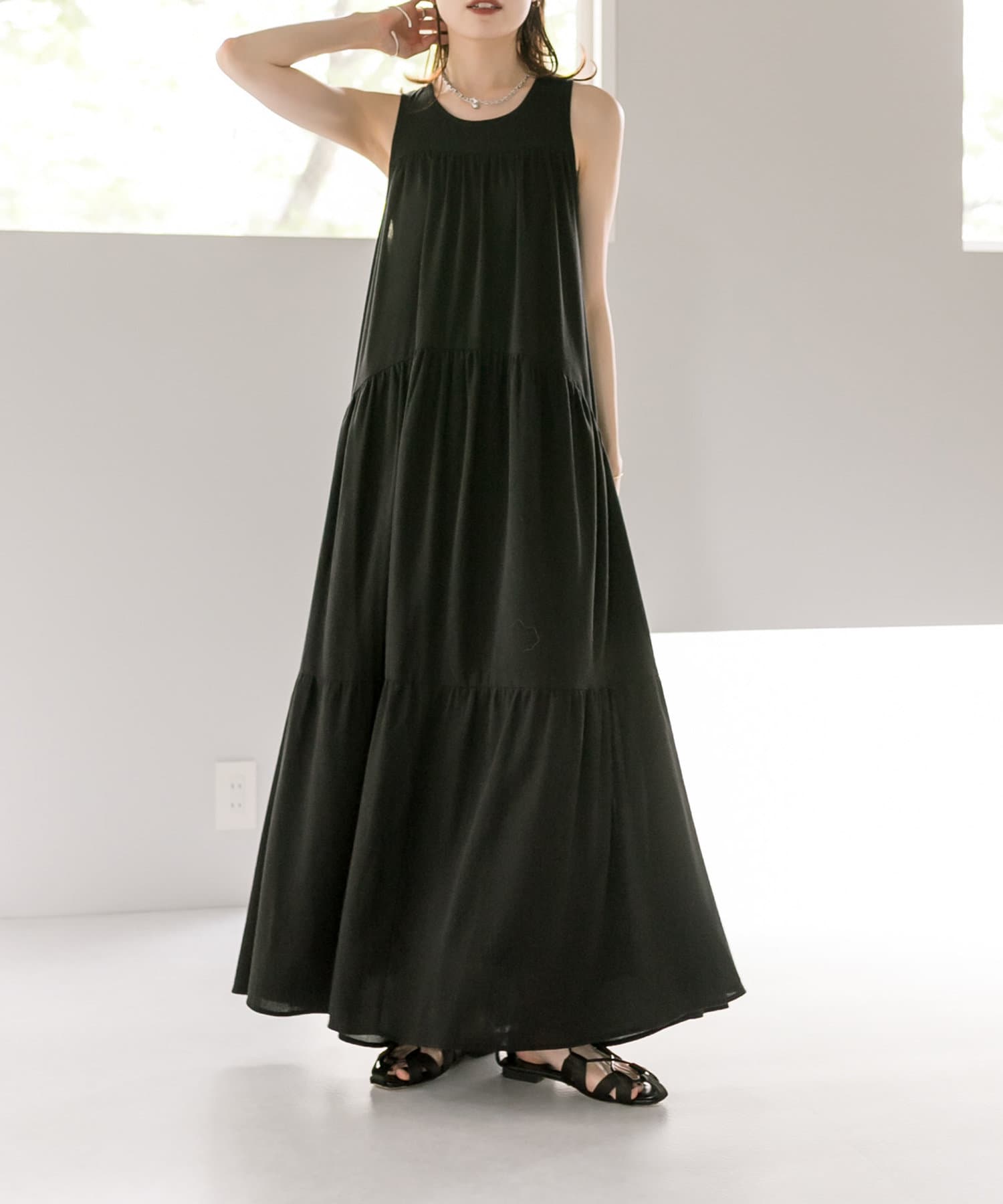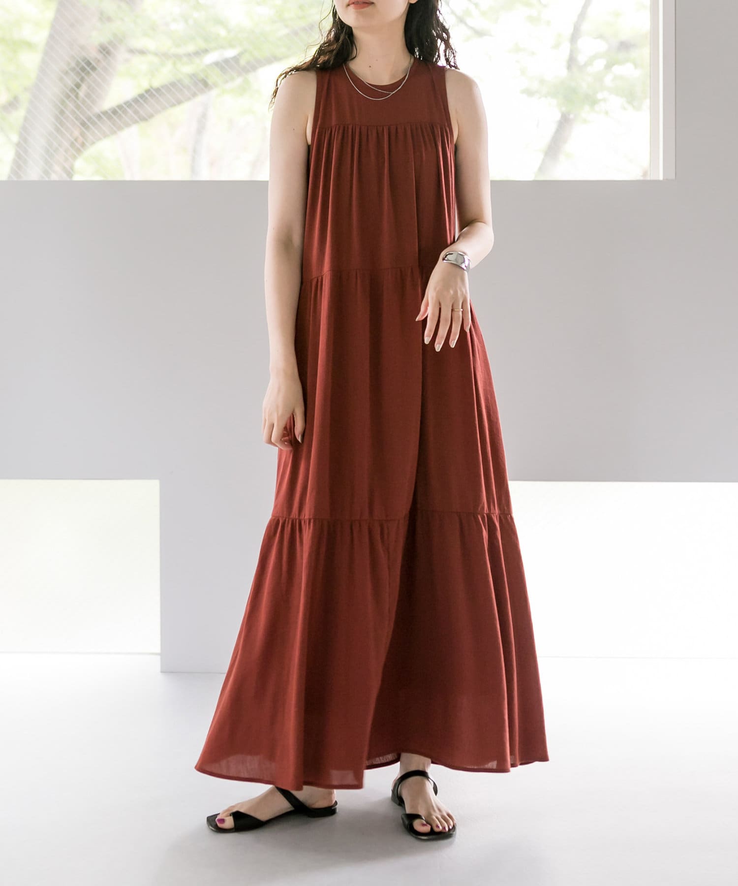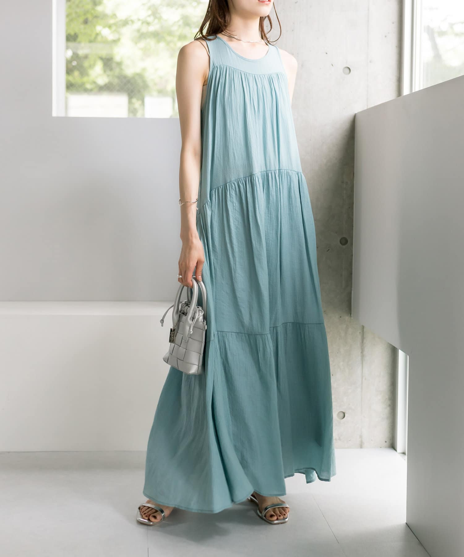 ・ティアードのふんわり感が女性らしい印象に見せてくれるキャミワンピース。