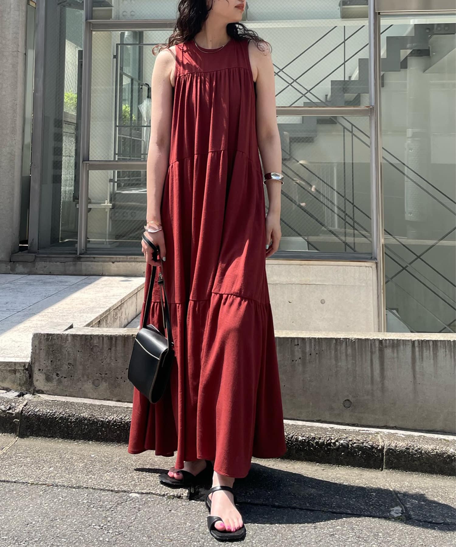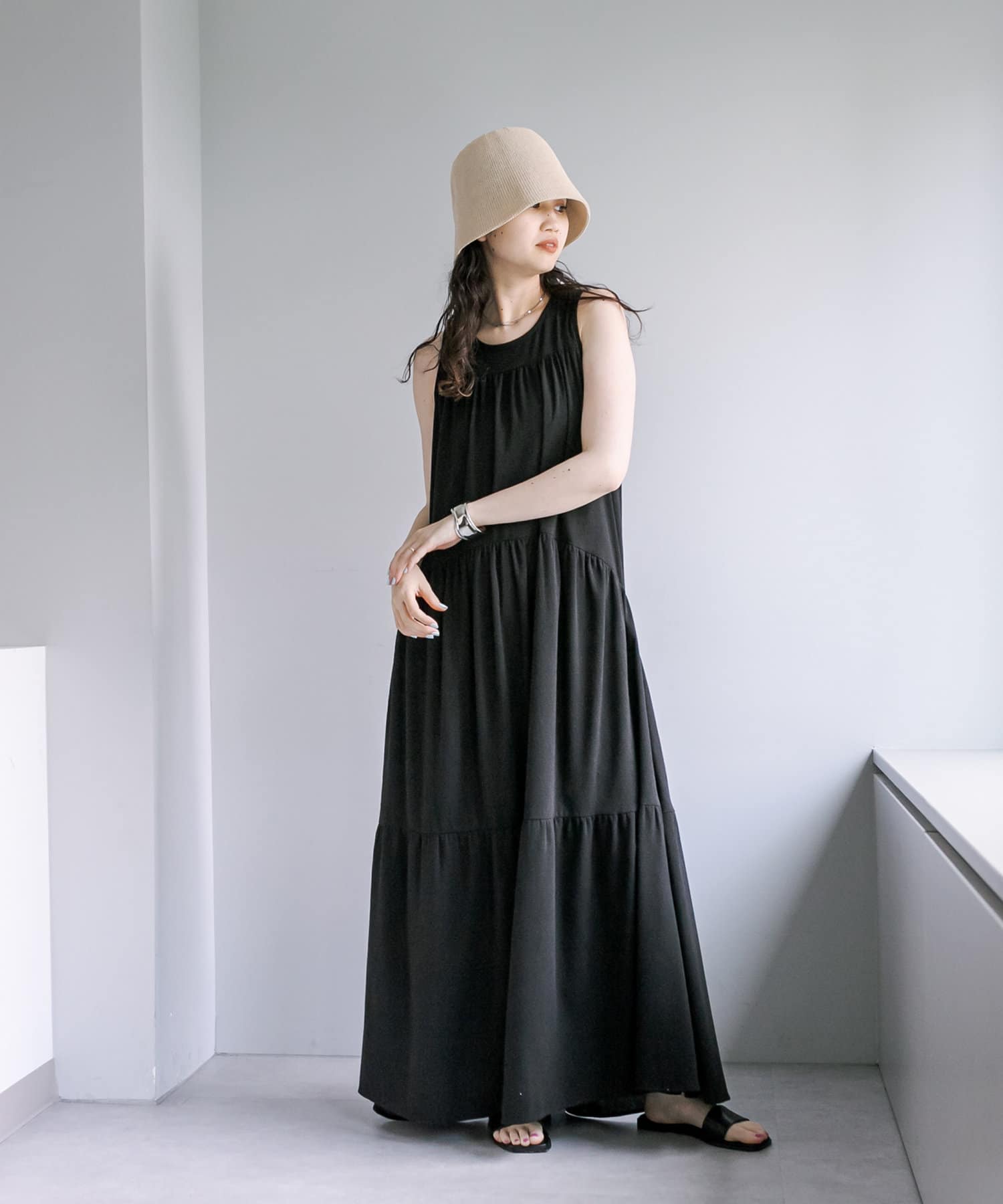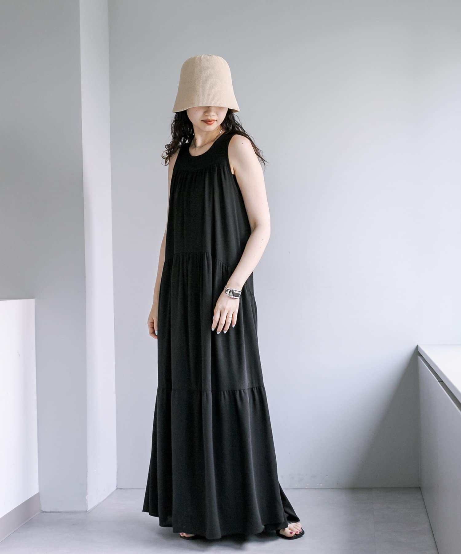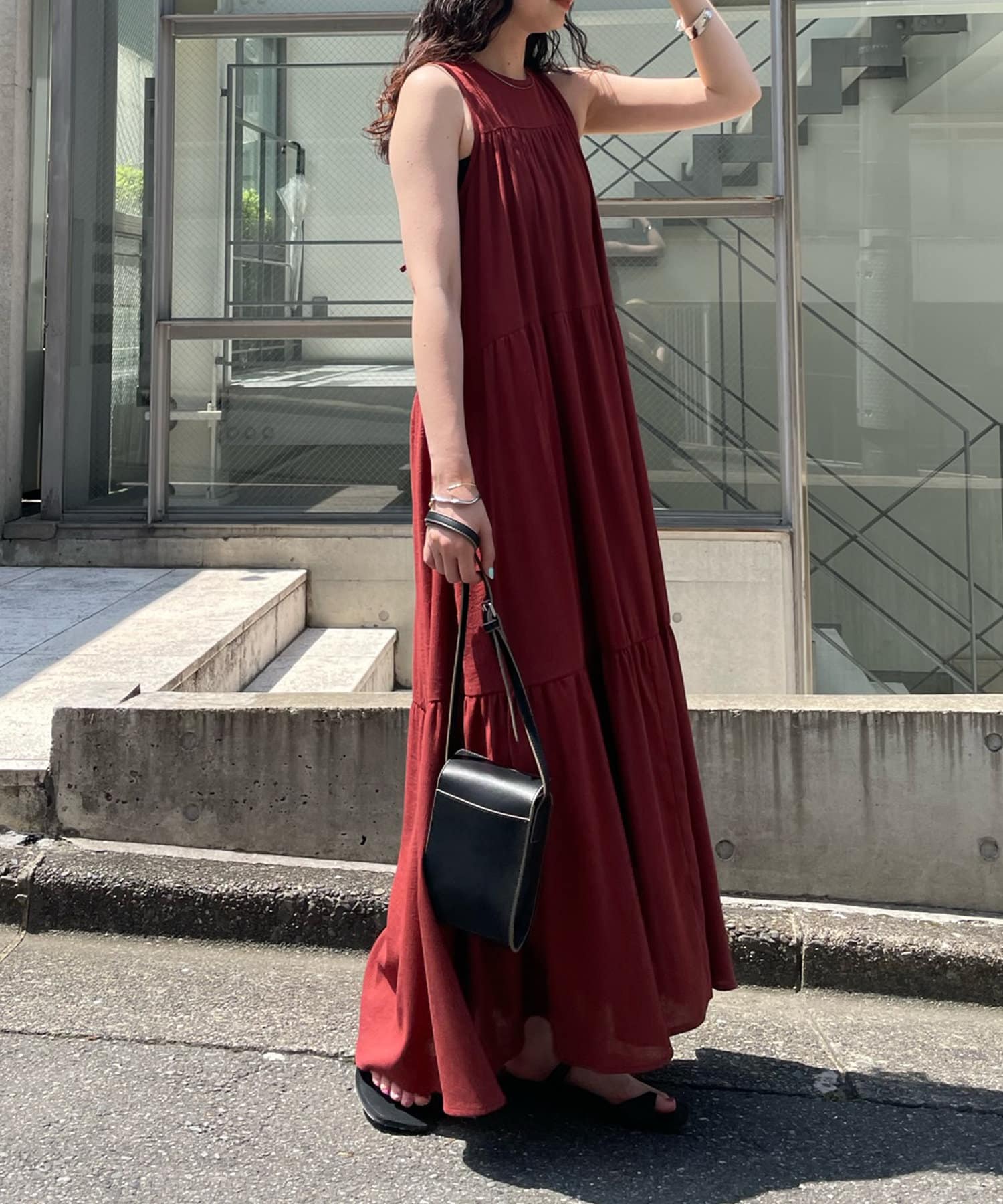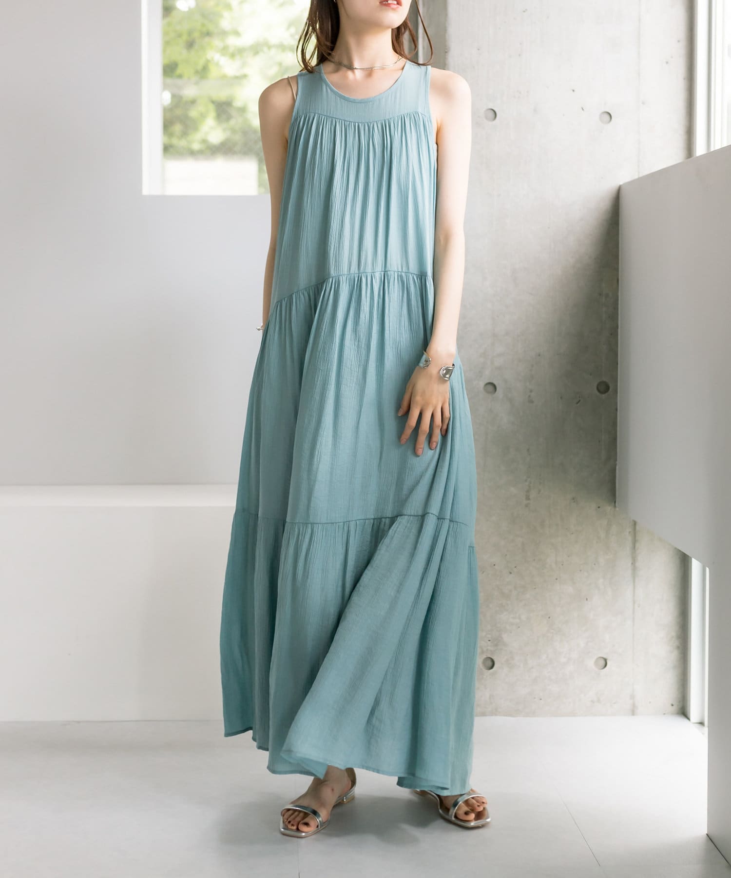 ・ティアードのふんわり感が女性らしい印象に見せてくれるキャミワンピース。