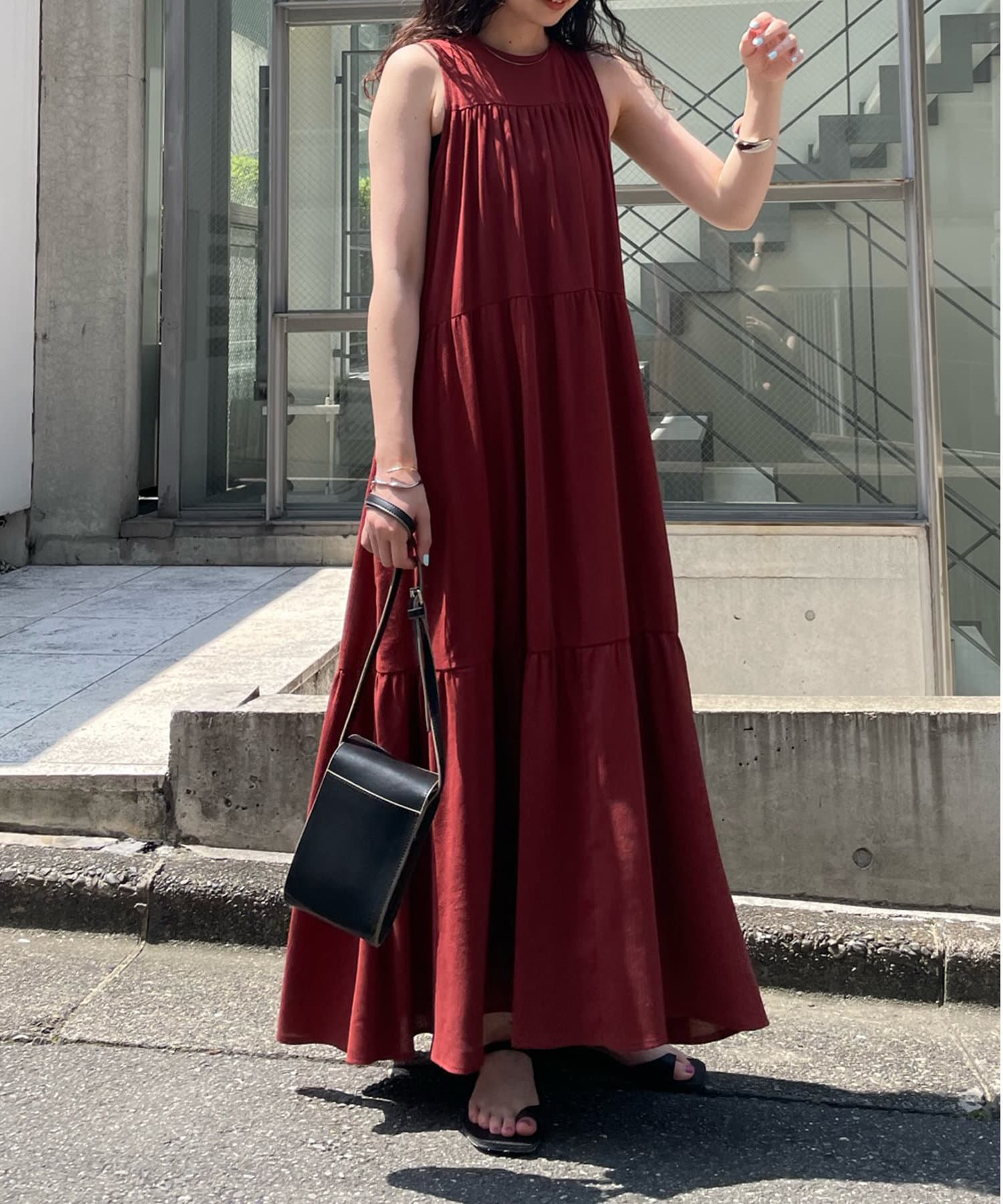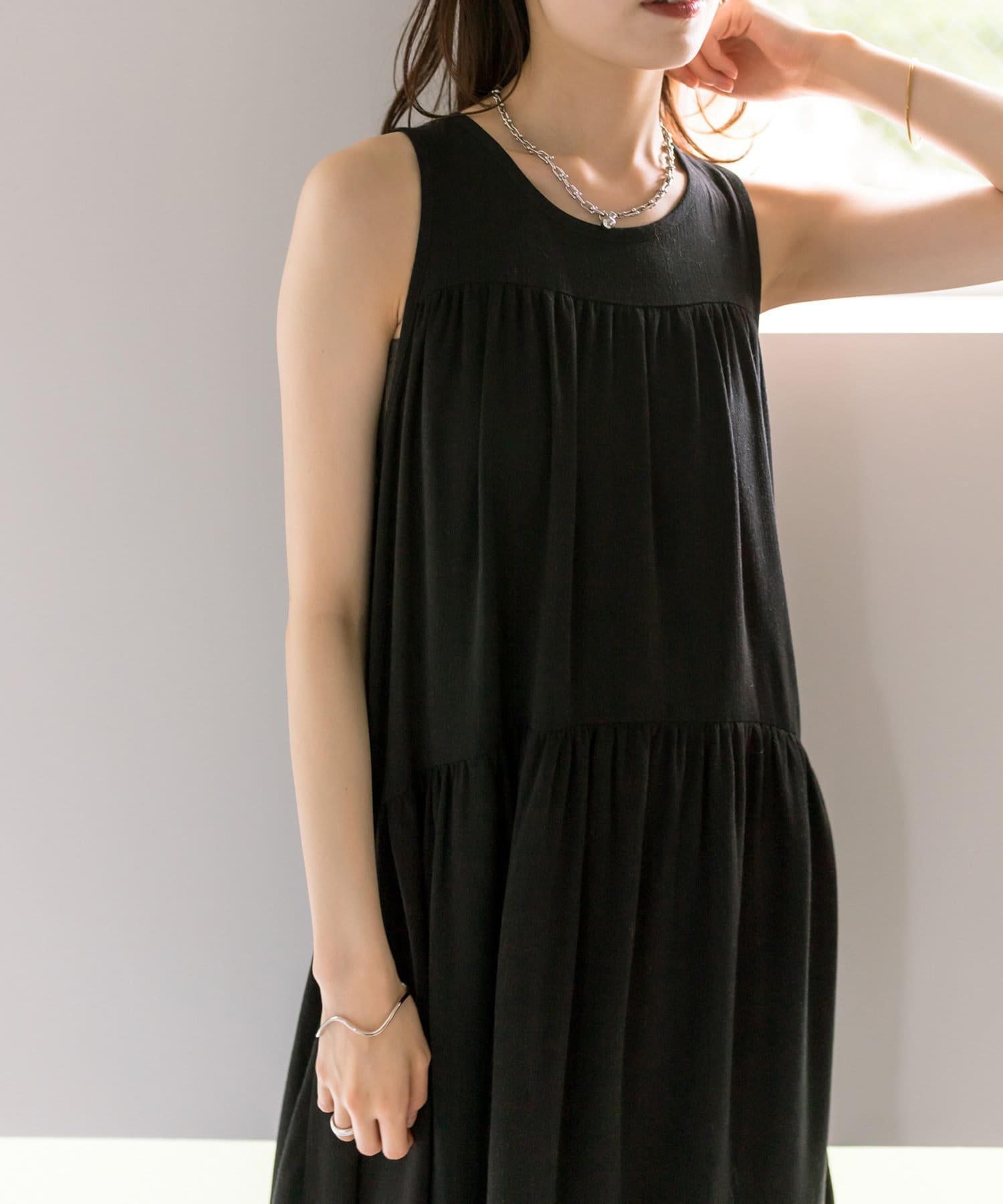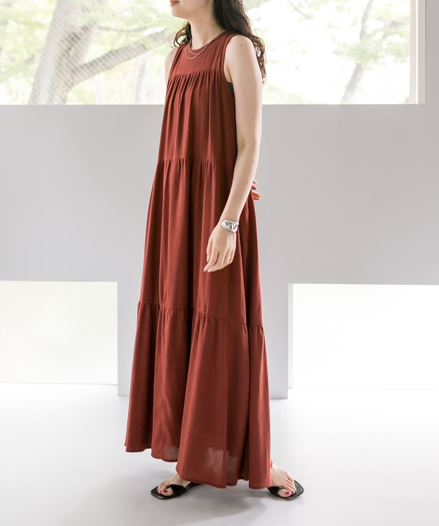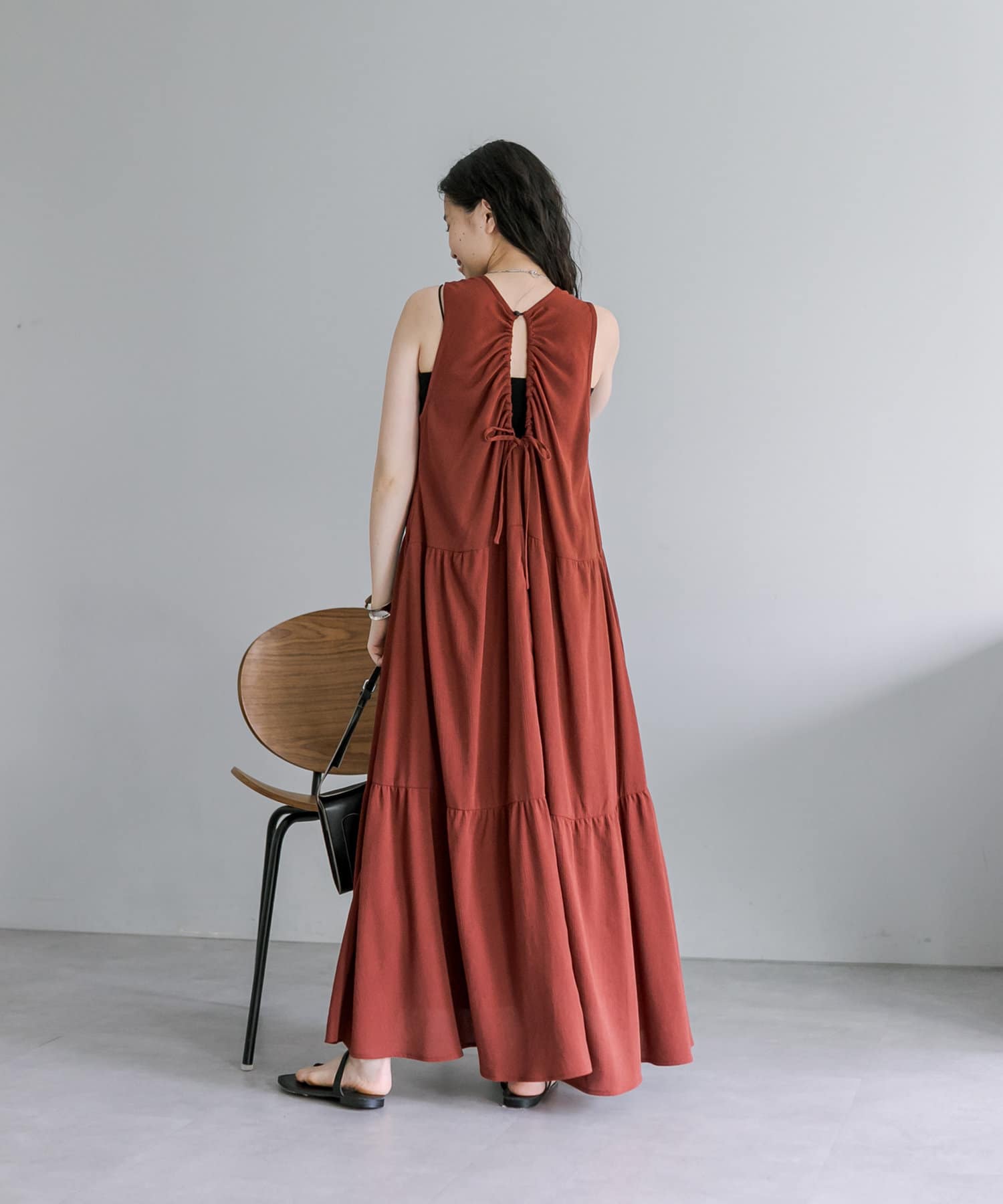 ・ティアードのふんわり感が女性らしい印象に見せてくれるキャミワンピース。