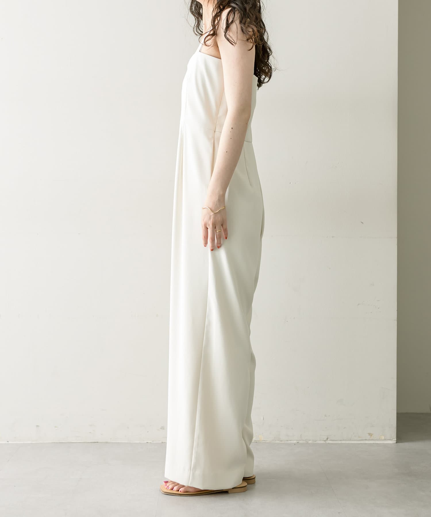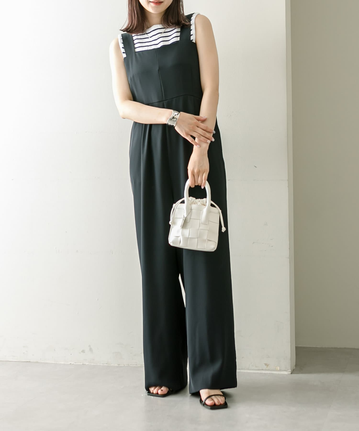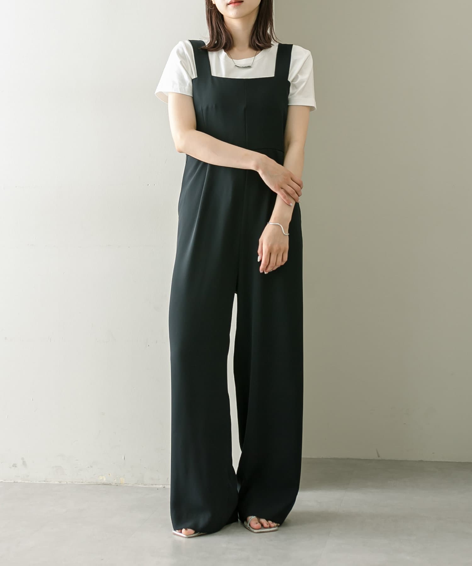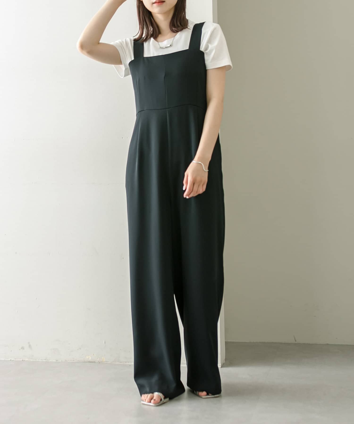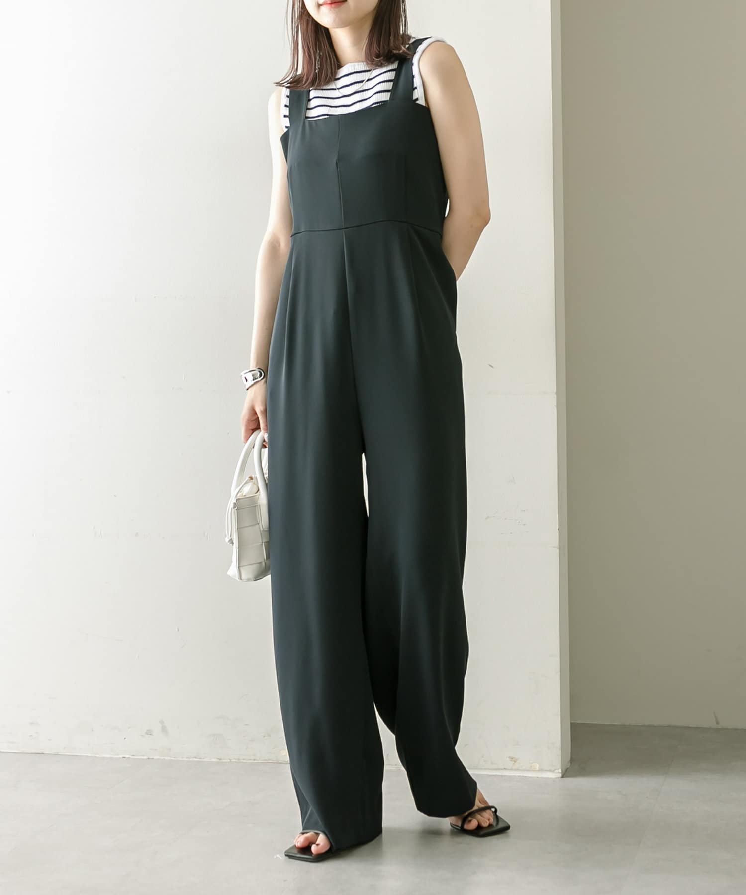 ・ややツヤ感のある素材で大人カジュアル叶うサロペット。