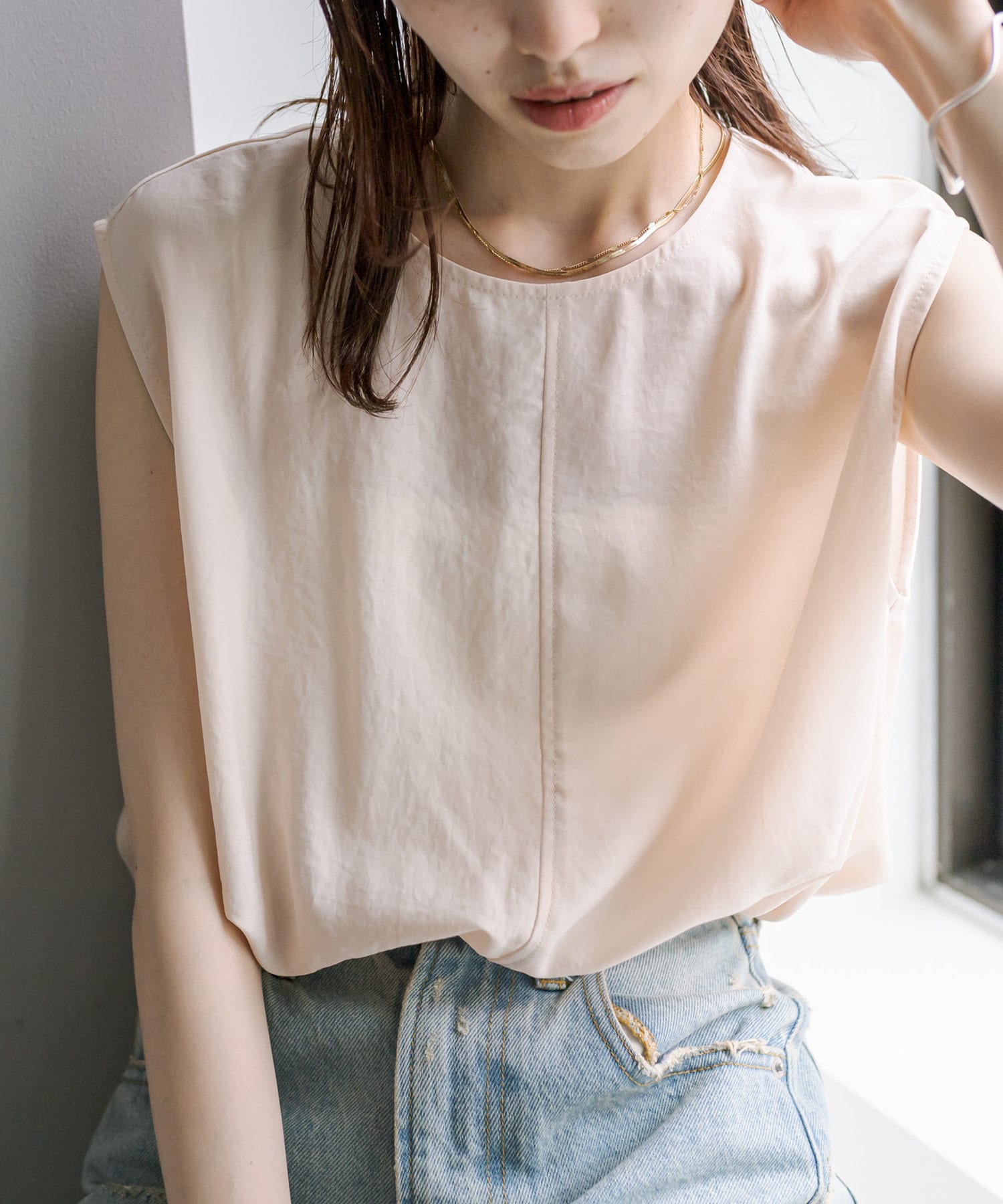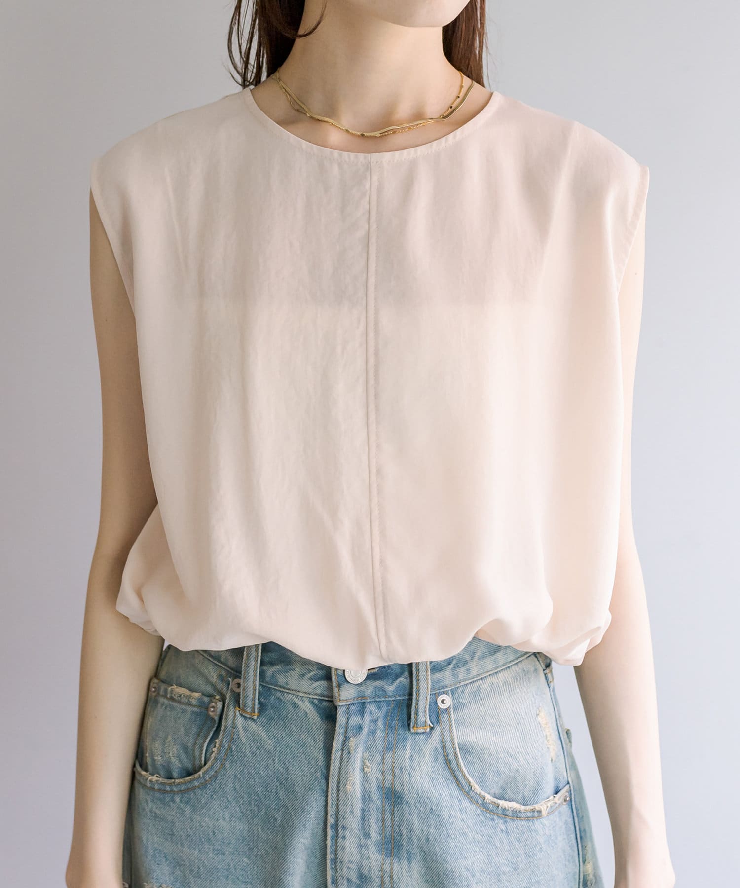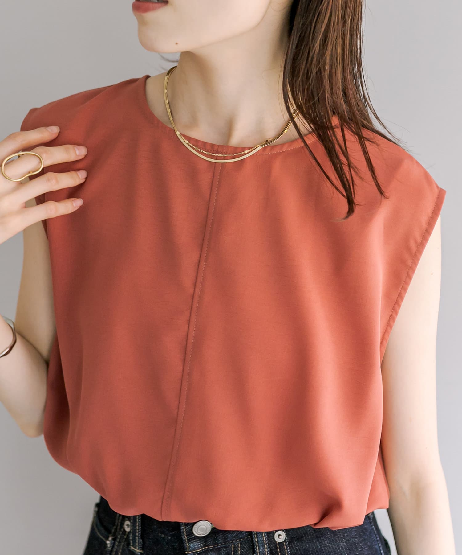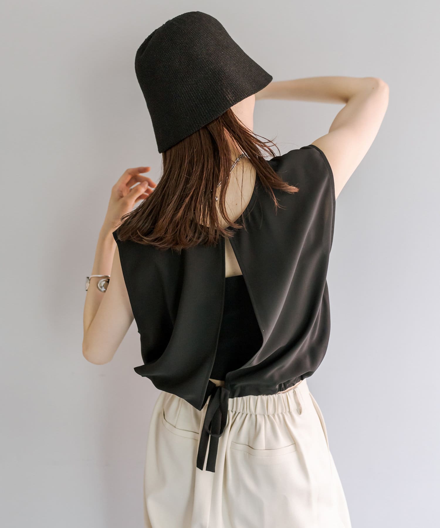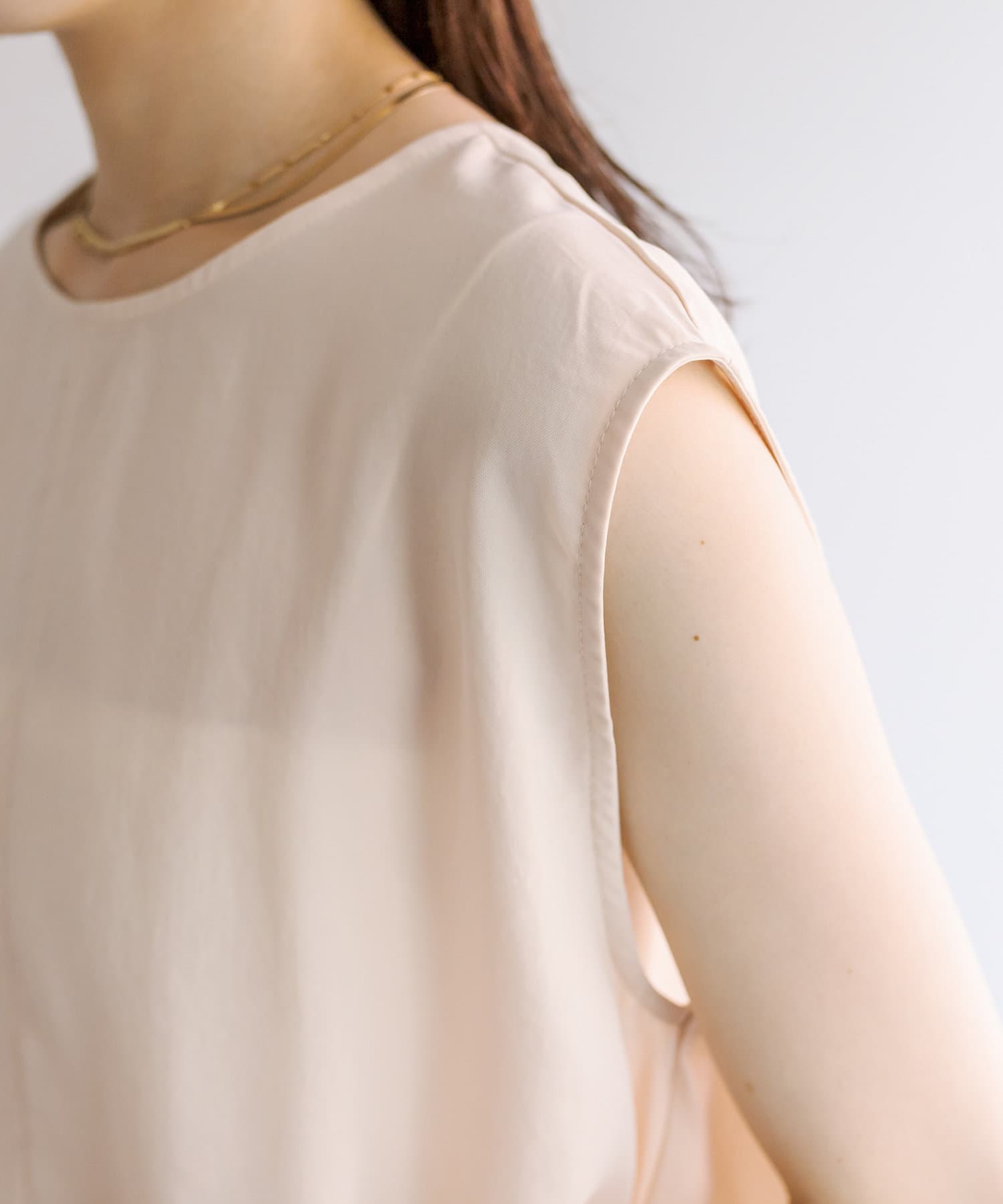夏の定番ノースリーブとバックシャンデザインの爽やかブラウス。