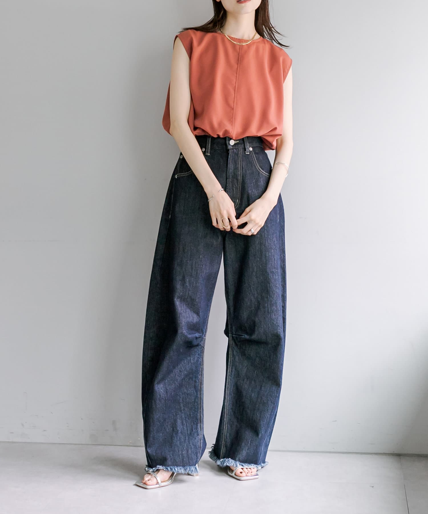 ・さらっとした素材感で上半身をすっきりみせてくれます。