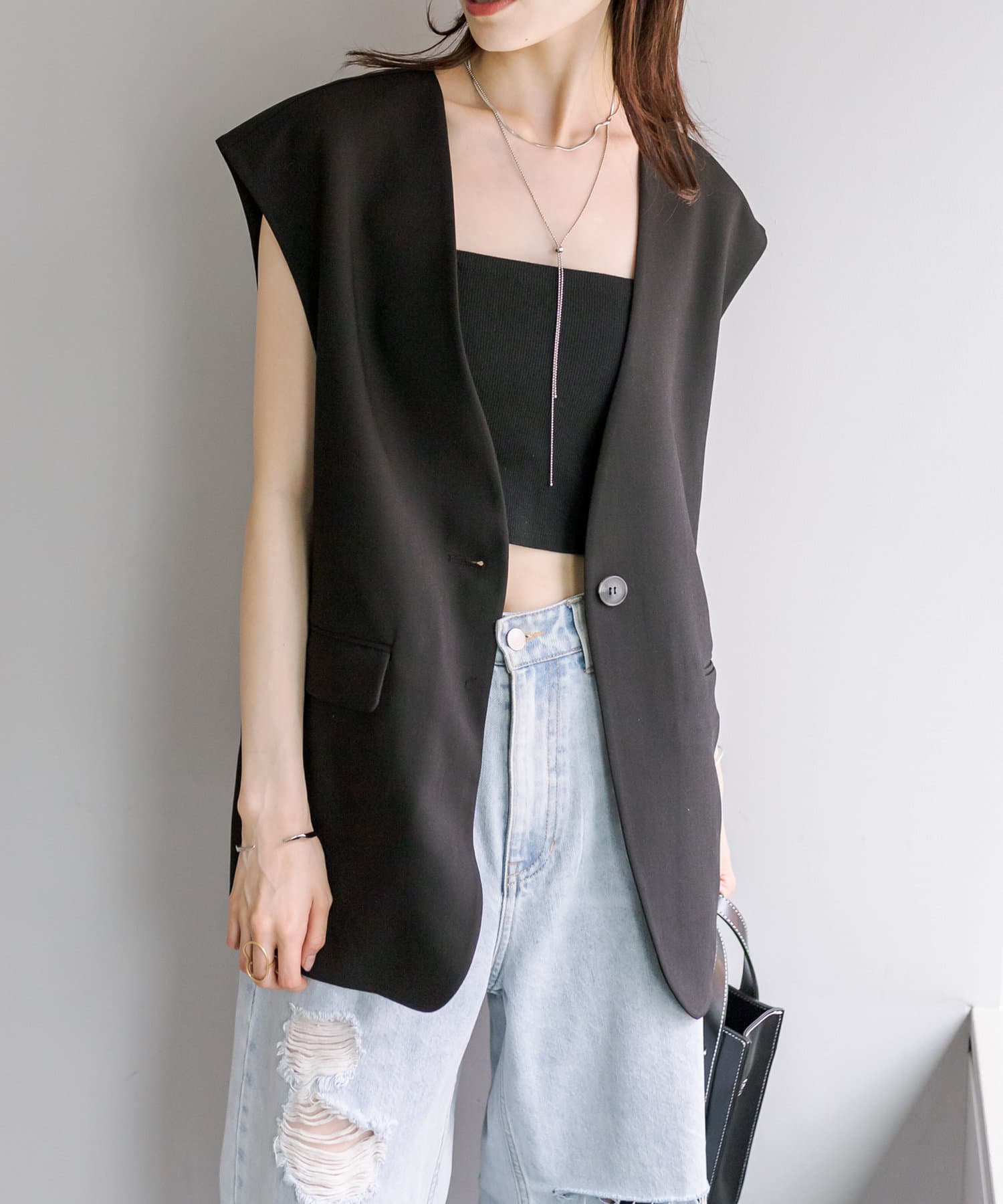 ・キャミソールやワンピースと合わせたヘルシーなスタイリングもおすすめです。