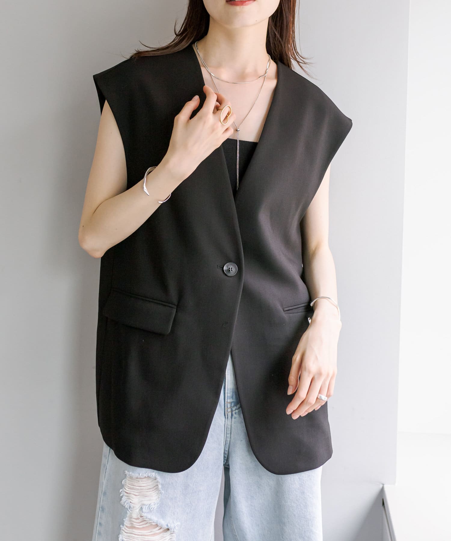 リネン生地でさらっと着れる大活躍のジレが登場。