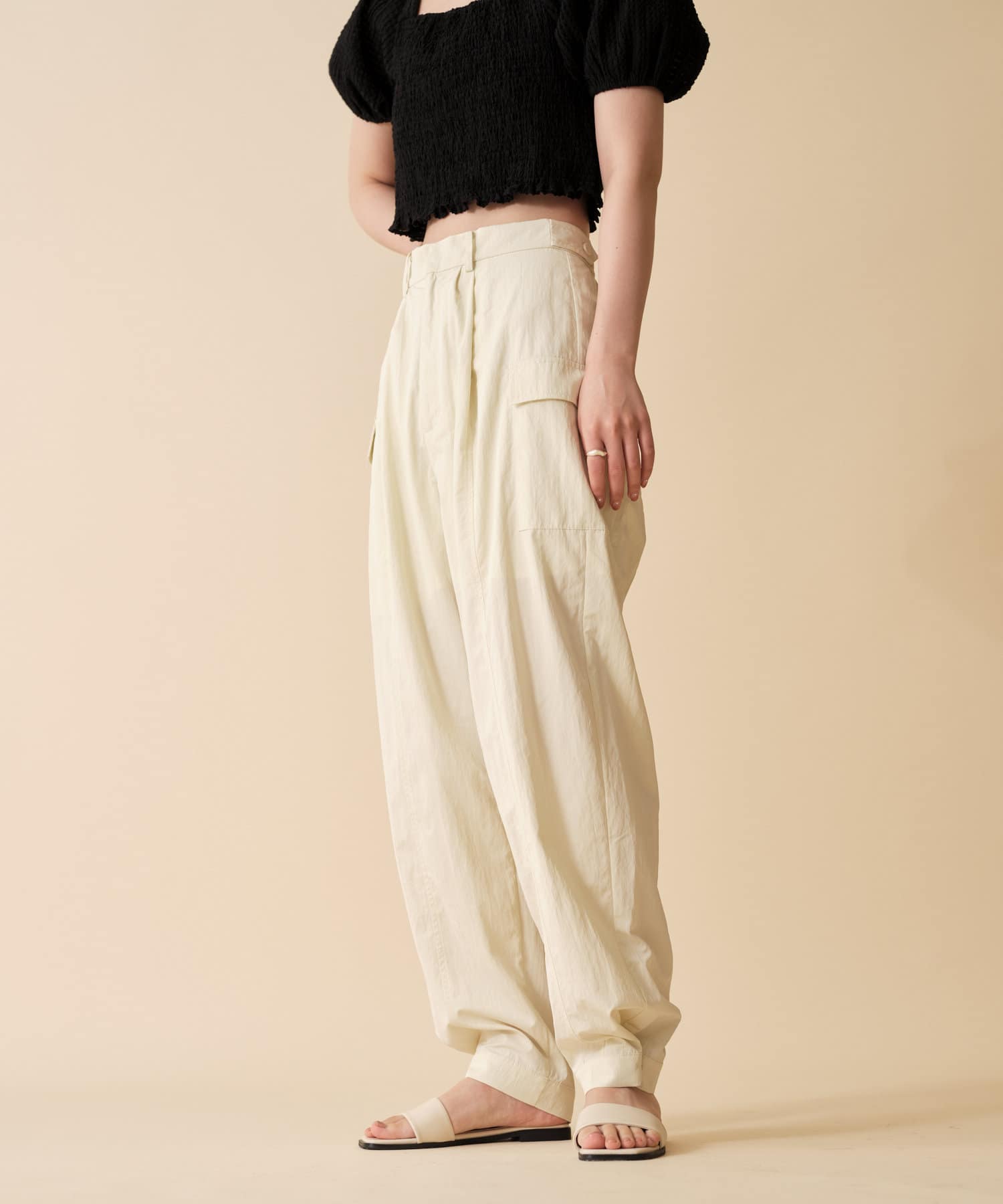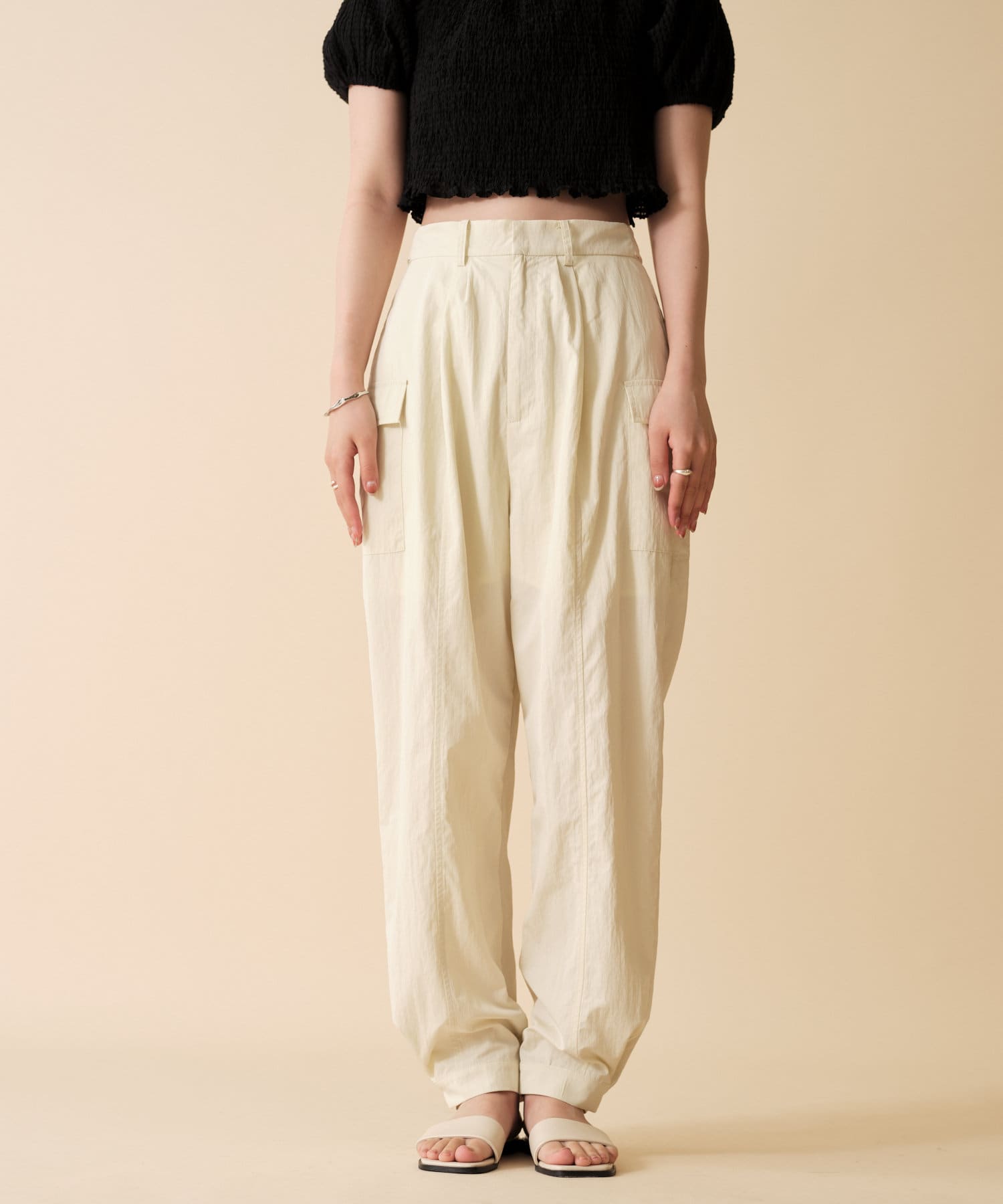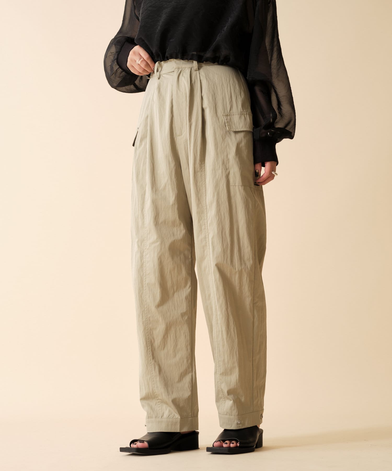 ・つや感のある生地を使用したきれいめ見えのカーゴパンツが登場。