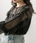 ・綺麗めな雰囲気に仕上がるドット柄は、デニム生地のボトムス合わせで大人カジュアルに決まります。