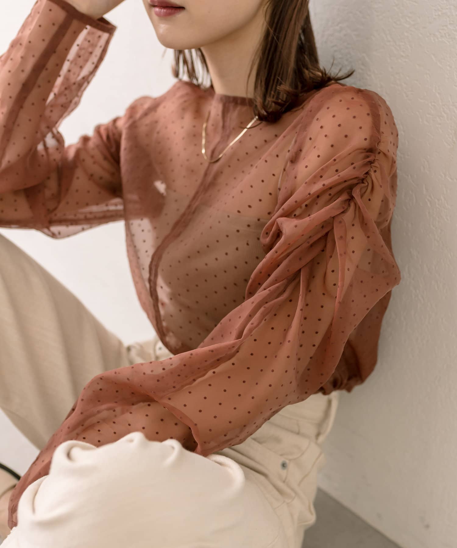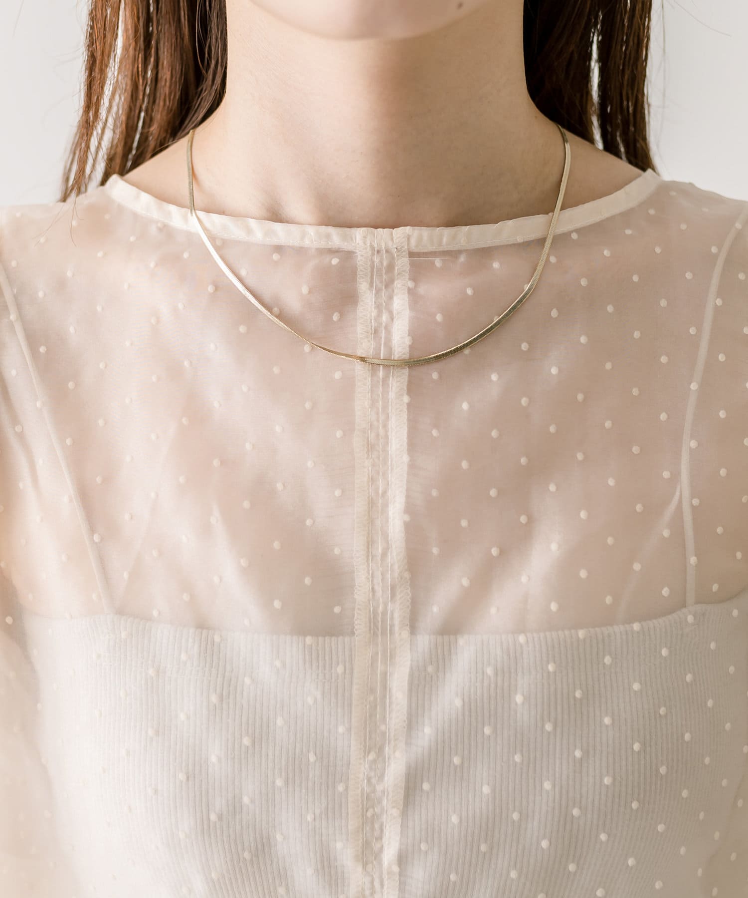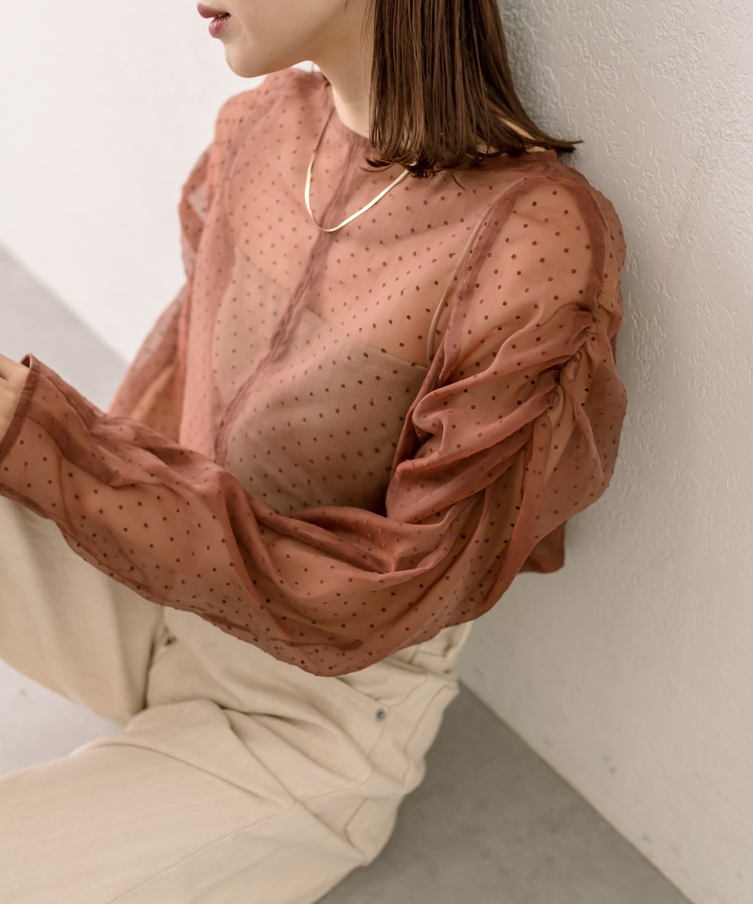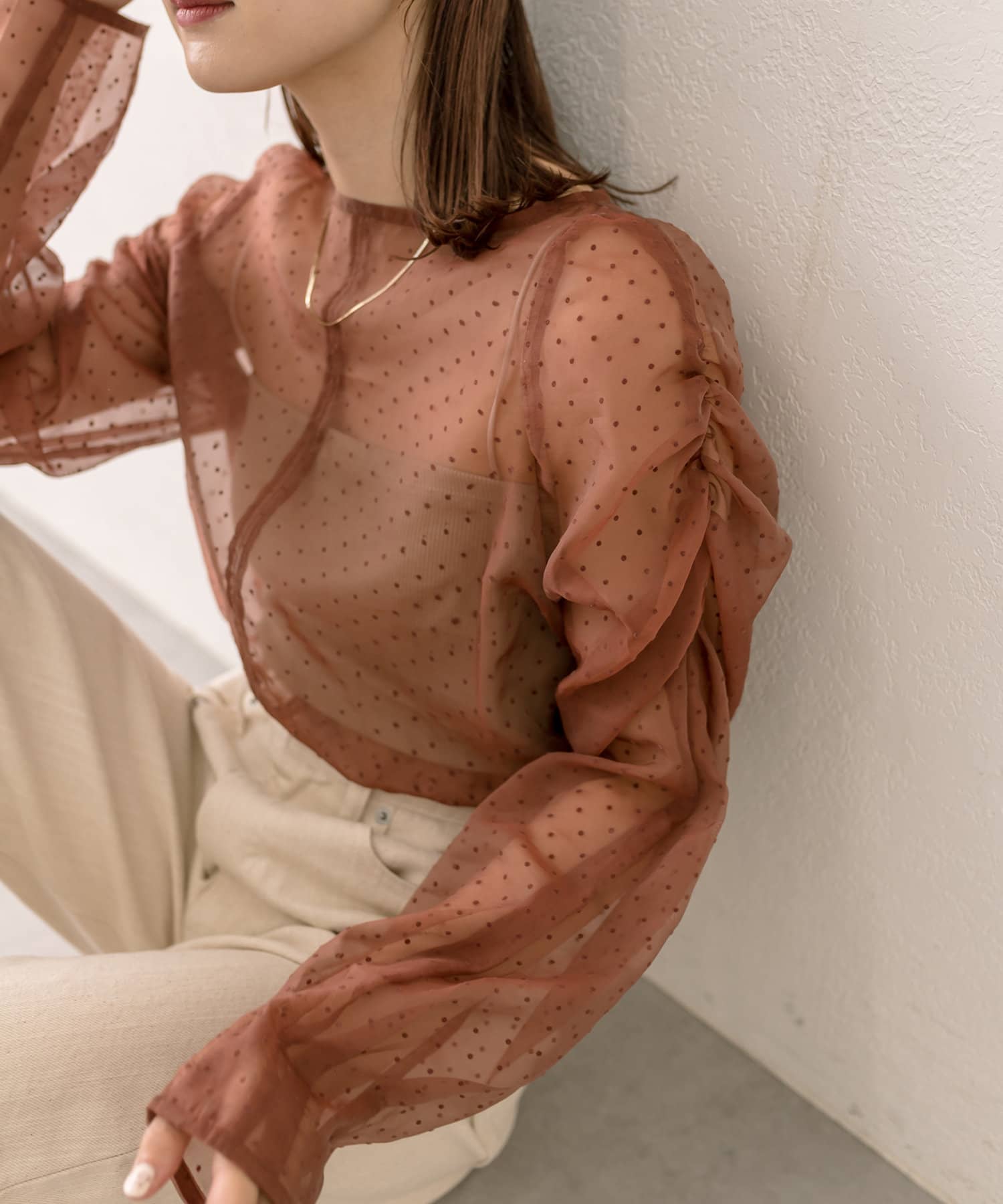 ・透け感のある素材なのでインナーはパット付きキャミがおすすめ。