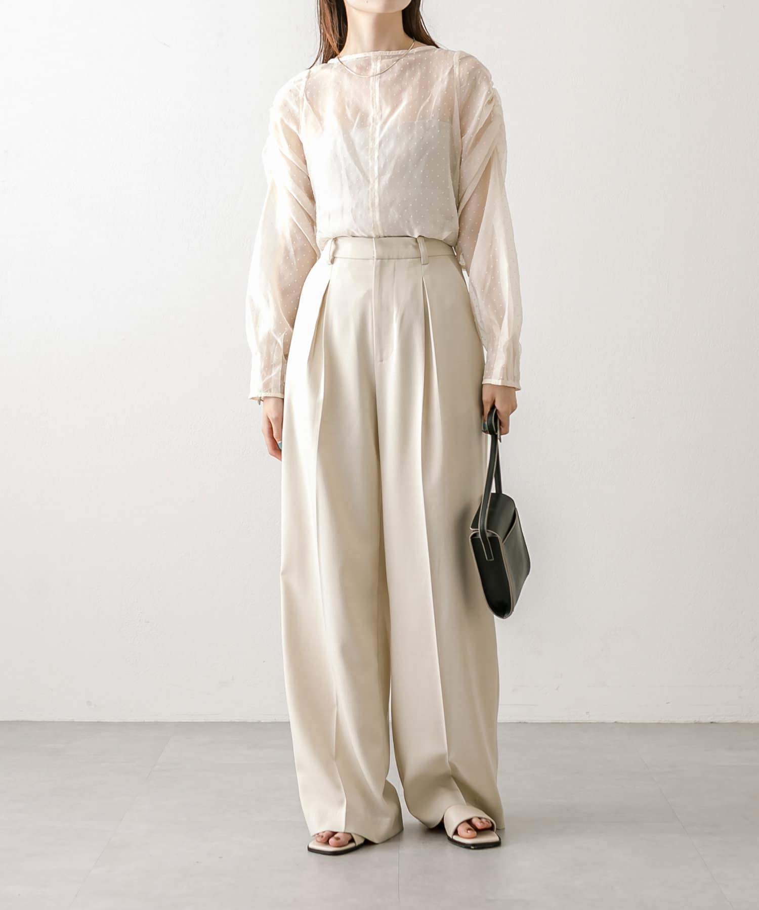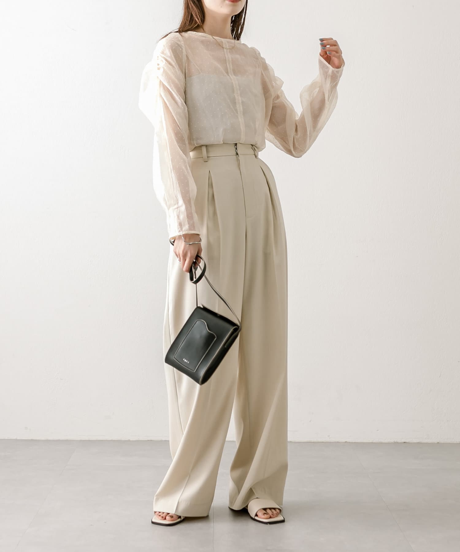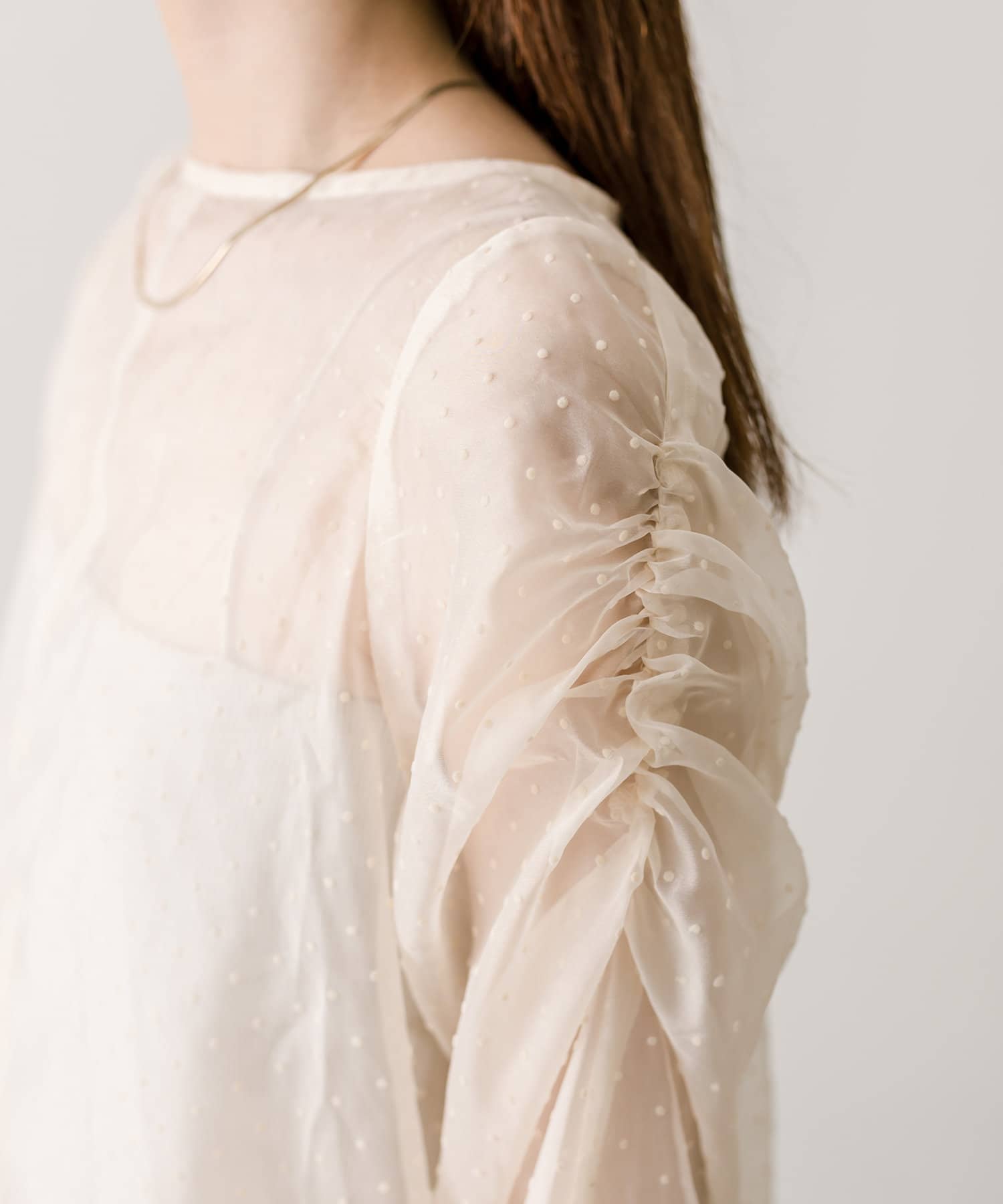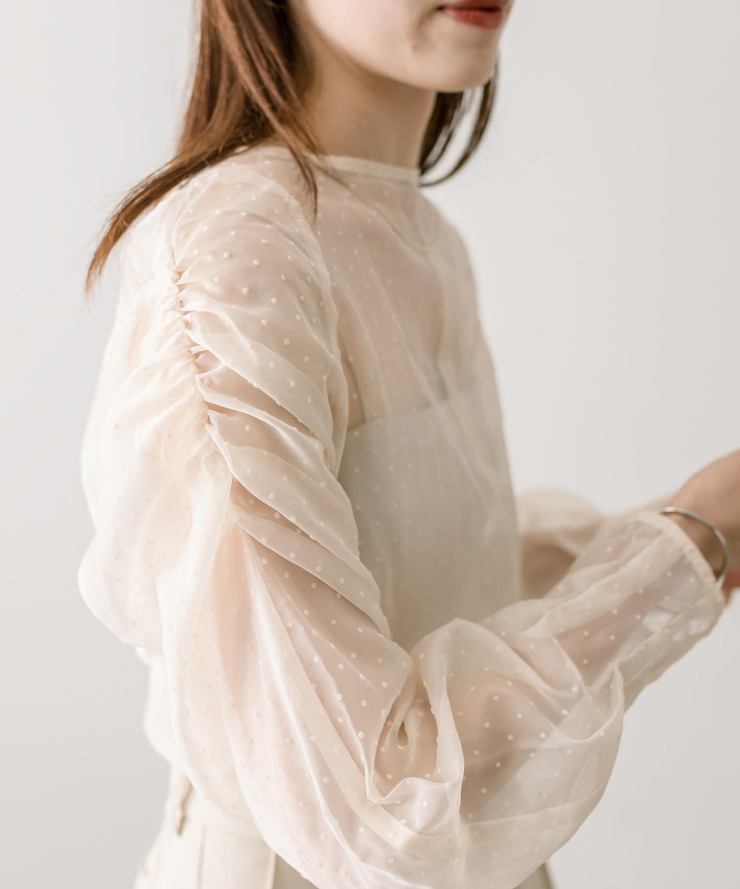 ・透け感のある素材なのでインナーはパット付きキャミがおすすめ。