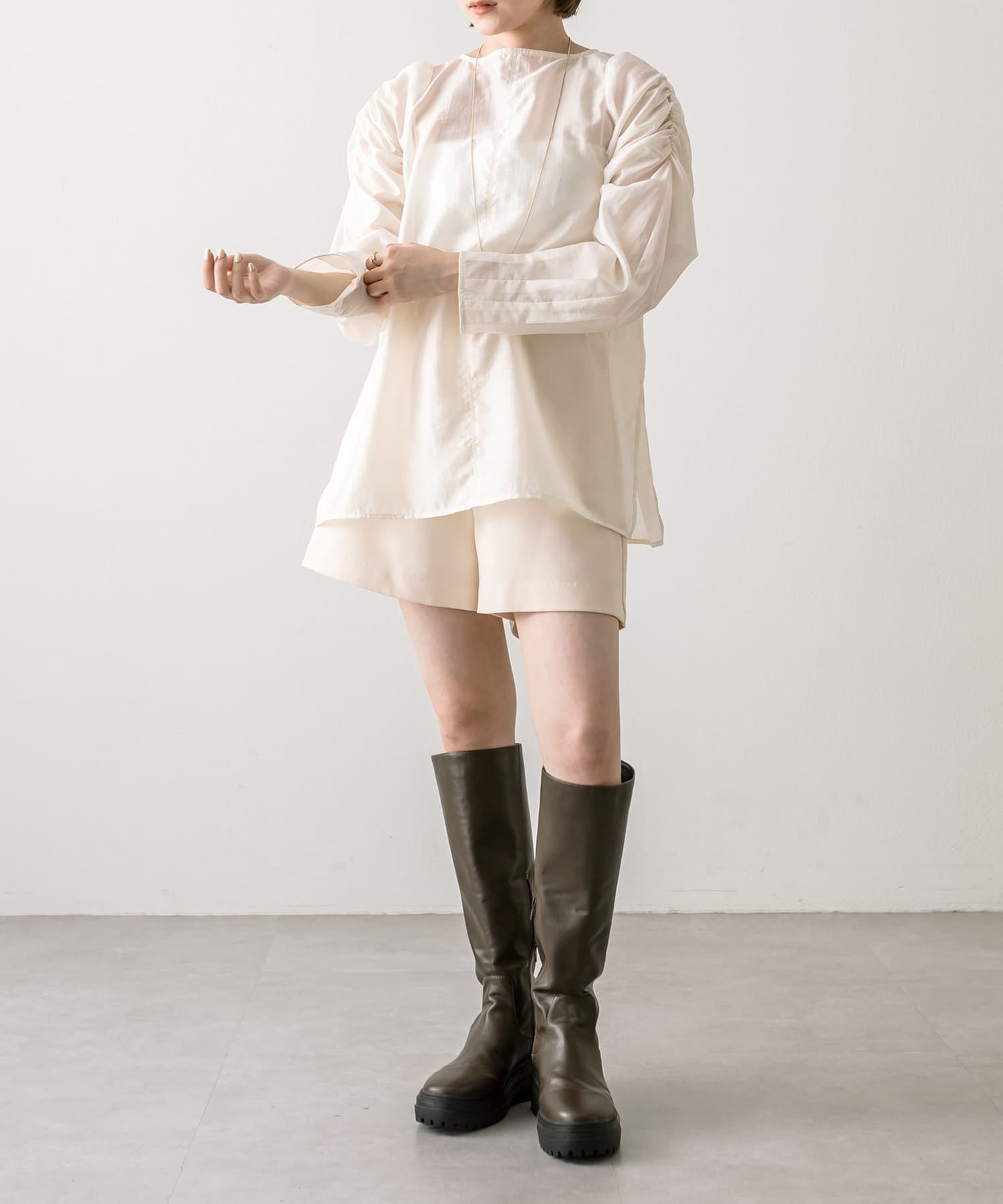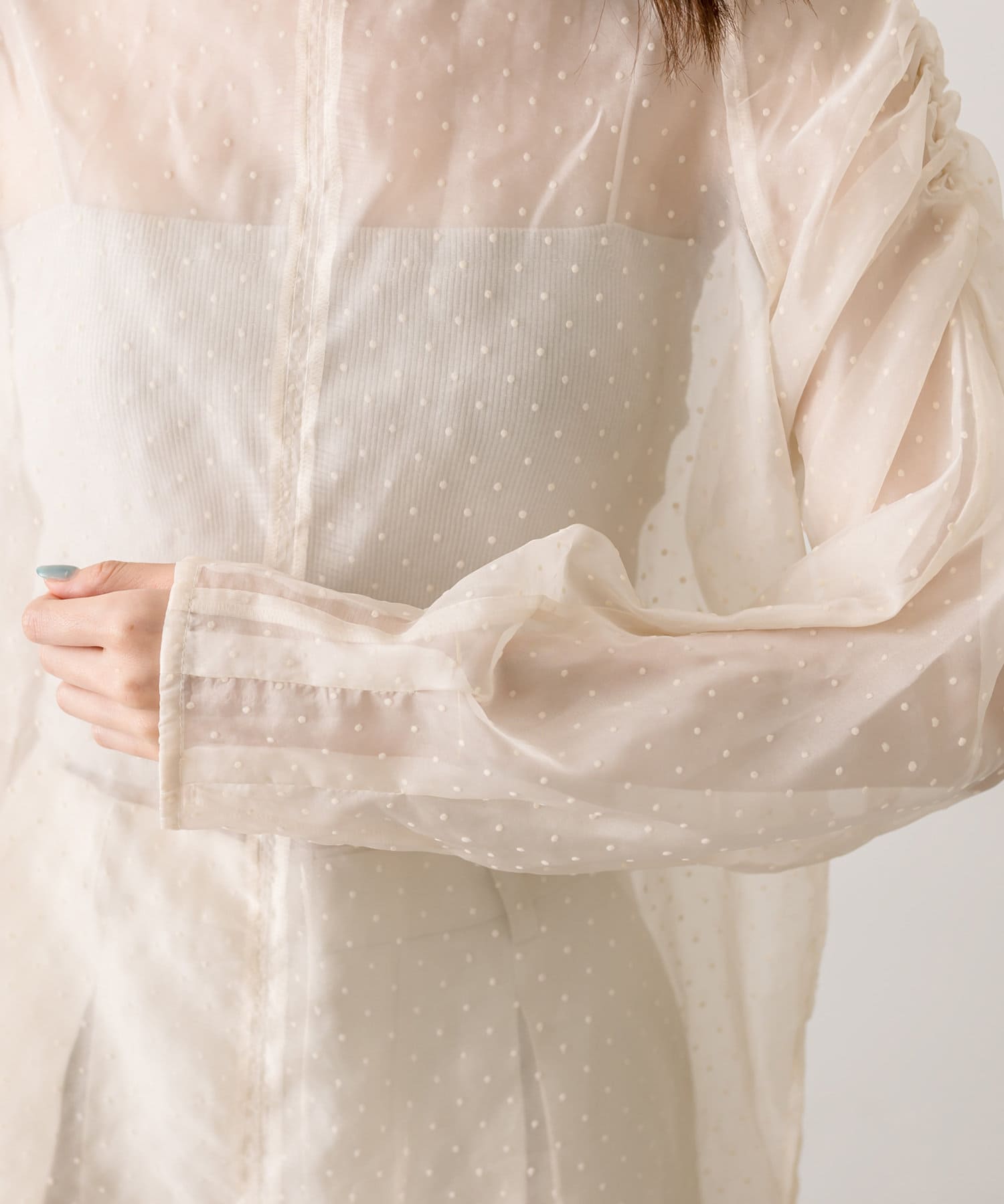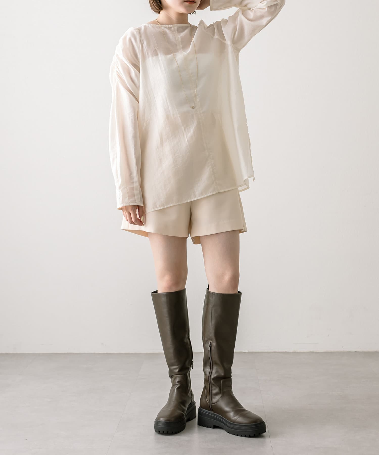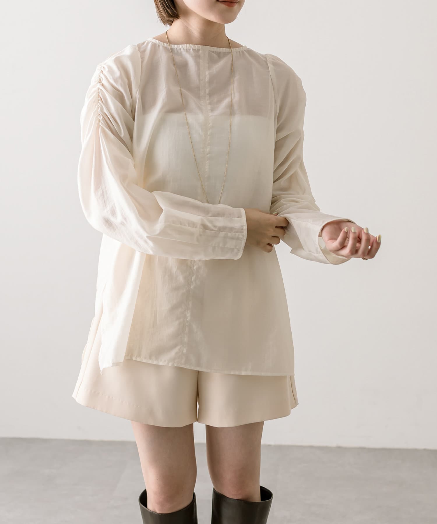 ・透け感のある素材なのでインナーはパット付きキャミがおすすめ。