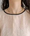・胸元はシンプルなUネックデザインなのでアクセ使いで華やかな印象に。
