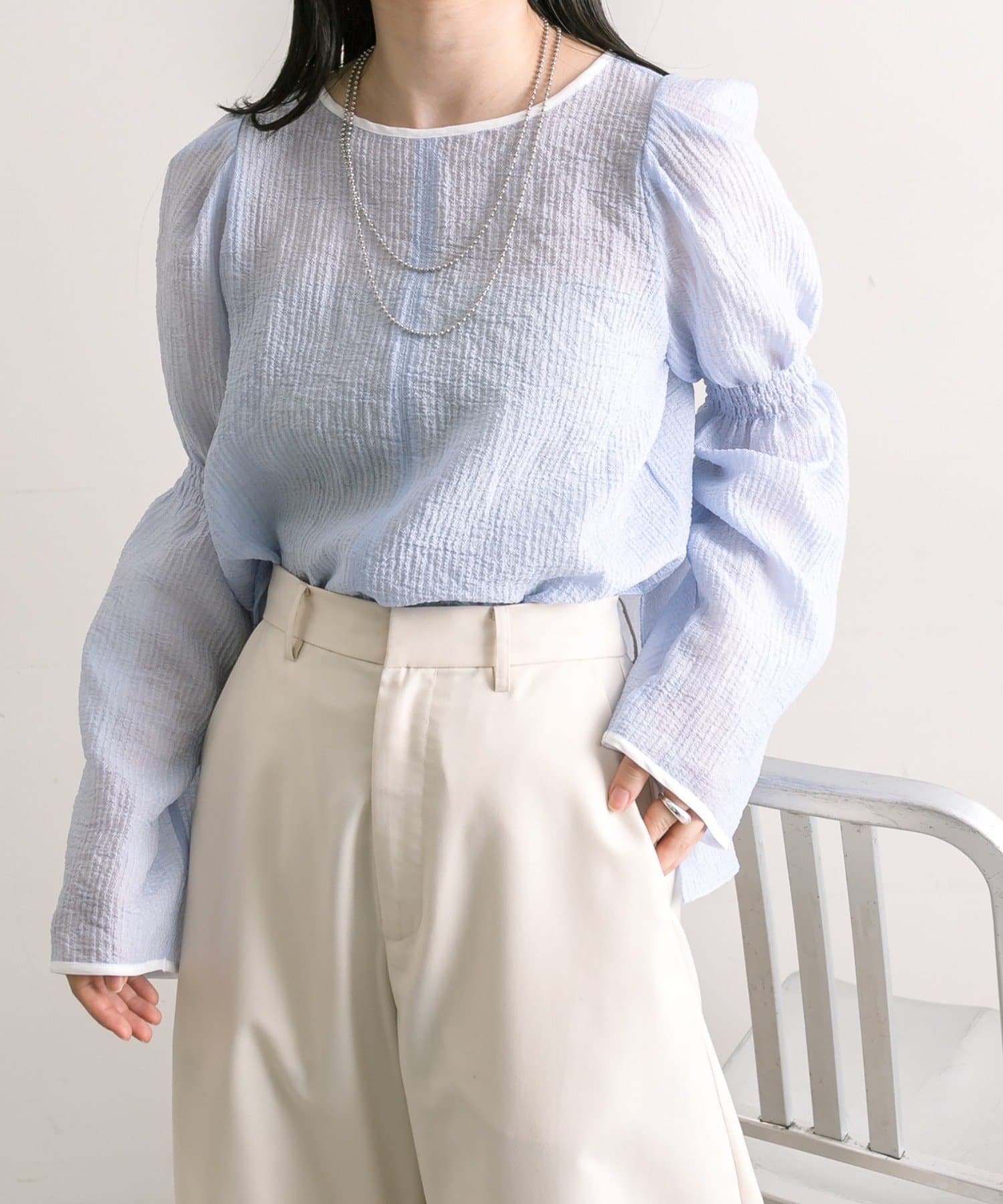 購入場所:店舗ほどよい透け感で、夏から秋にかけて大活躍しそうです!袖は広がっているデザインでとても可愛いです!