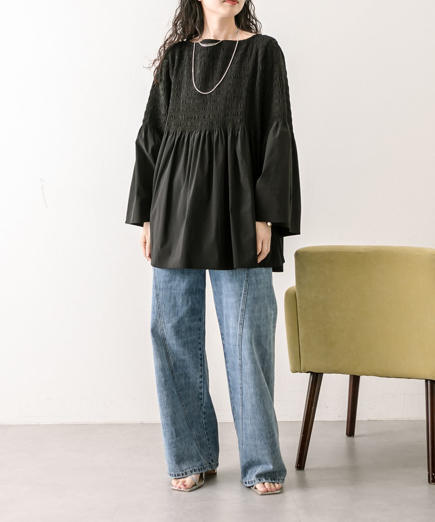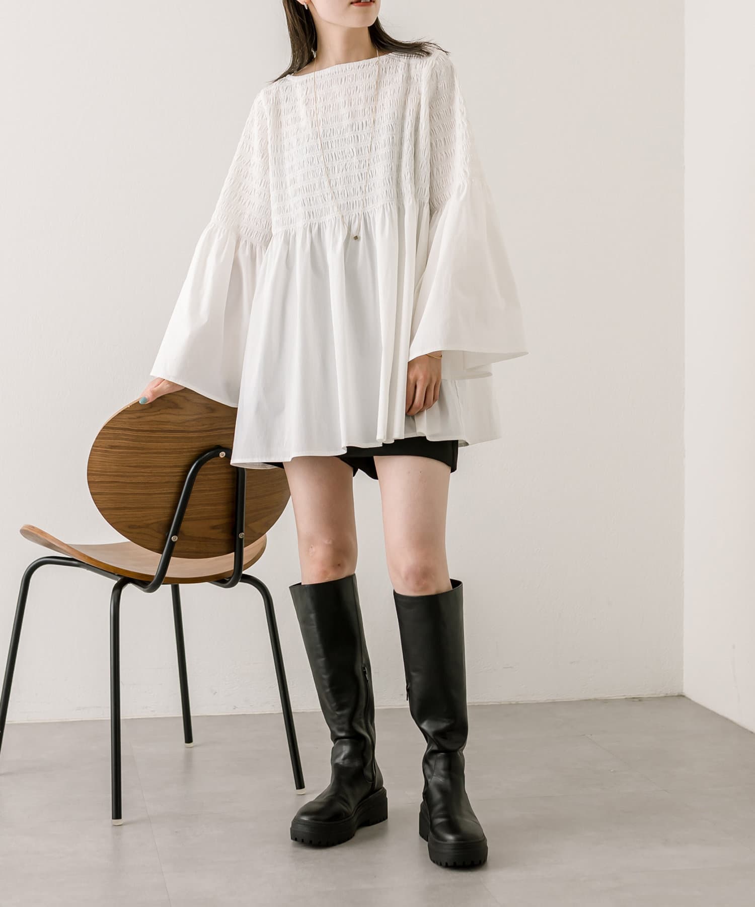 トレンド感のある大胆まシャーリングがほどこされたチュニックが登場。