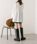 ・ミニボトム×ブーツで程よく脚見せするスタイルがおすすめ。