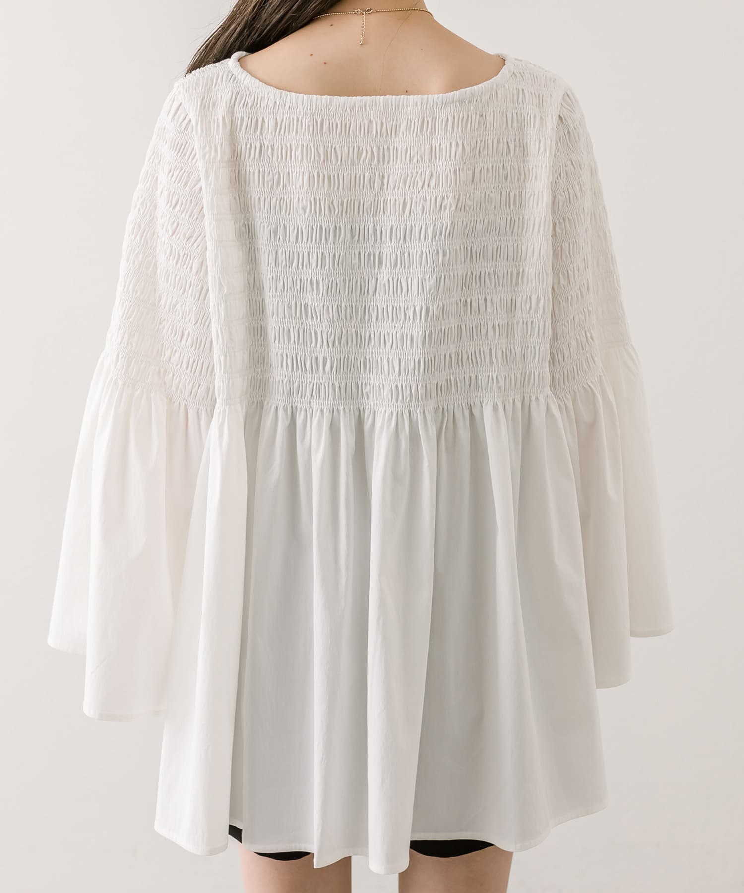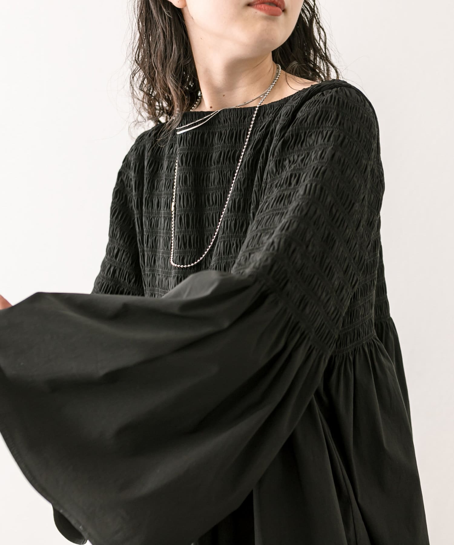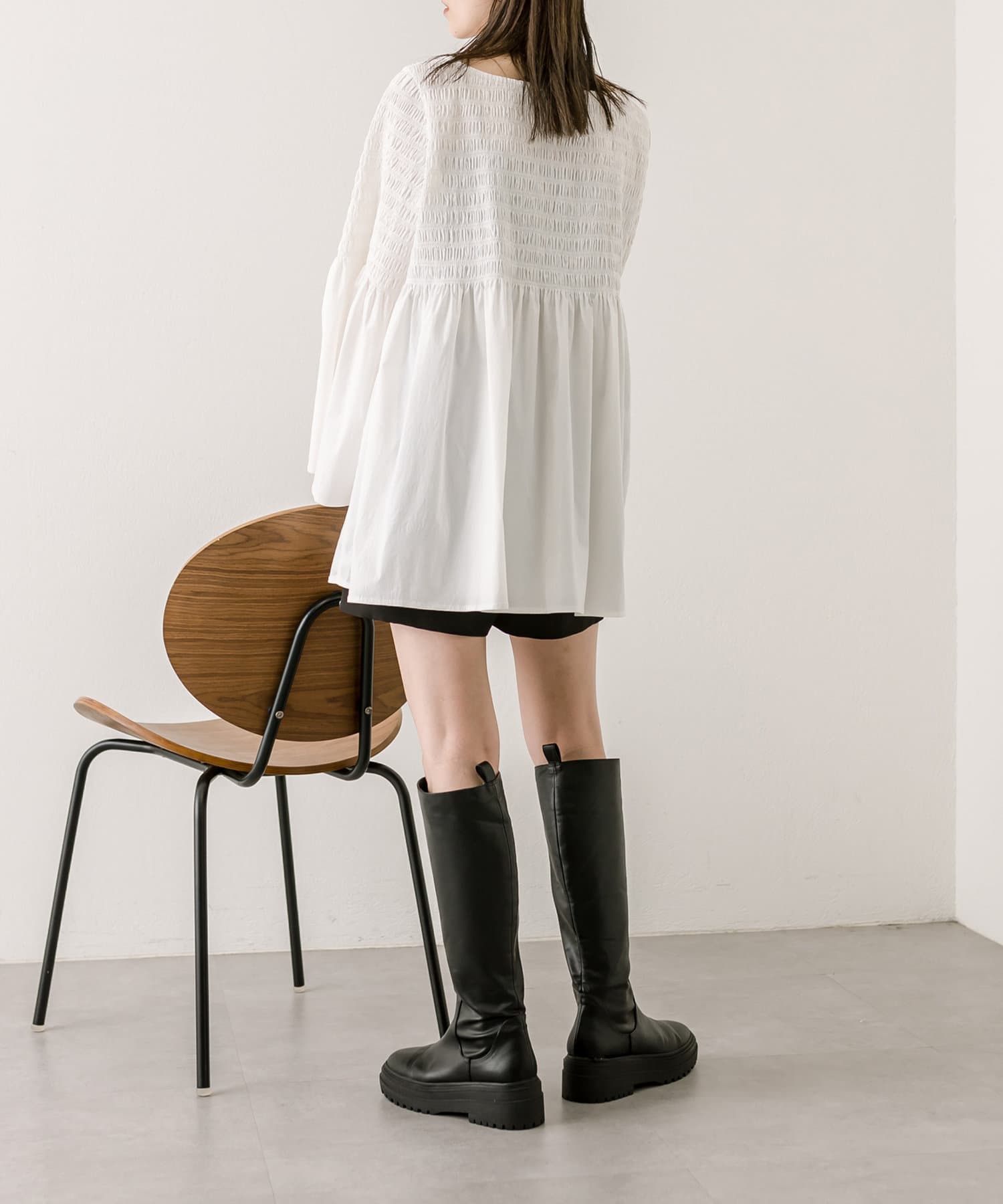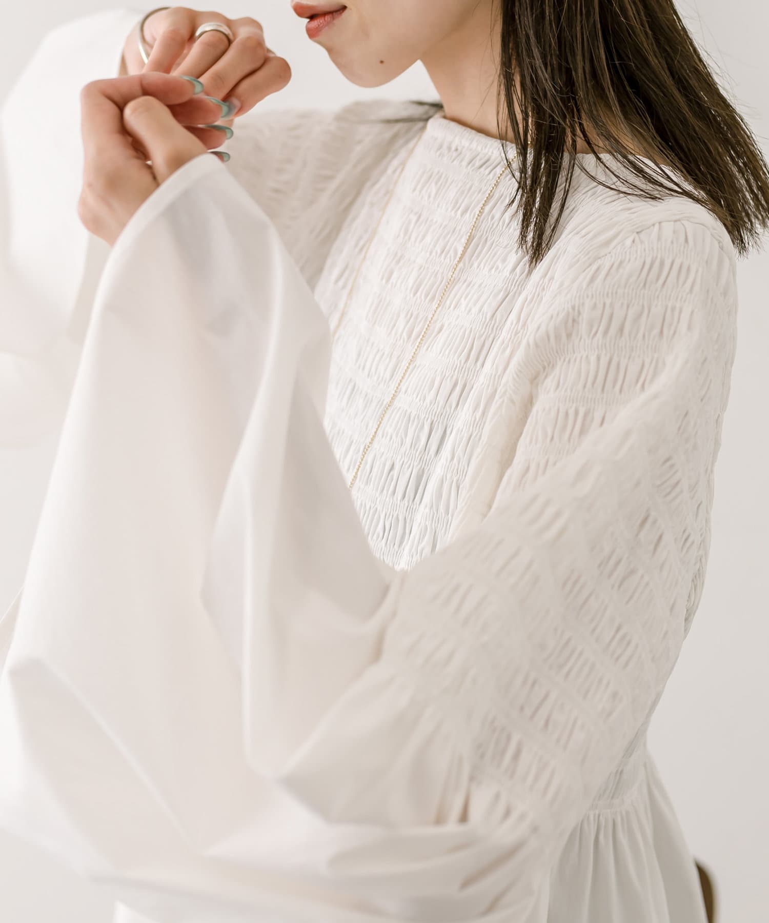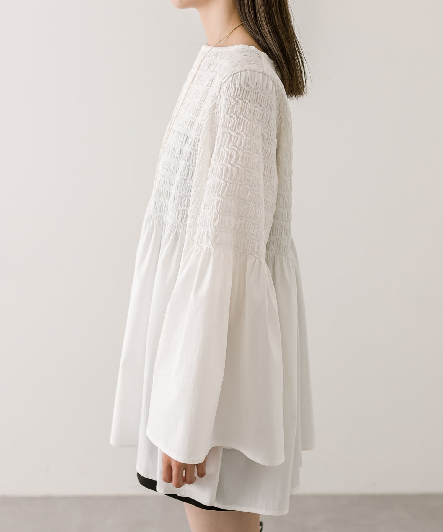 トレンド感のある大胆まシャーリングがほどこされたチュニックが登場。