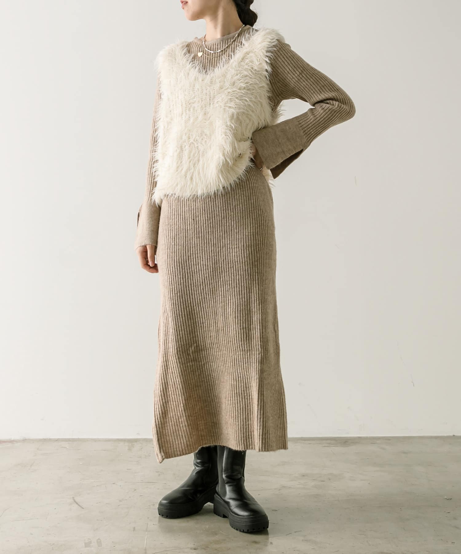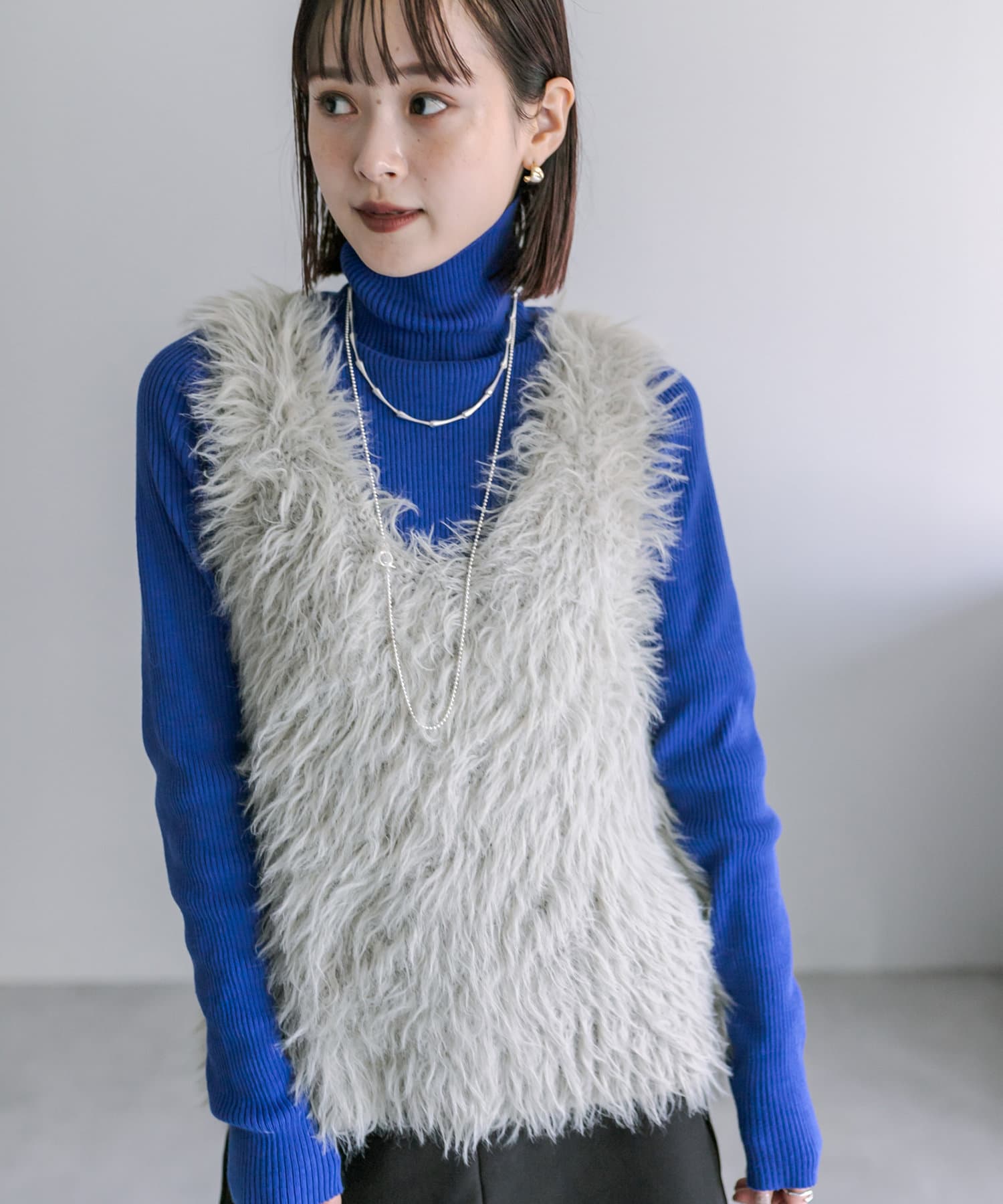 奥さんがシャギーアイテムでワンピースでもなく、レイヤードなどで使えるアイテムを探していたところ